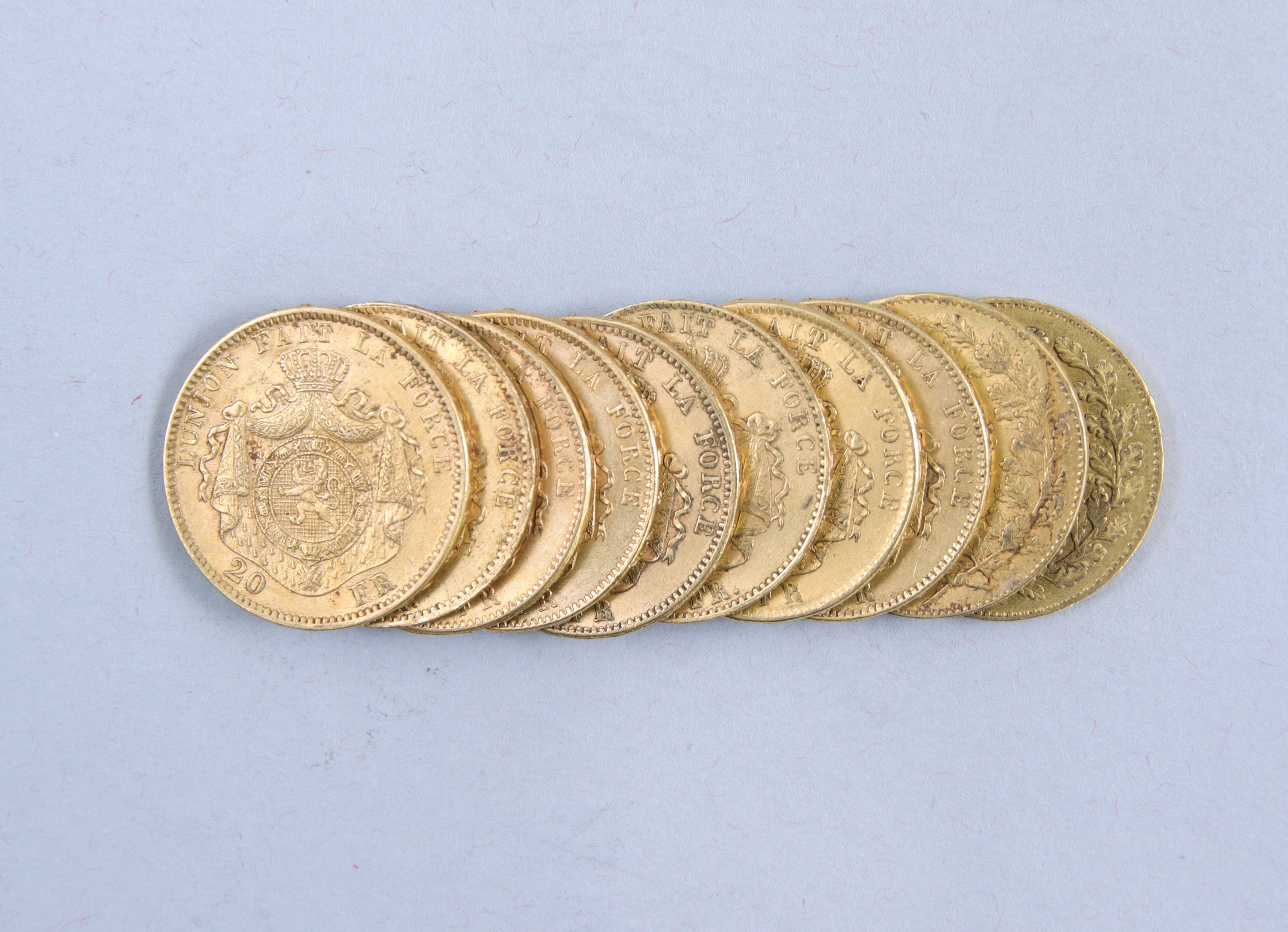 BELGIQUE. 10 PIÈCES de 20 FRANCS OR :