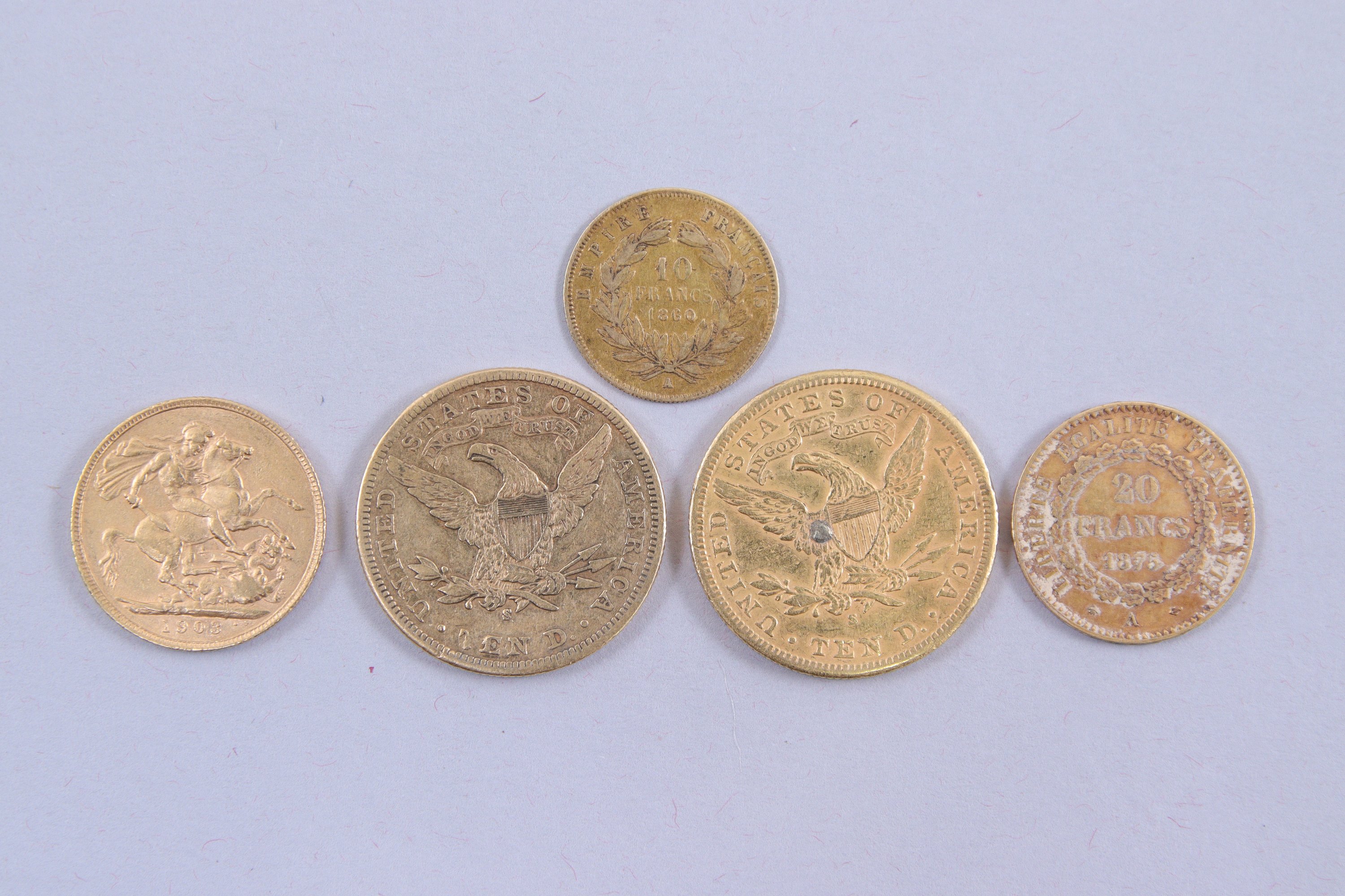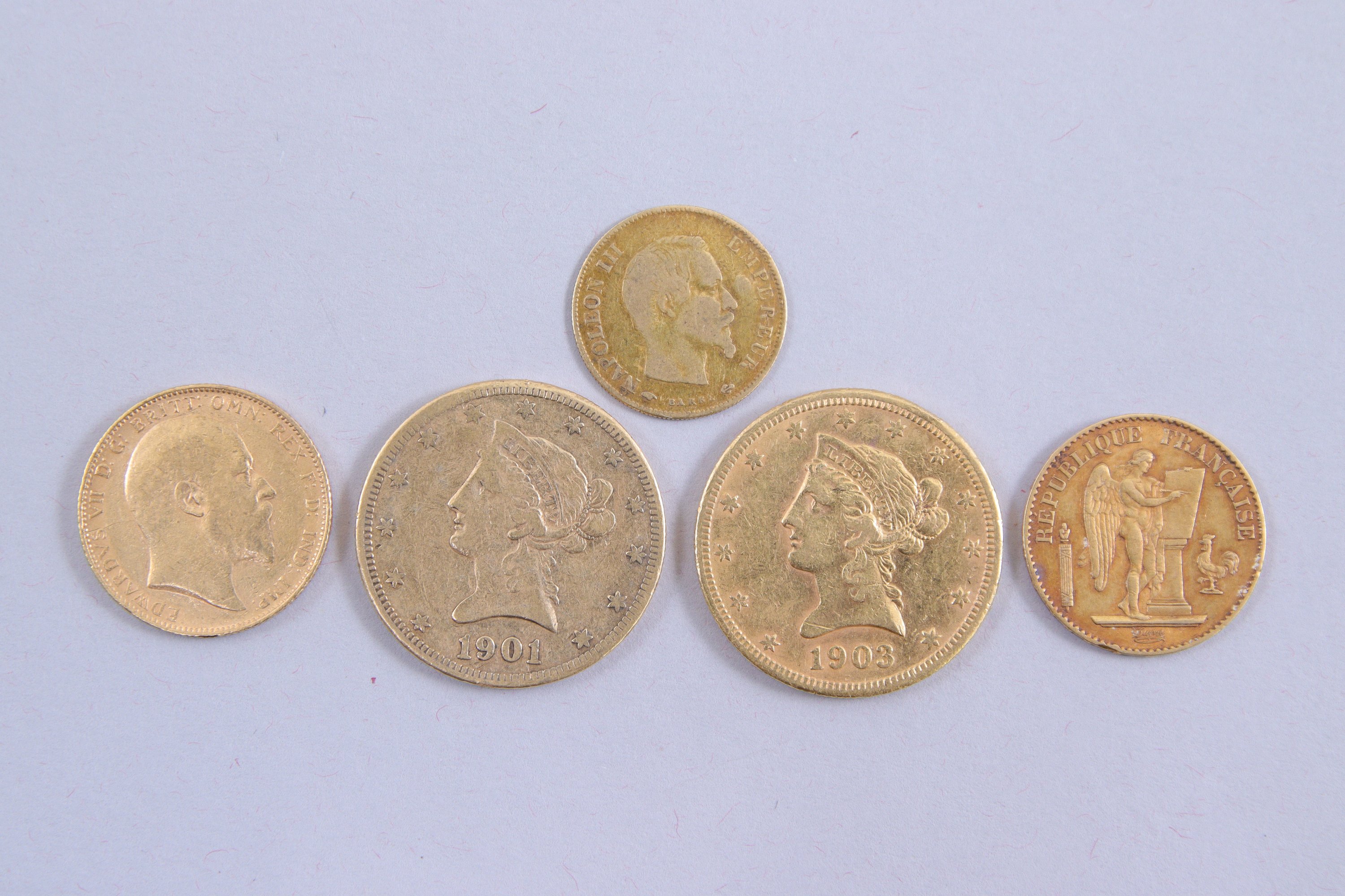 ÉTATS-UNIS, ROYAUME-UNI et FRANCE. 5 MONNAIES OR :