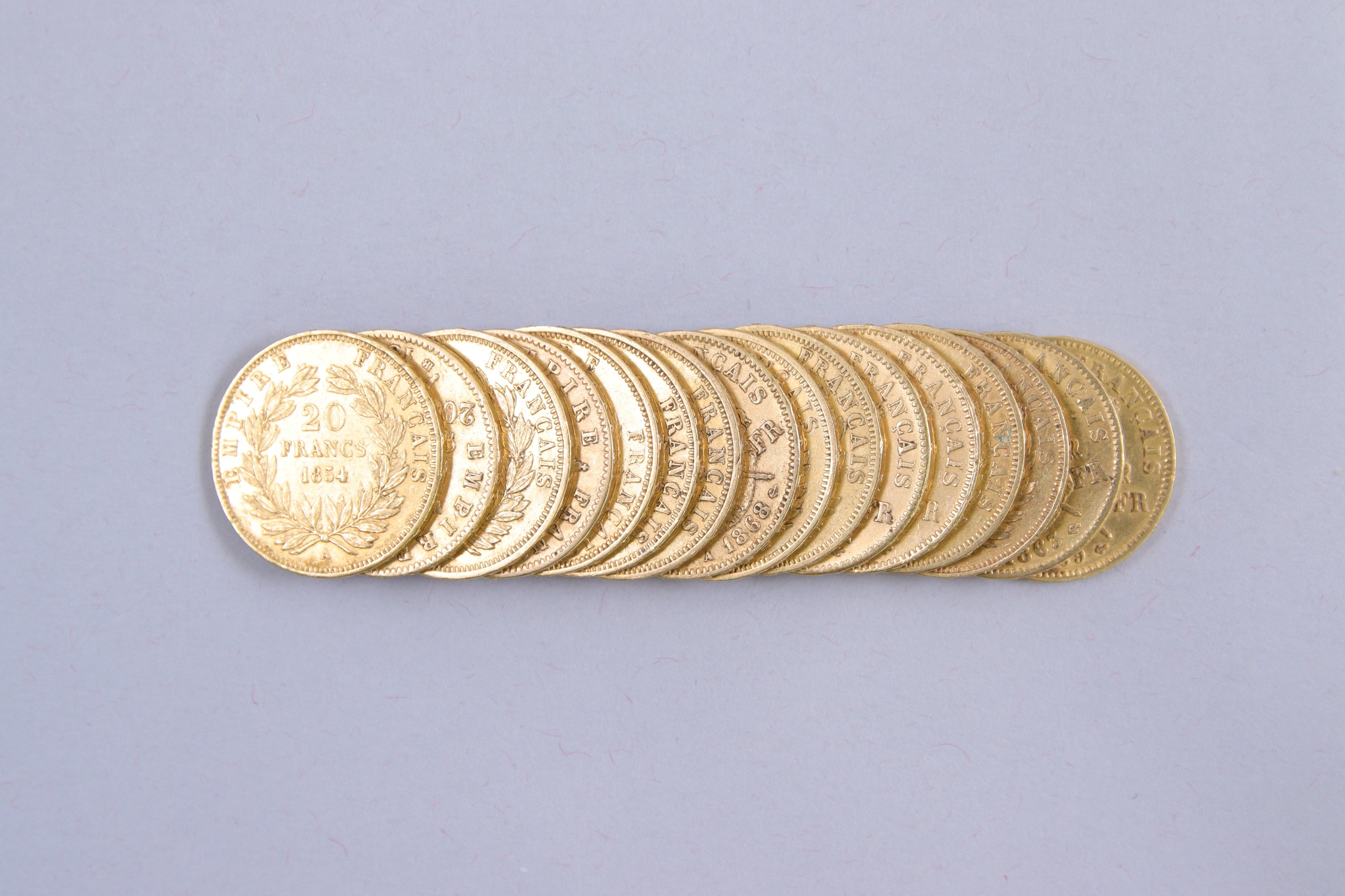 FRANCE. 16 PIÈCES Napoléon III, 20 FRANCS OR.
