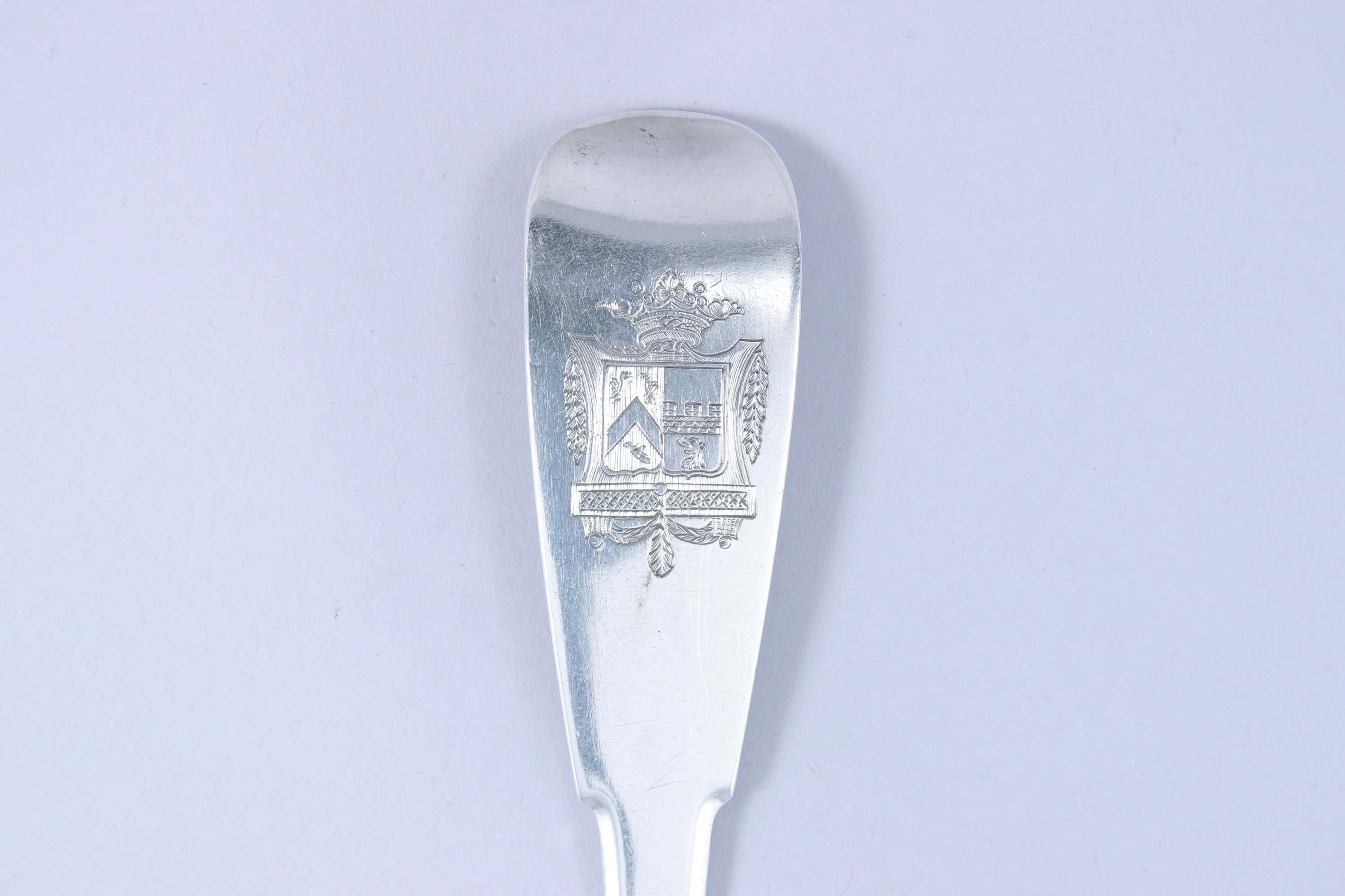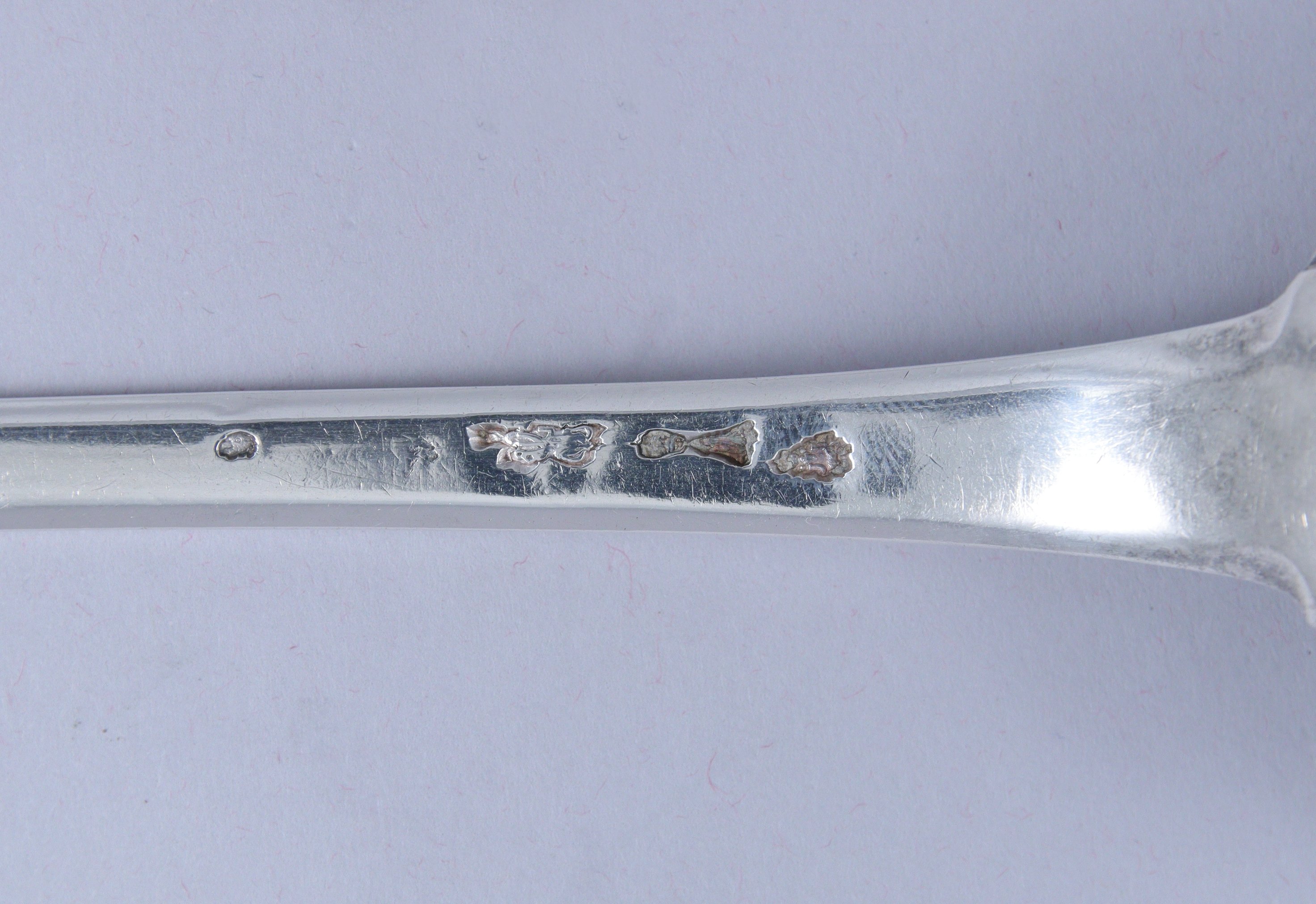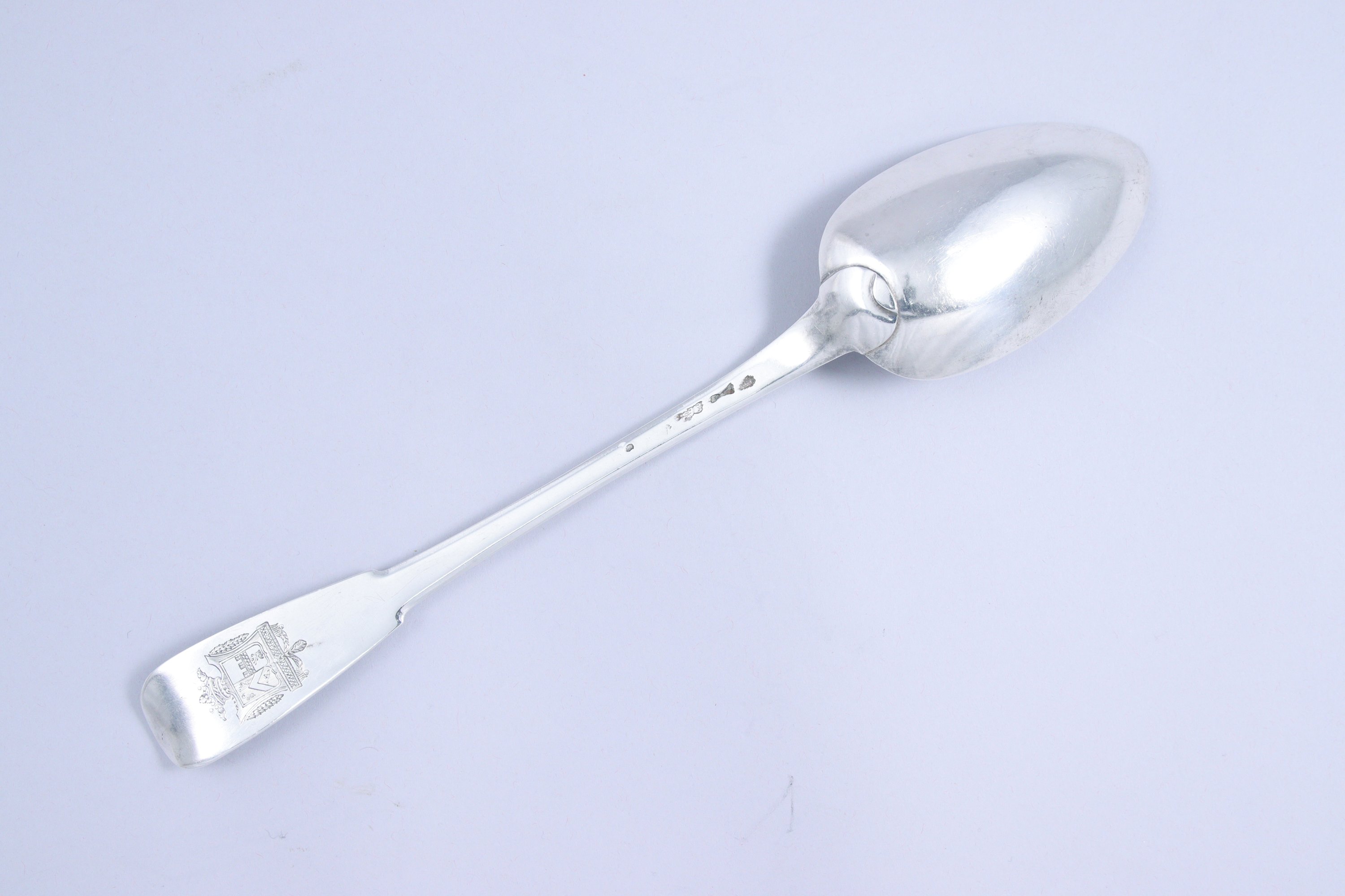 PARIS, 1786-1788. CUILLER à RAGOUT en argent modèle Uniplat. Gravée d'armes d'alliance surmontées d'une couronne marquisale.