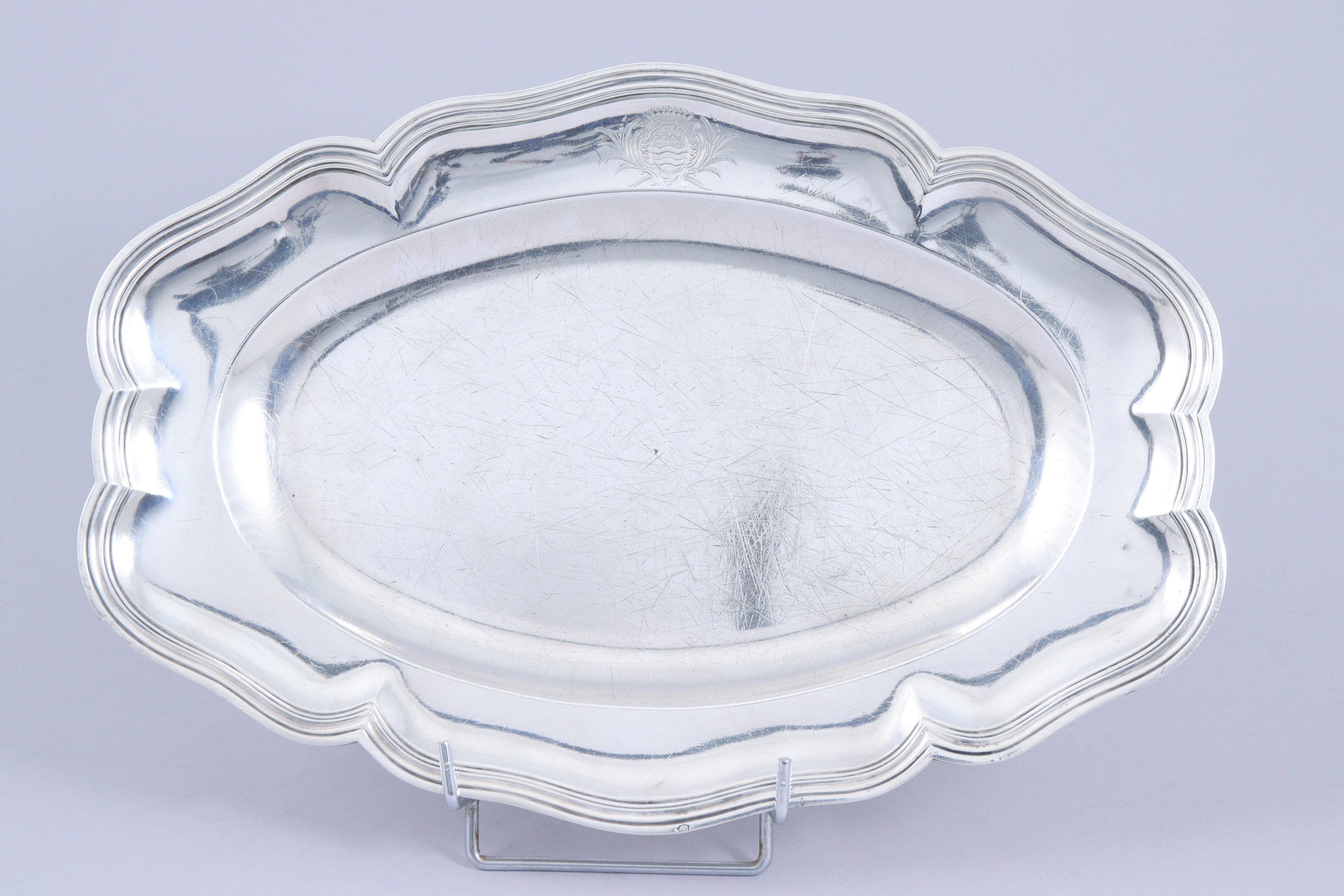 PARIS, 1755. PLAT OVALE à bords contournés en argent, avec des armoiries sous une couronne comtale.