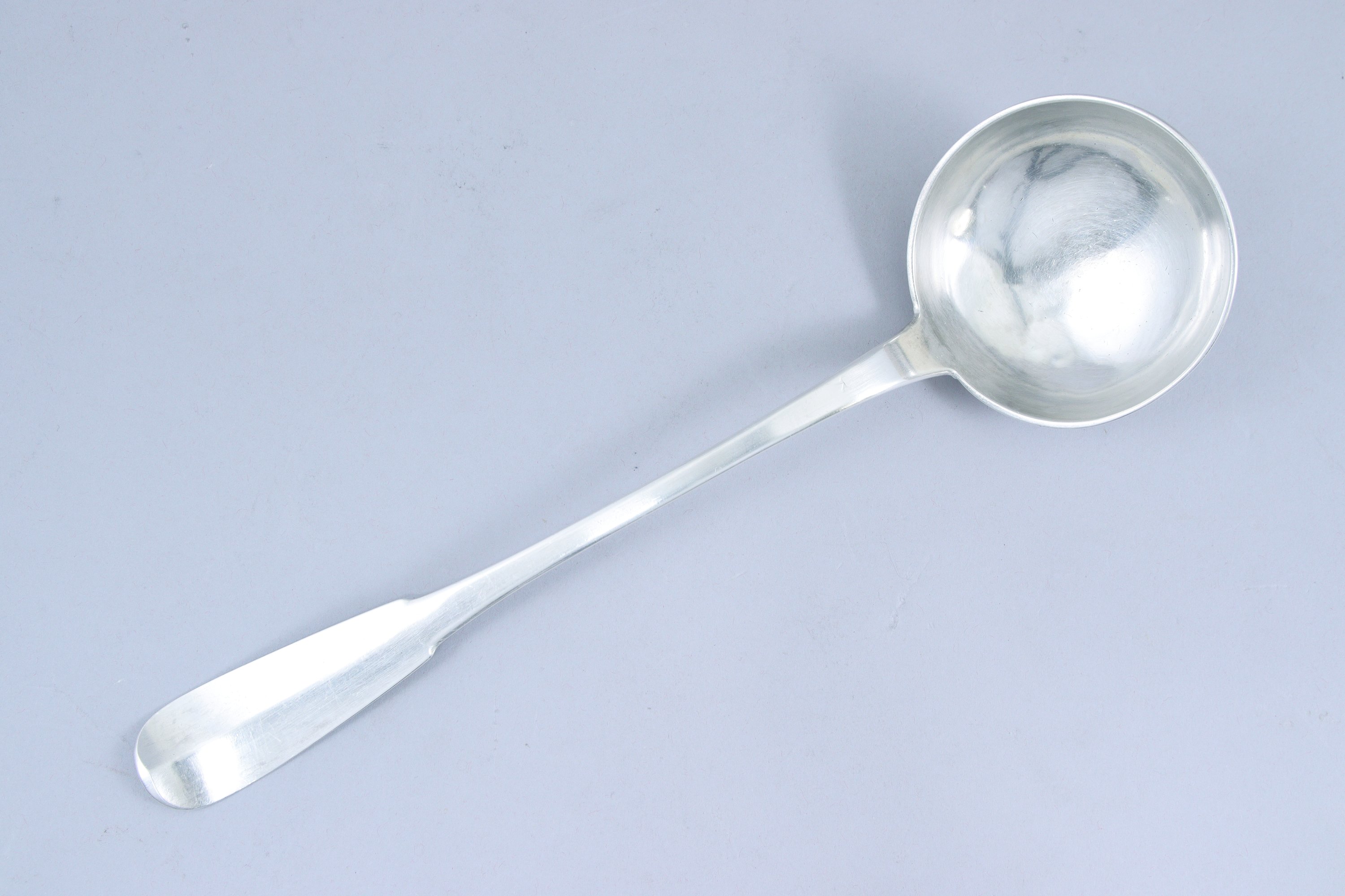 LOUCHE en argent, modèle uniplat monogrammé CP.