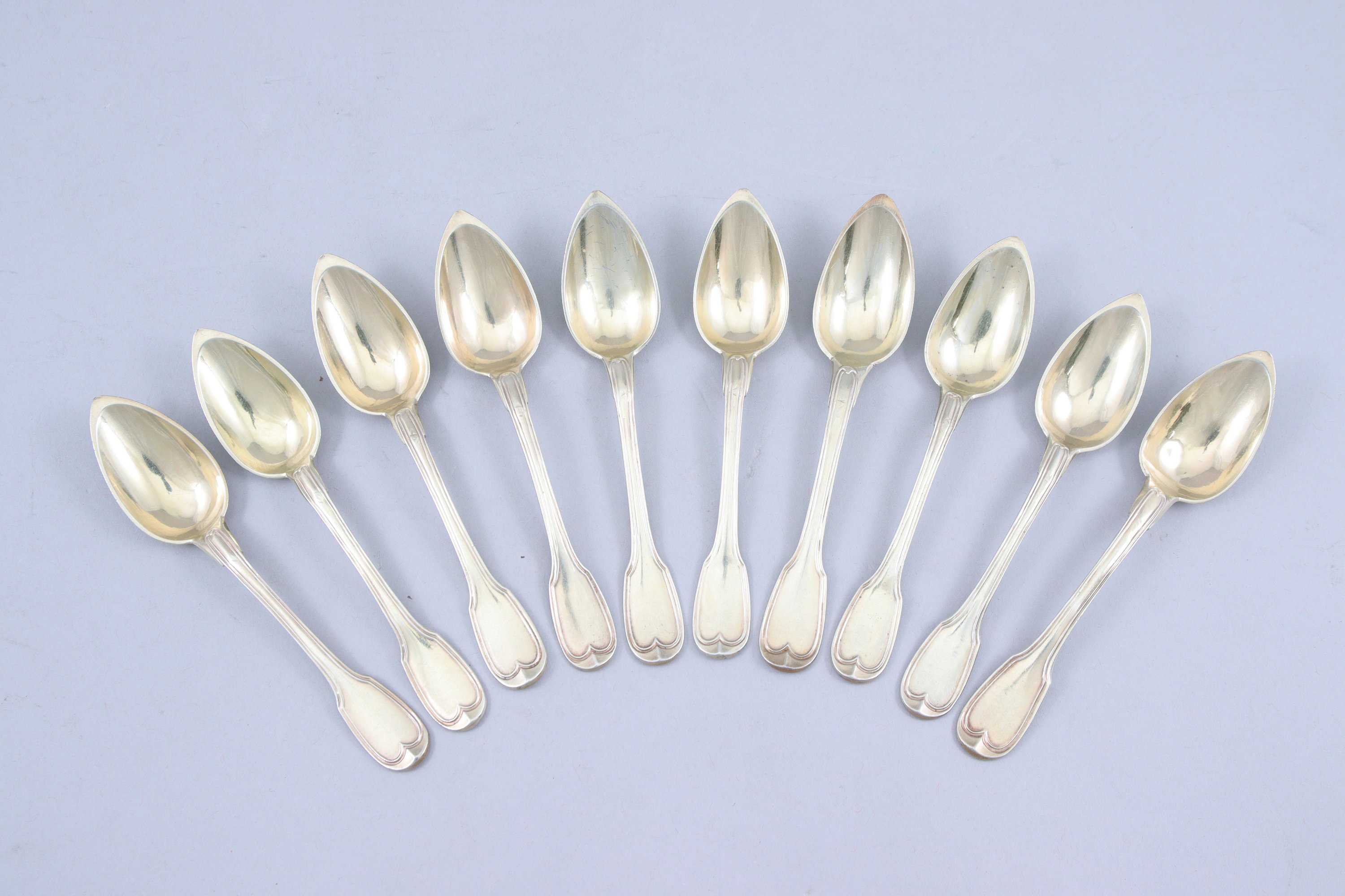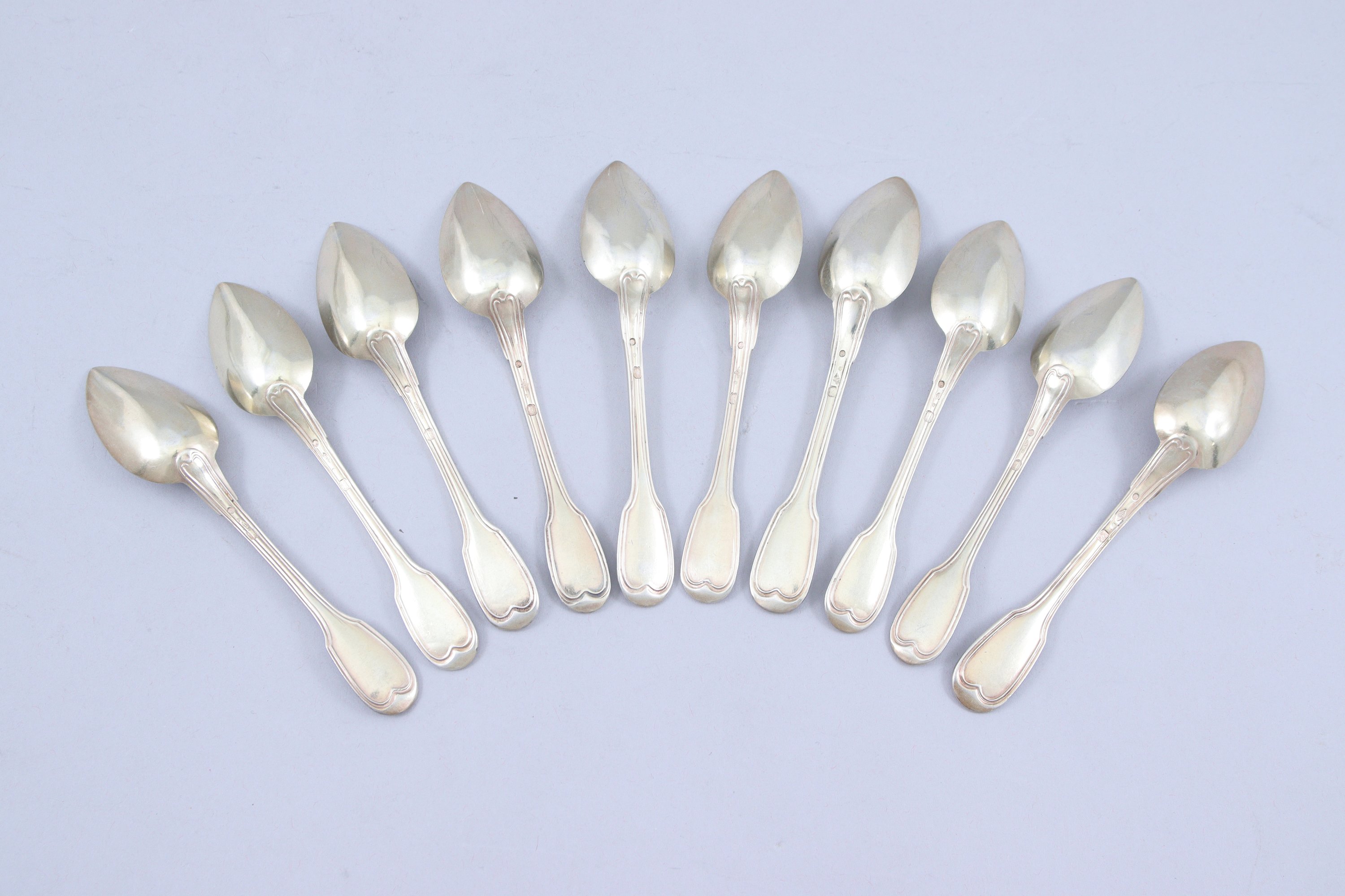 DIX PETITES CUILLERS en argent modèle filet.Poinçon Vieillard (1819-1838).Autrefois vermeillées....