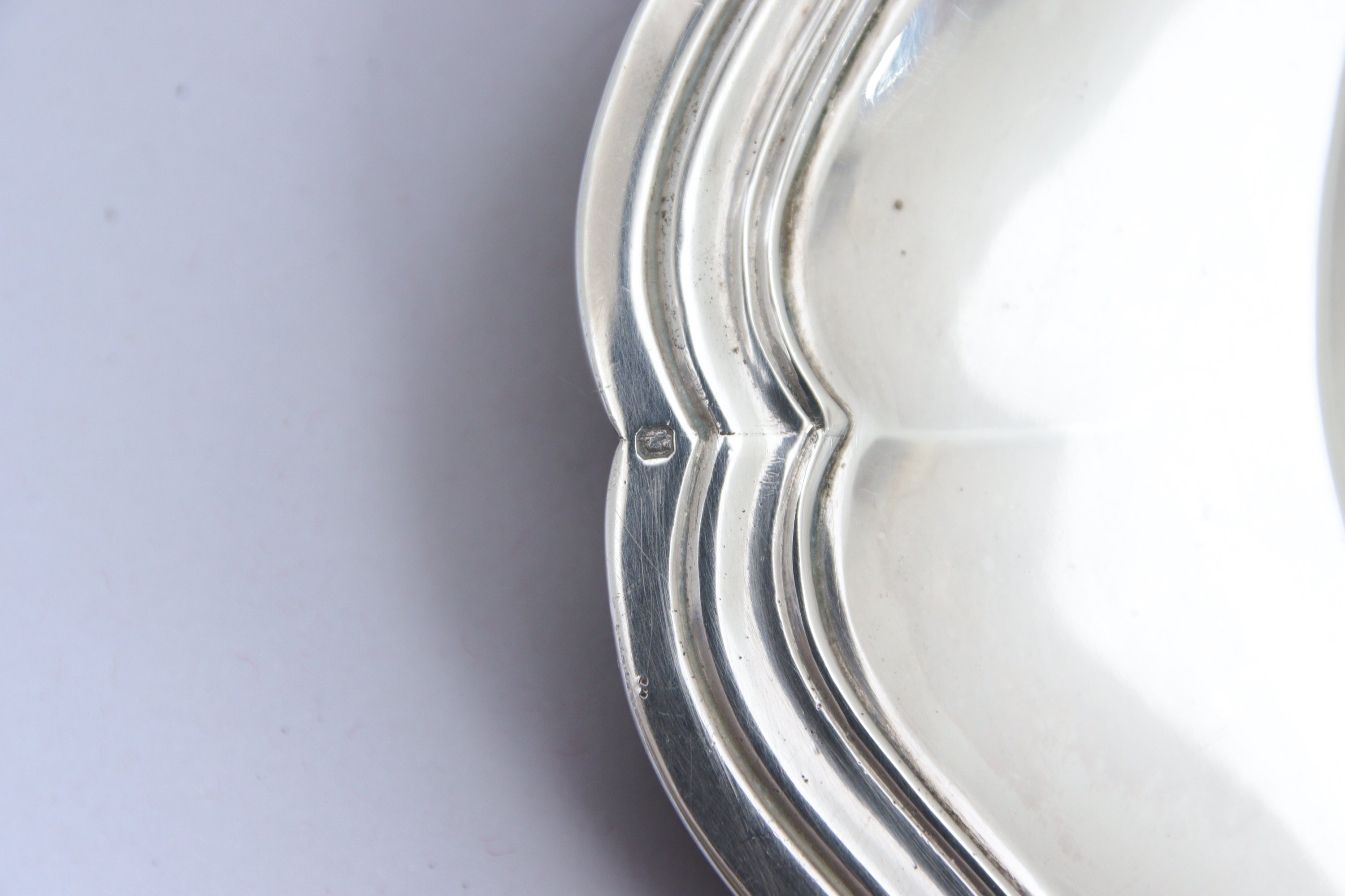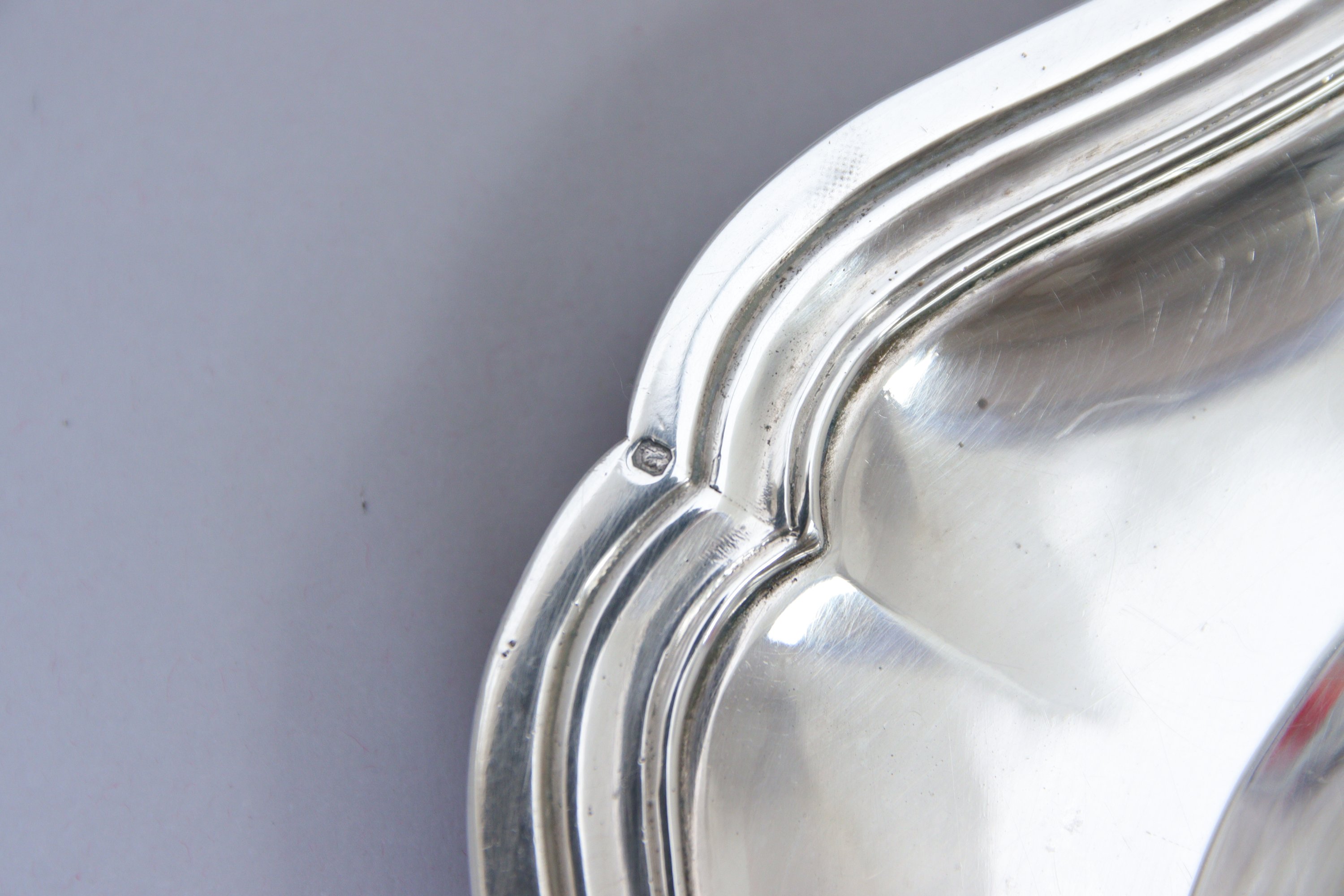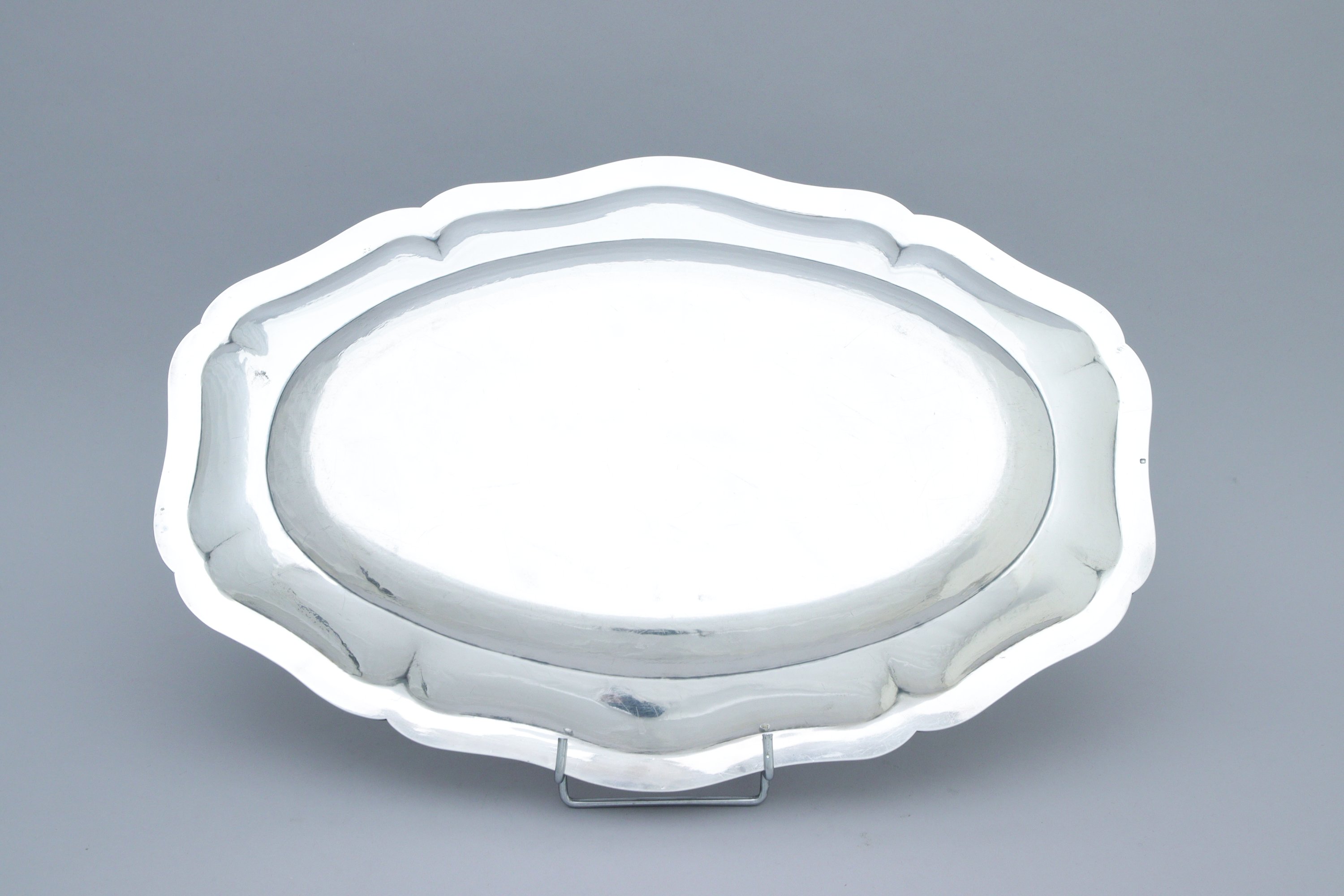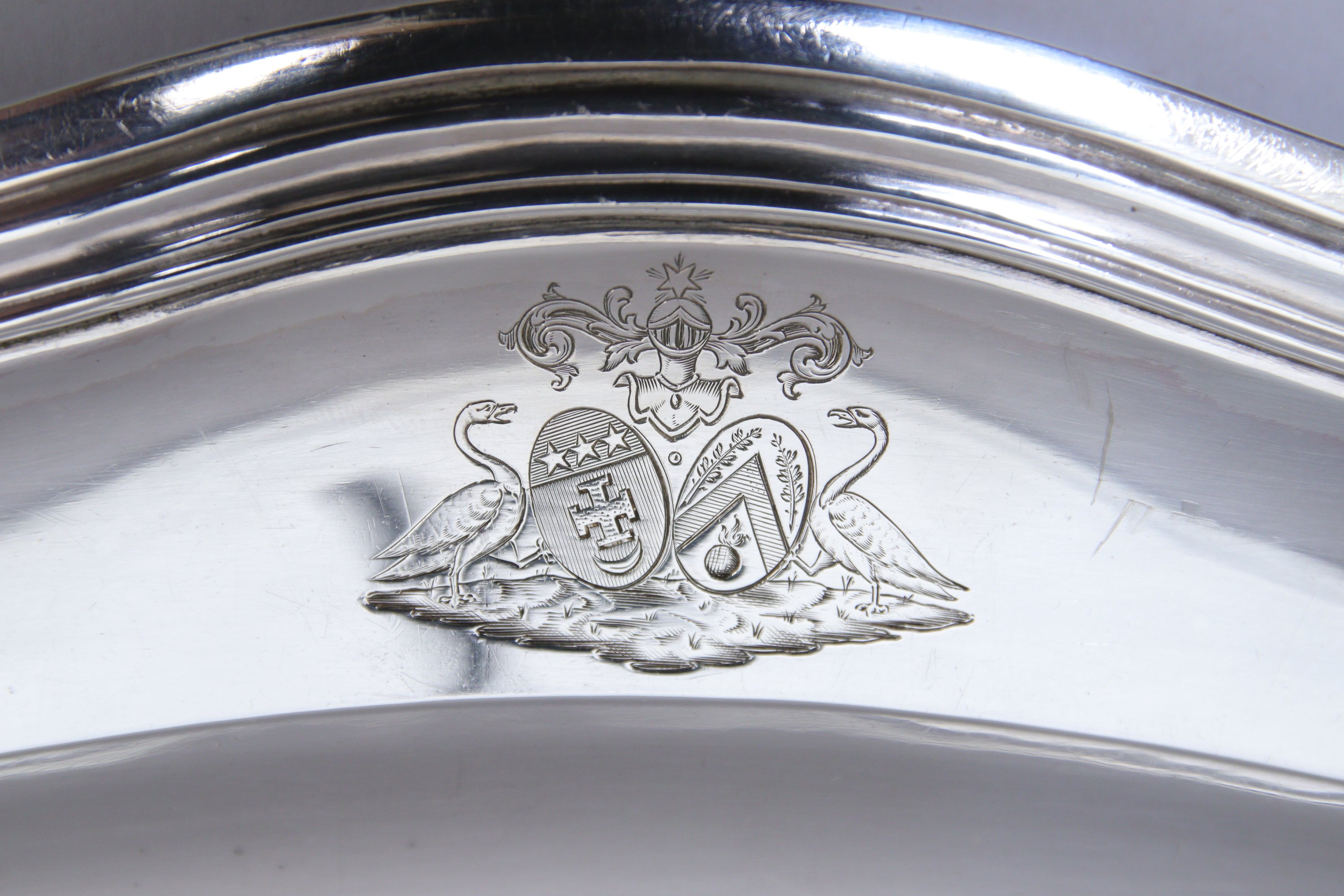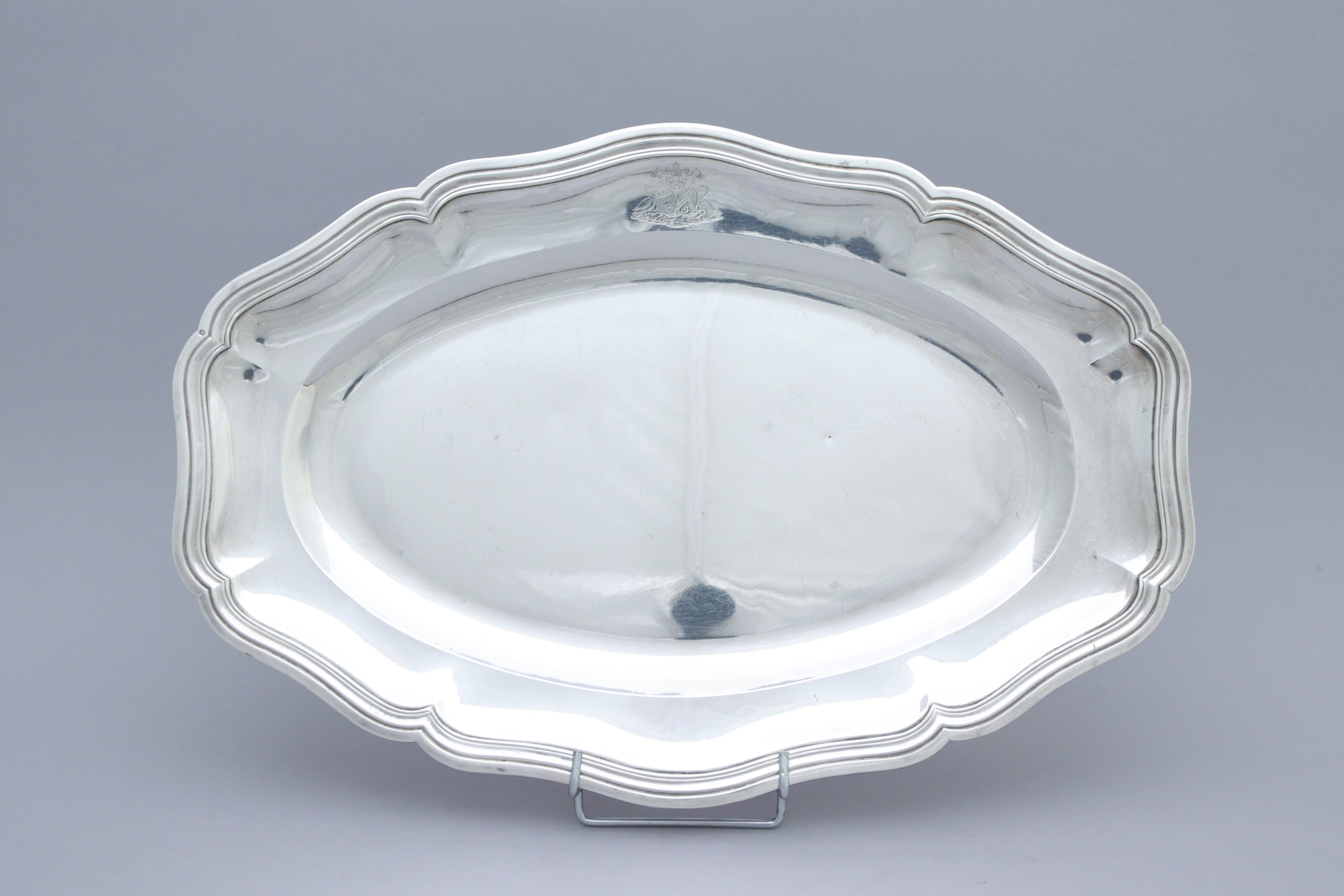 PLAT OVALE en argent, modèle à bords contournés gravé d'armes...