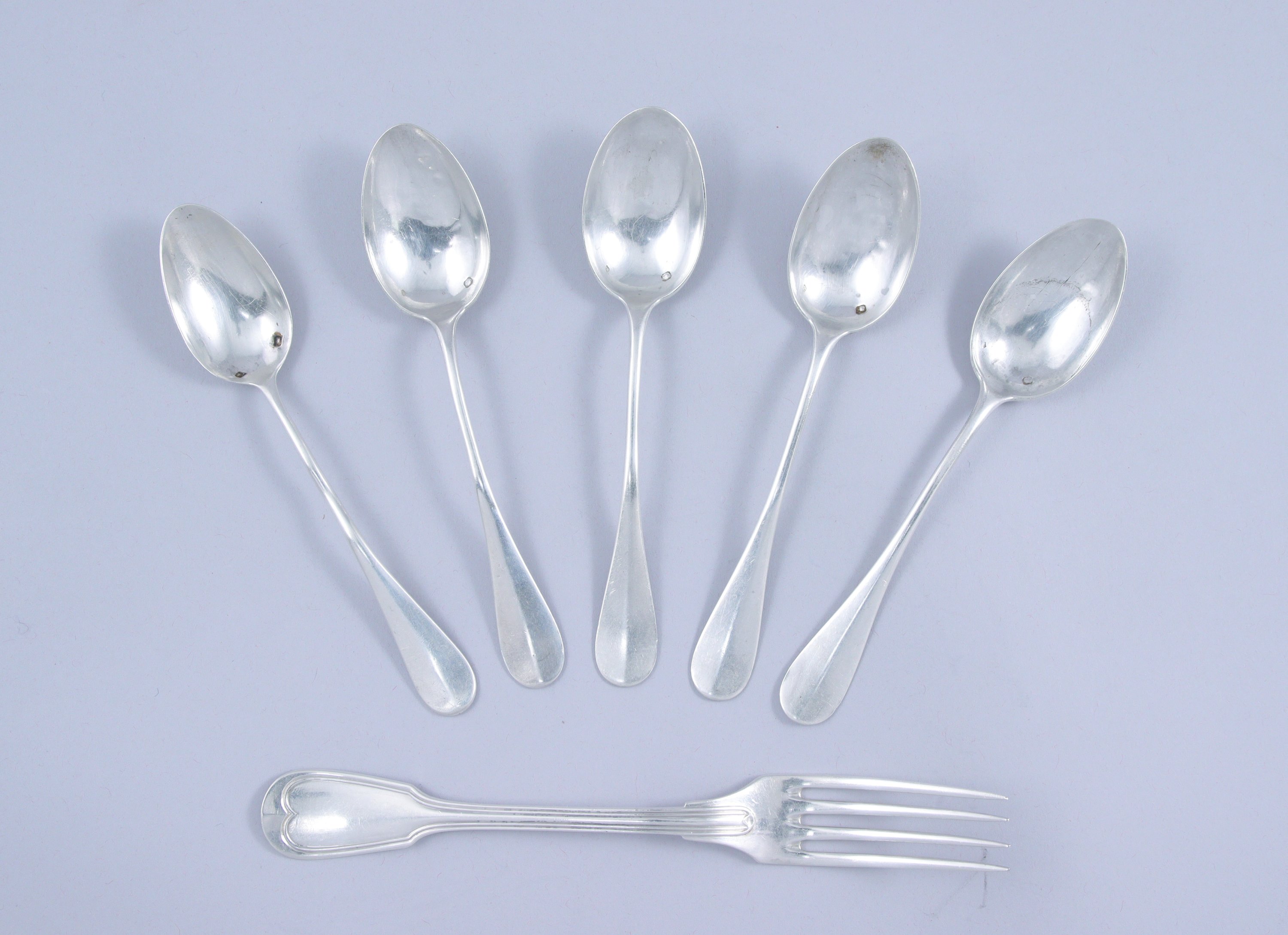- Cinq CUILLERS à CAFÉ modèle Uniplat monogrammé "GR". Poinçon Minerve (90 g).