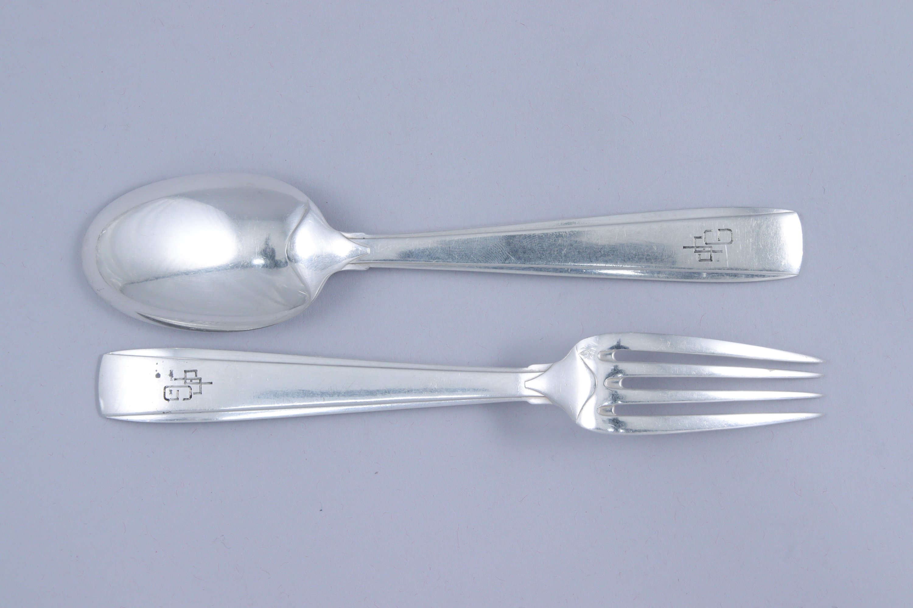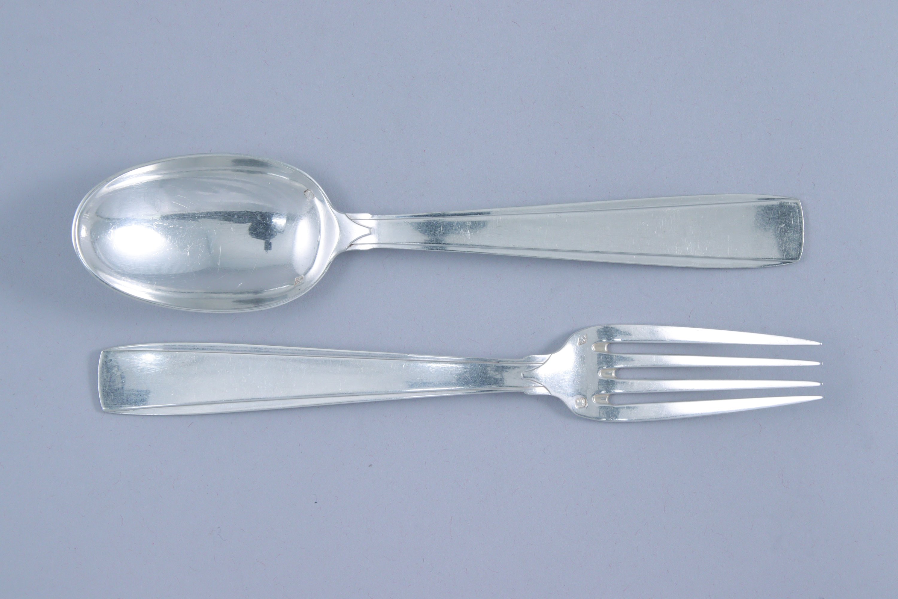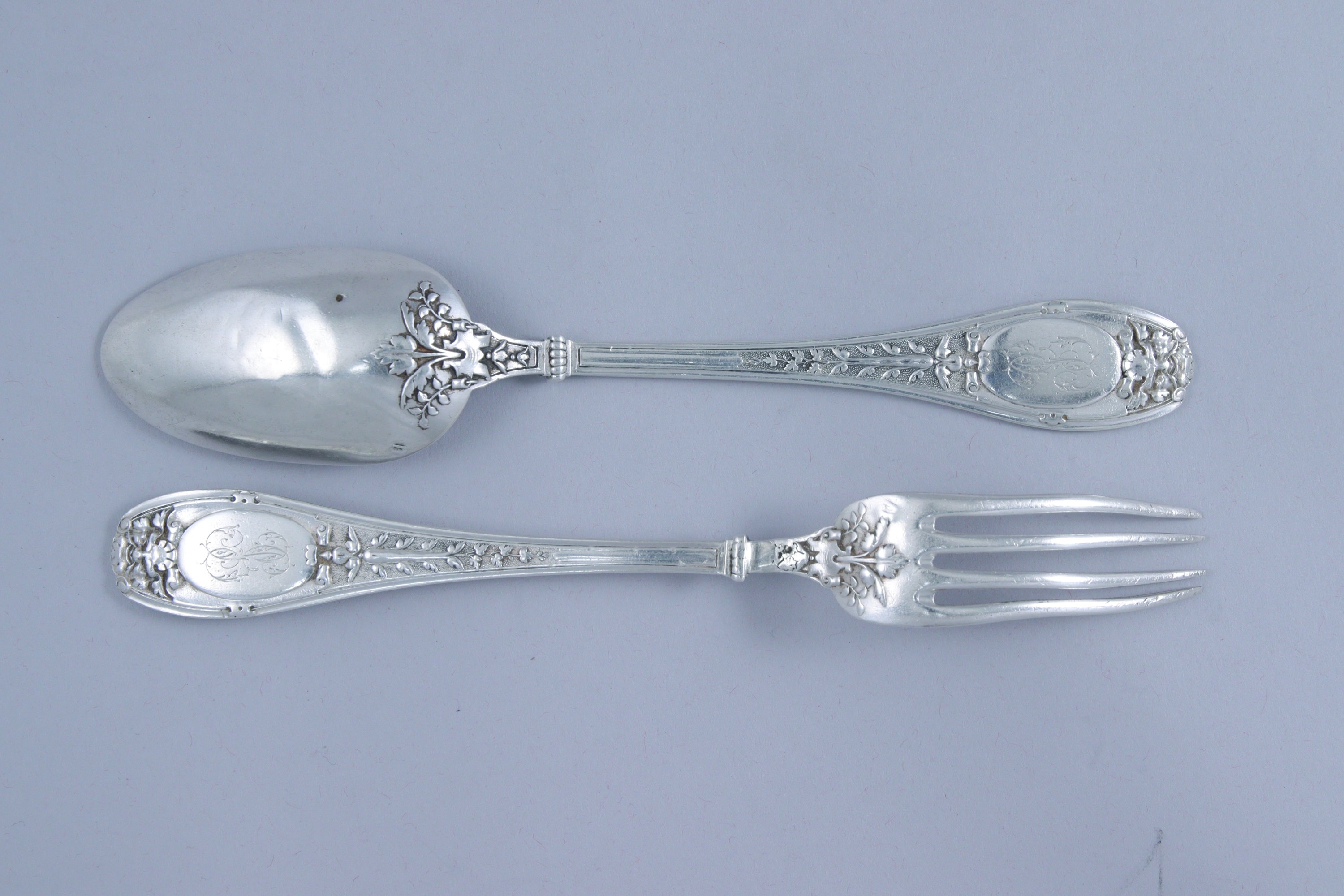 PUIFORCAT. COUVERT en argent, modèle filet.
