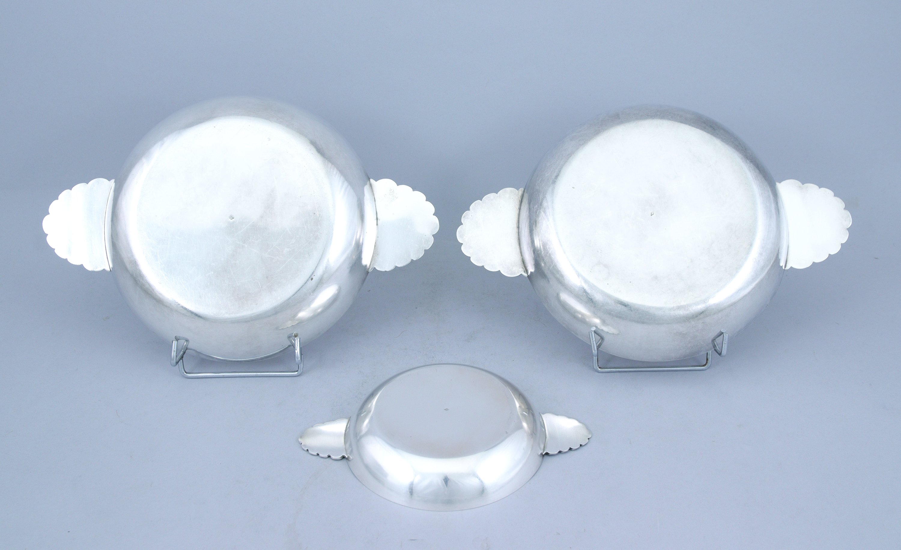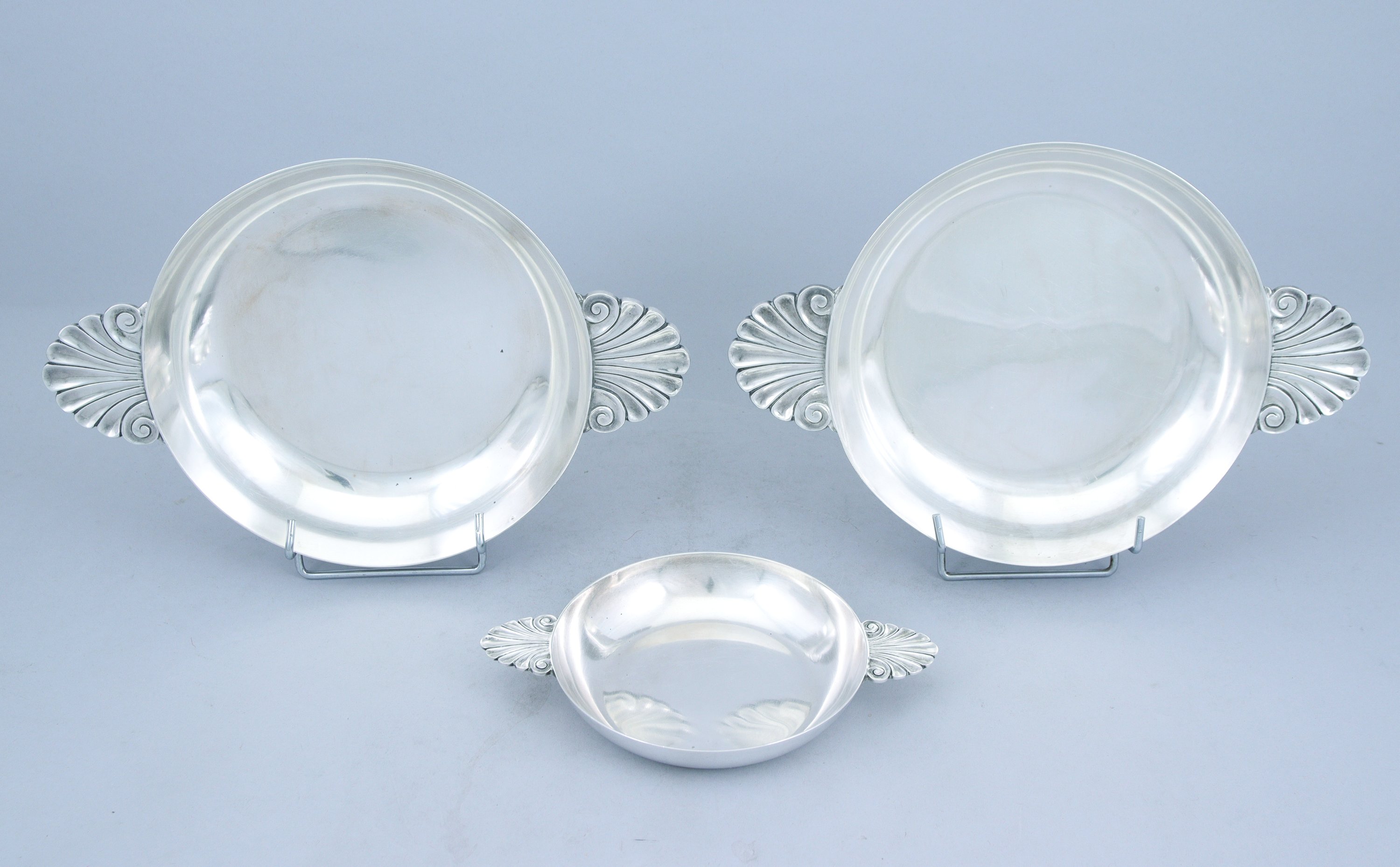 TROIS ÉCUELLES à OREILLES dont une paire en argent modèle coquille.