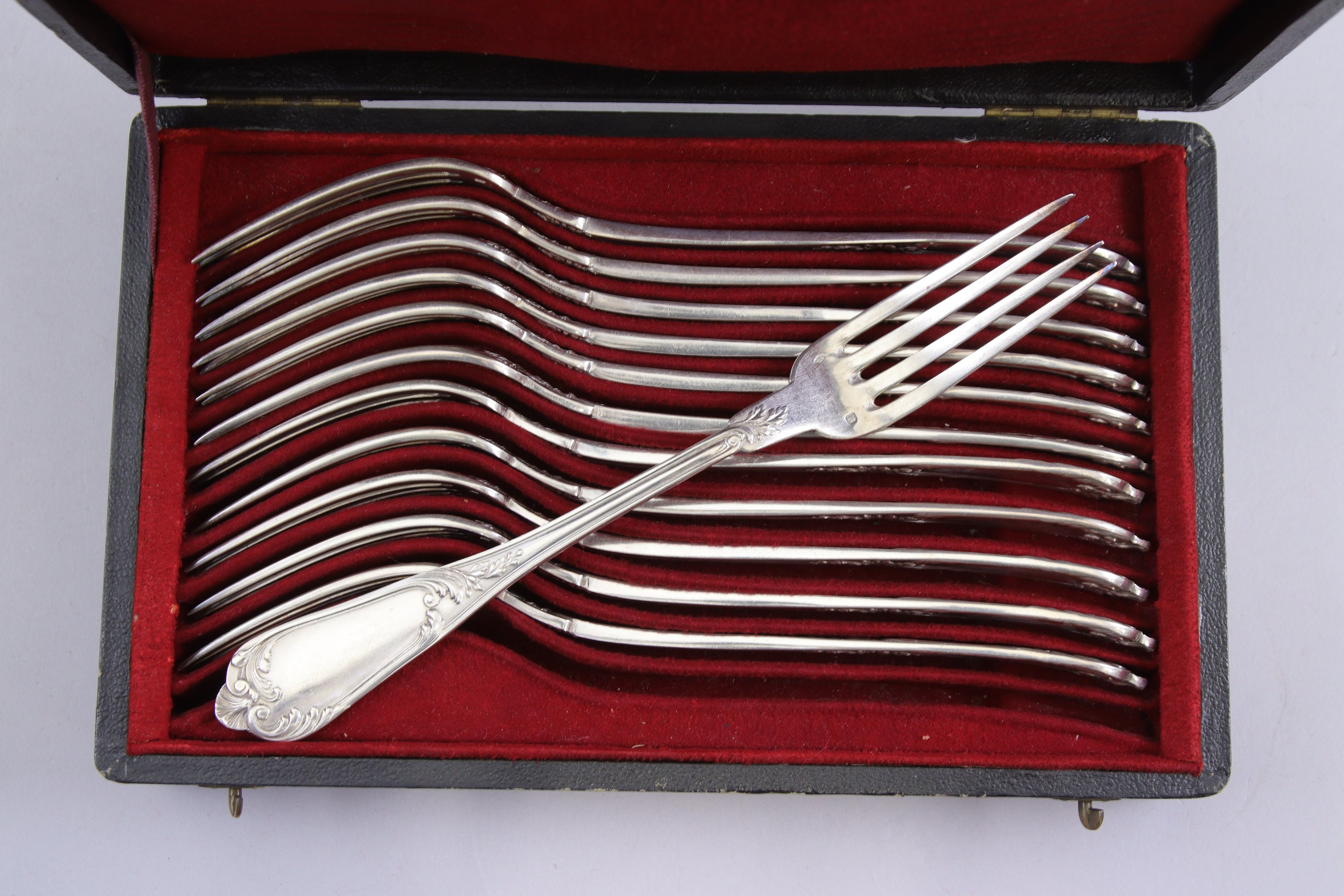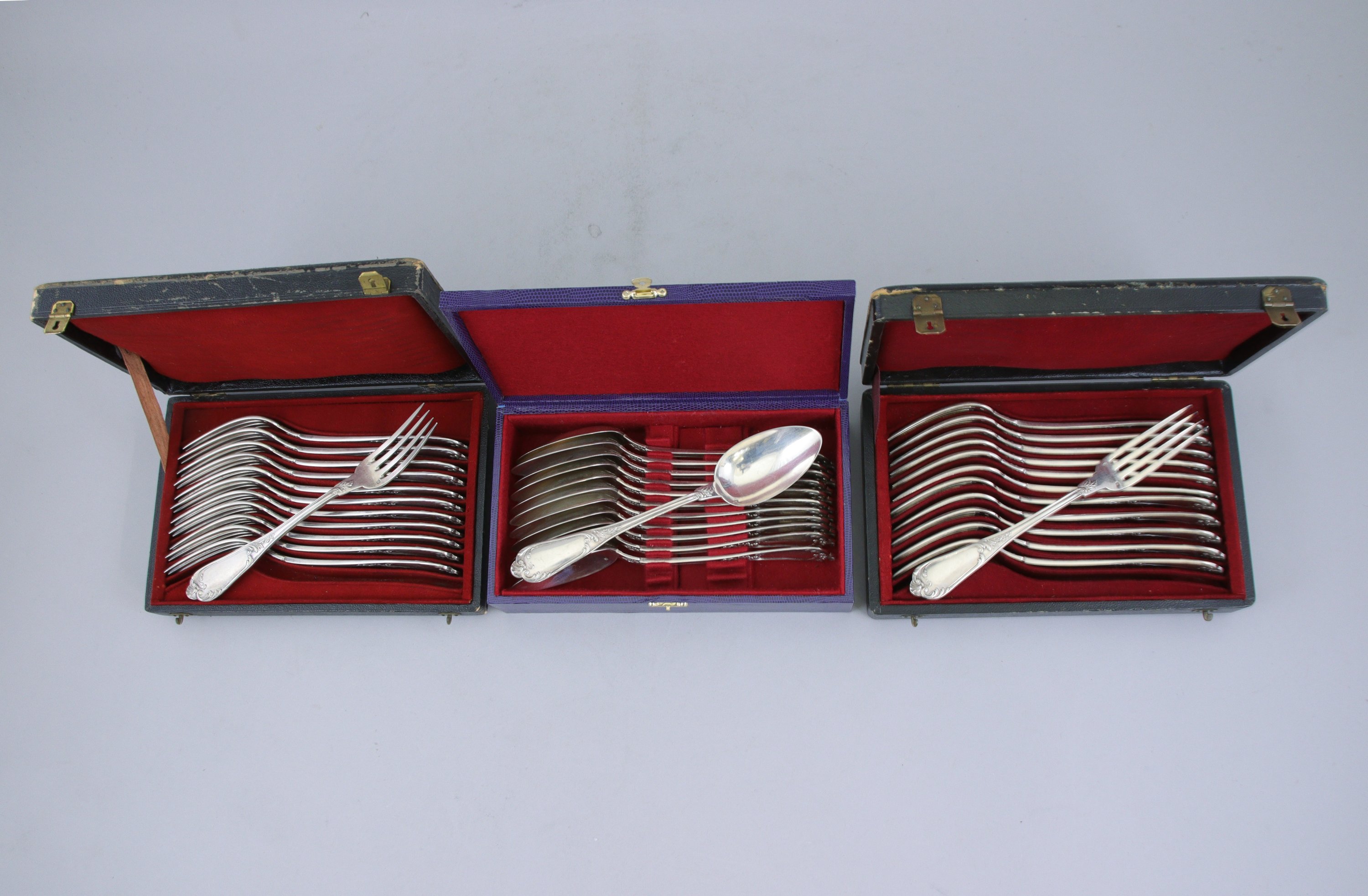 VINGT-QUATRE FOURCHETTES et DOUZE CUILLERS en argent de style Louis...