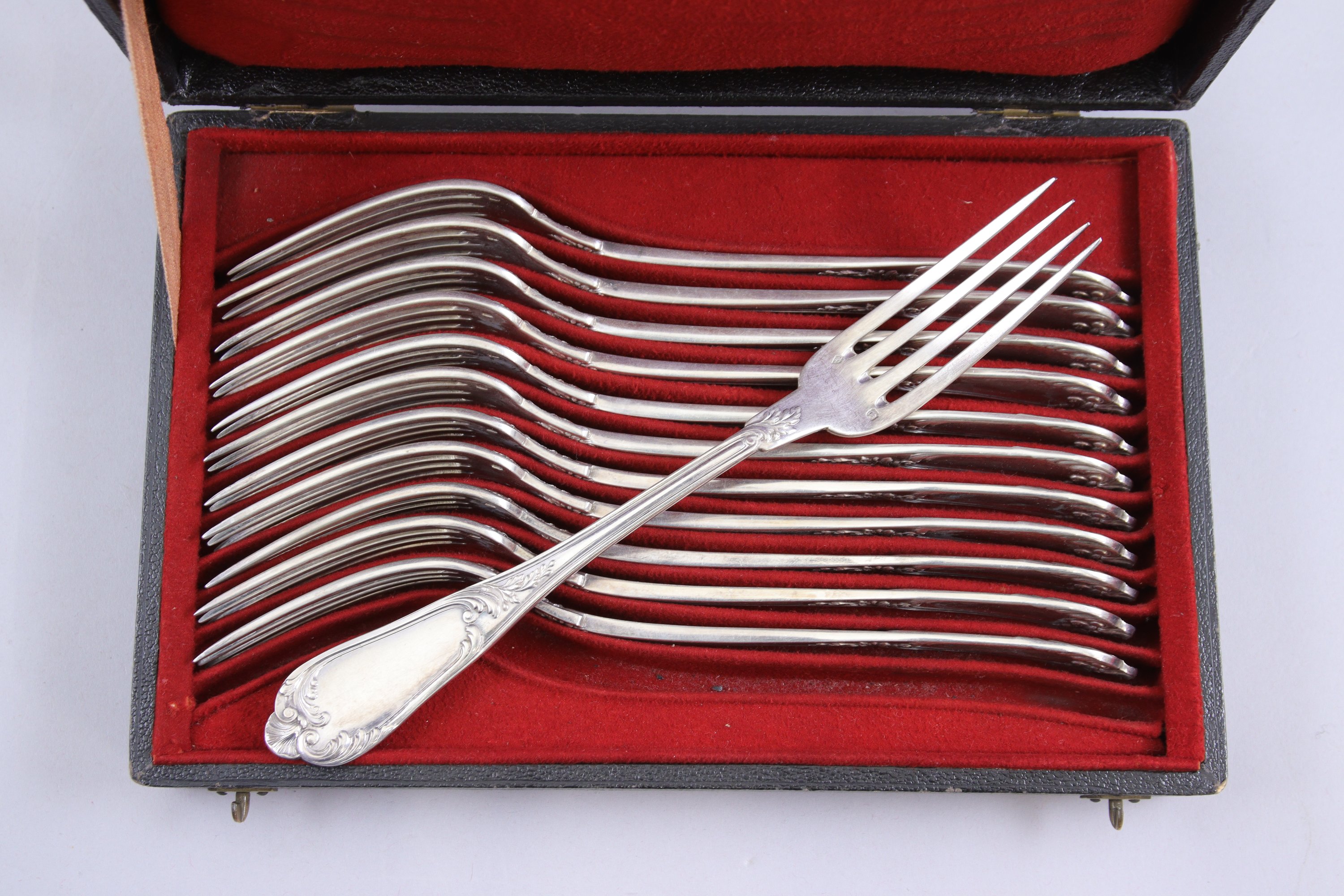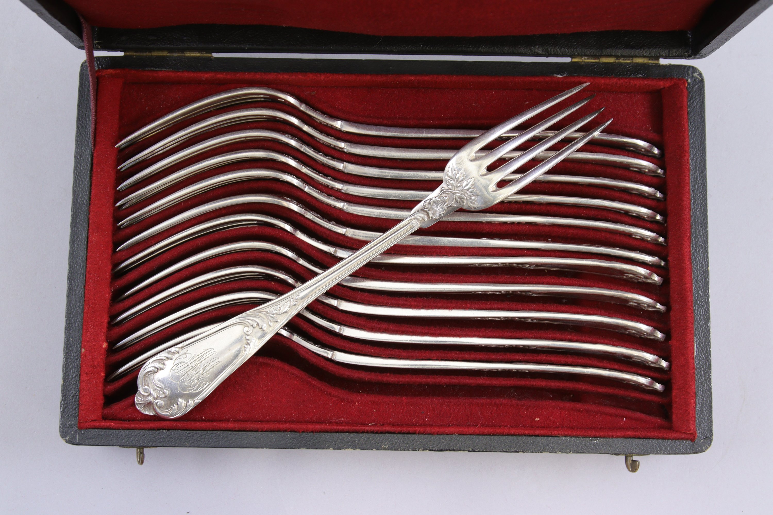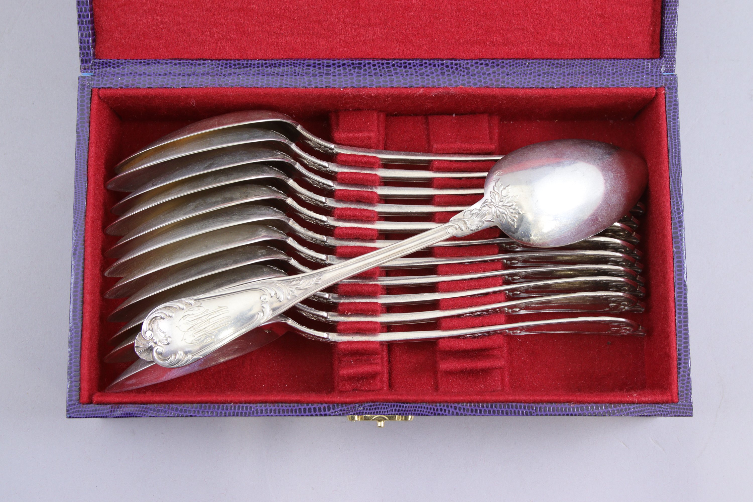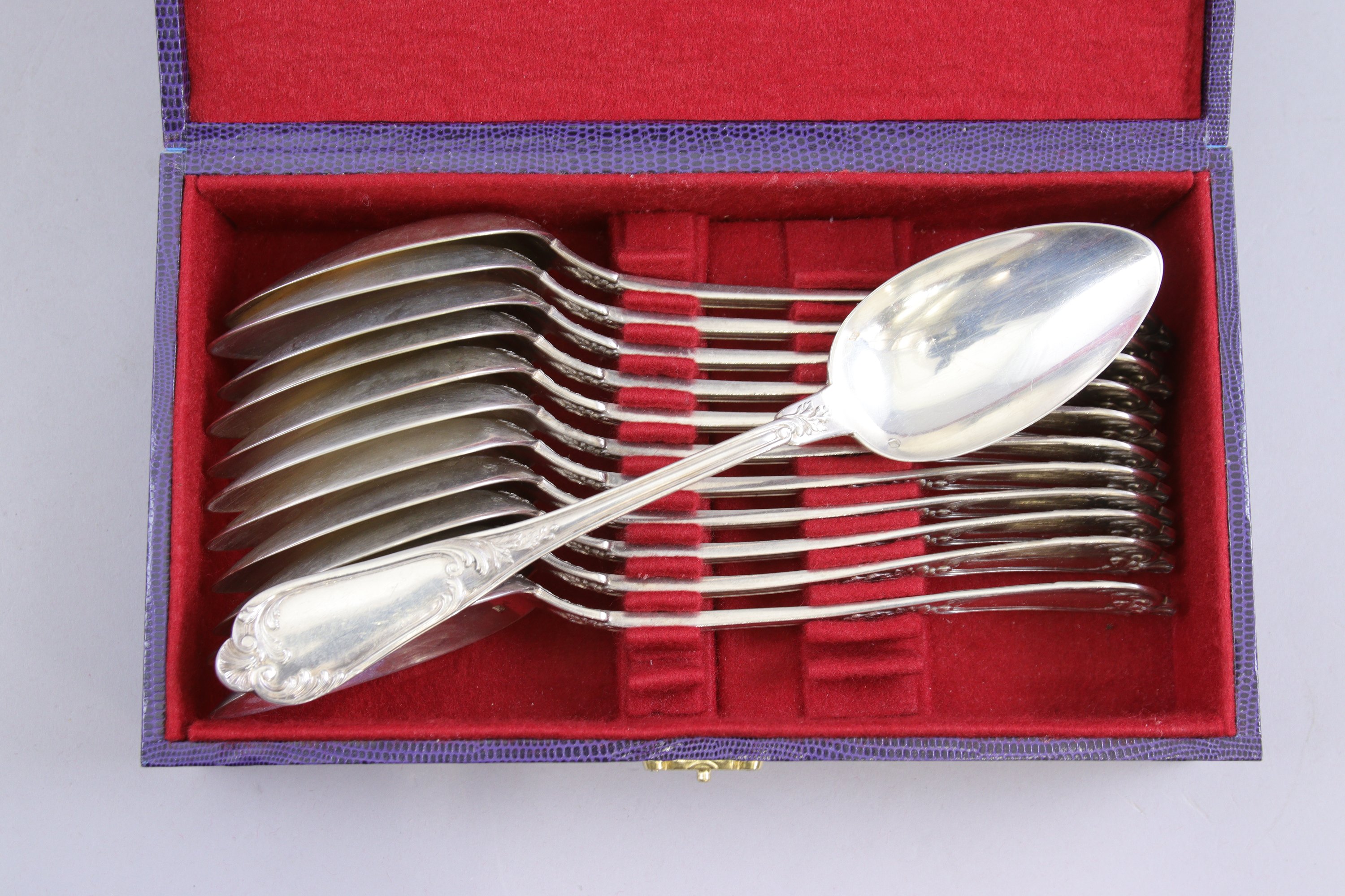 VINGT-QUATRE FOURCHETTES et DOUZE CUILLERS en argent de style Louis XV aux rinceaux fleuris. Monogrammés "MM".