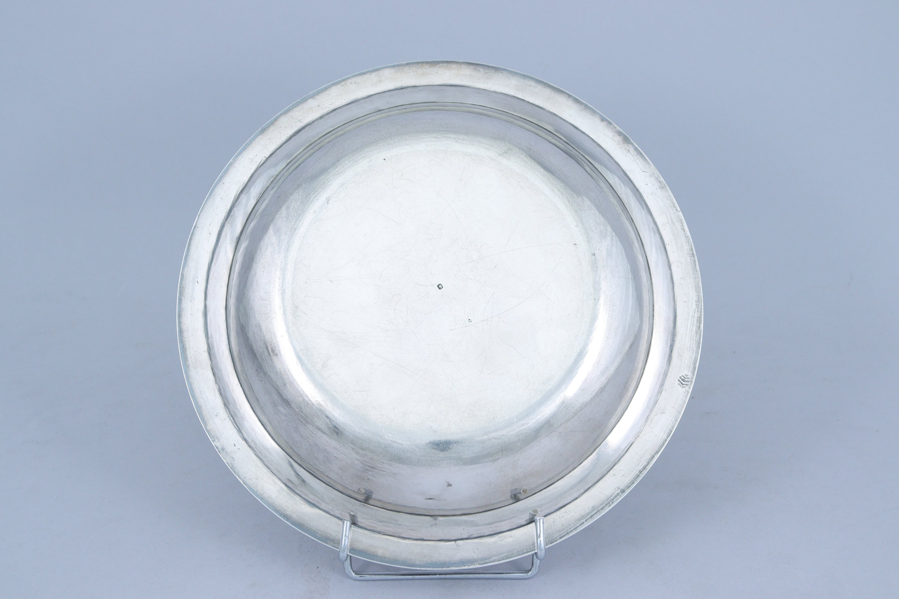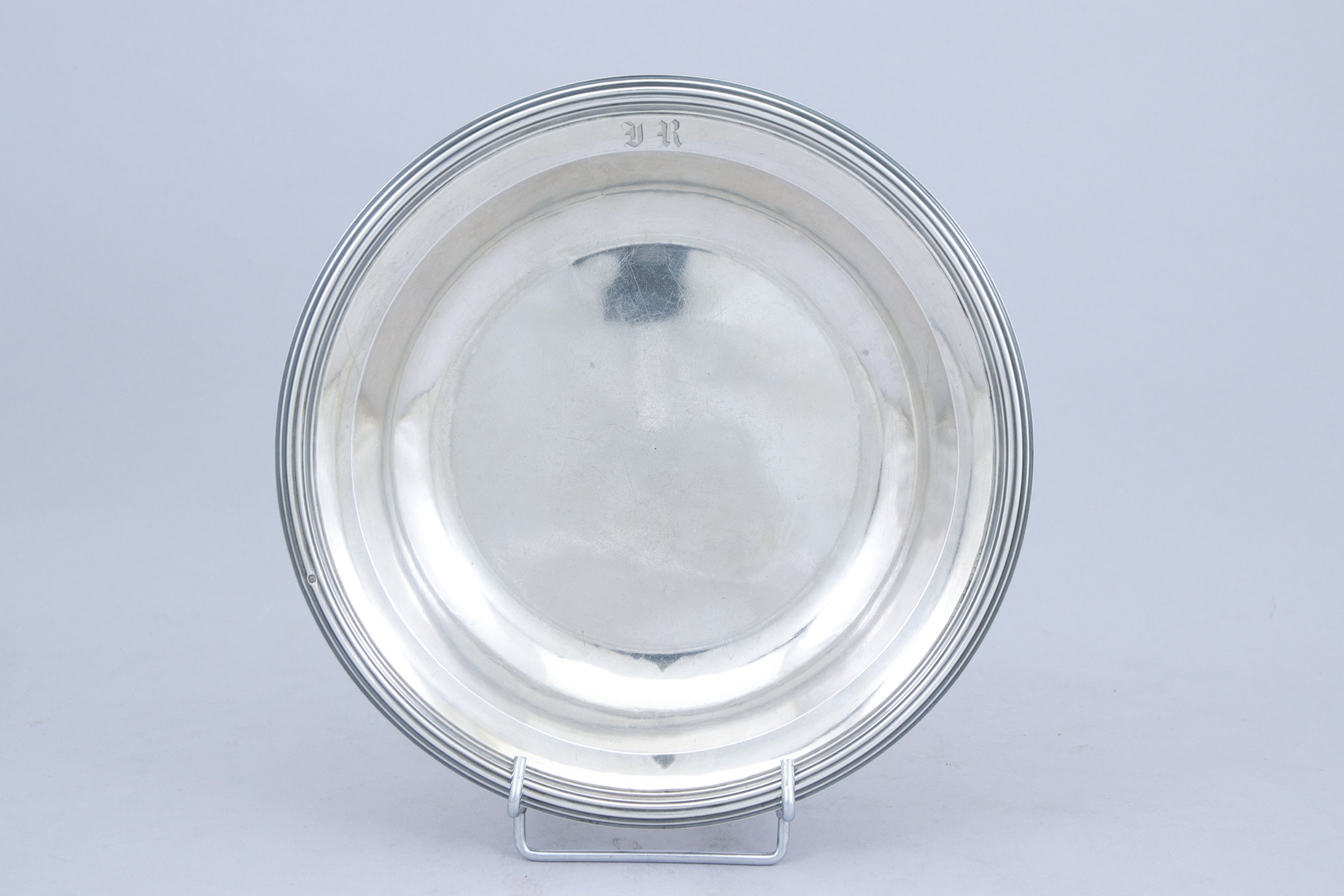PLAT ROND CREUX en argent, modèle filet. Monogrammé "DR".