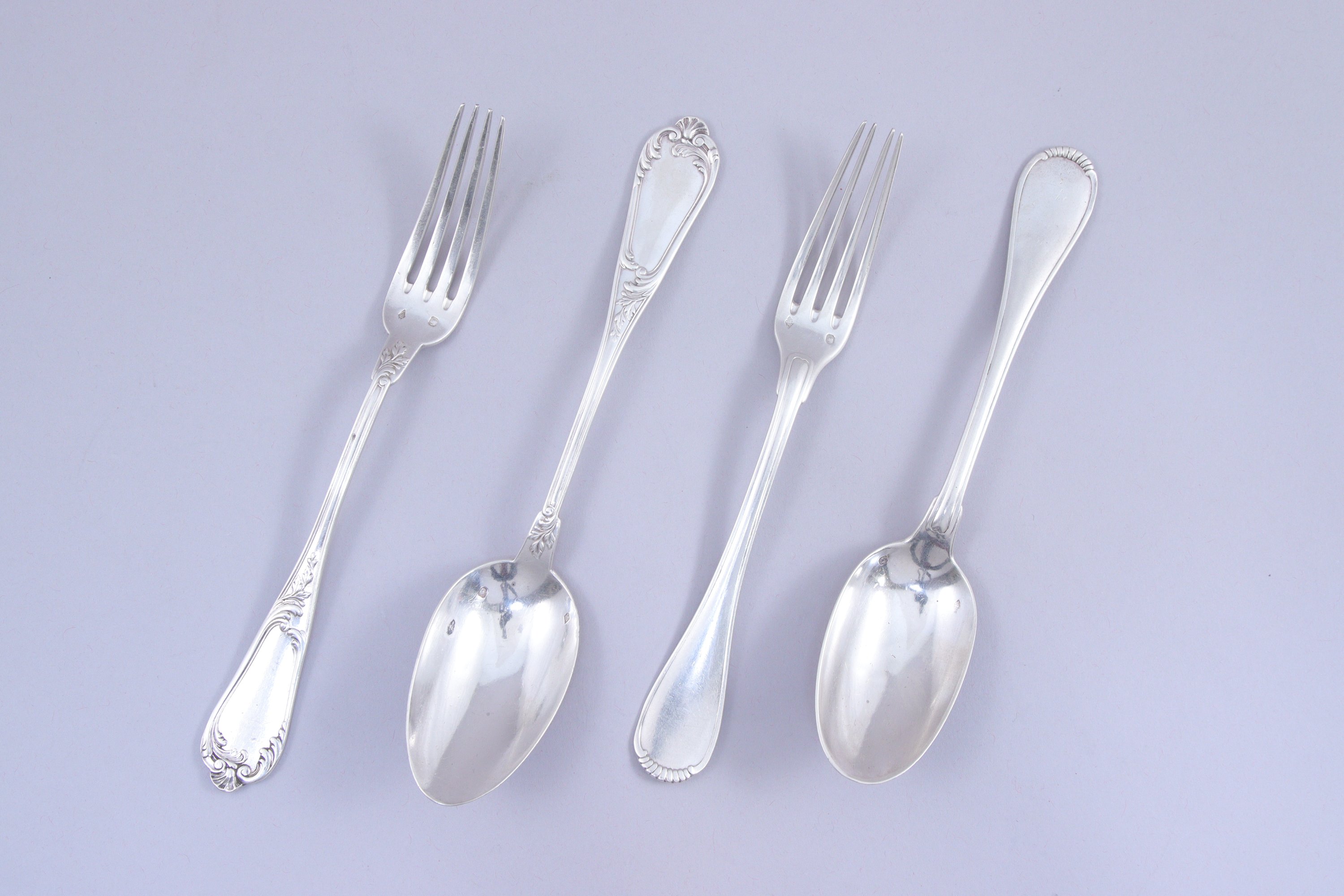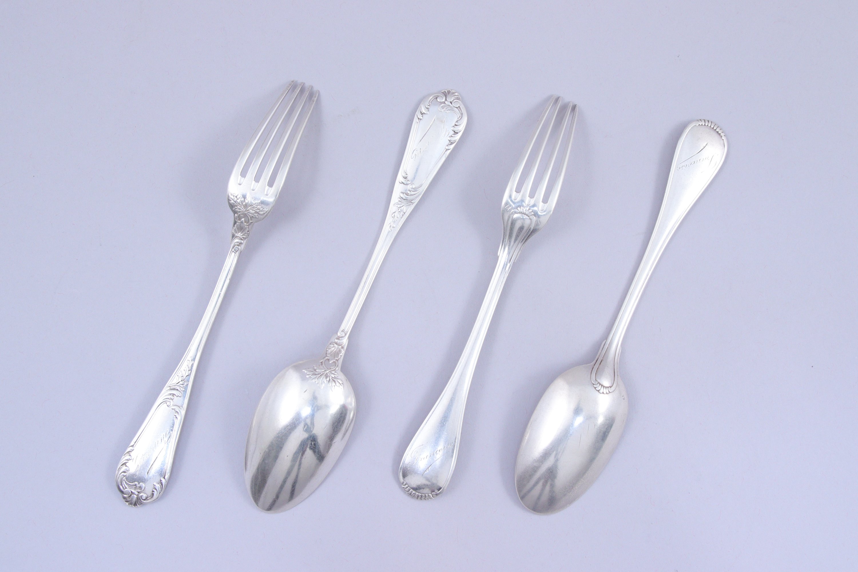 Deux COUVERTS à ENTREMETS en argent, le premier orné de motifs rocailles, gravé "Germaine", le second modèle filet gravé "Françoise".