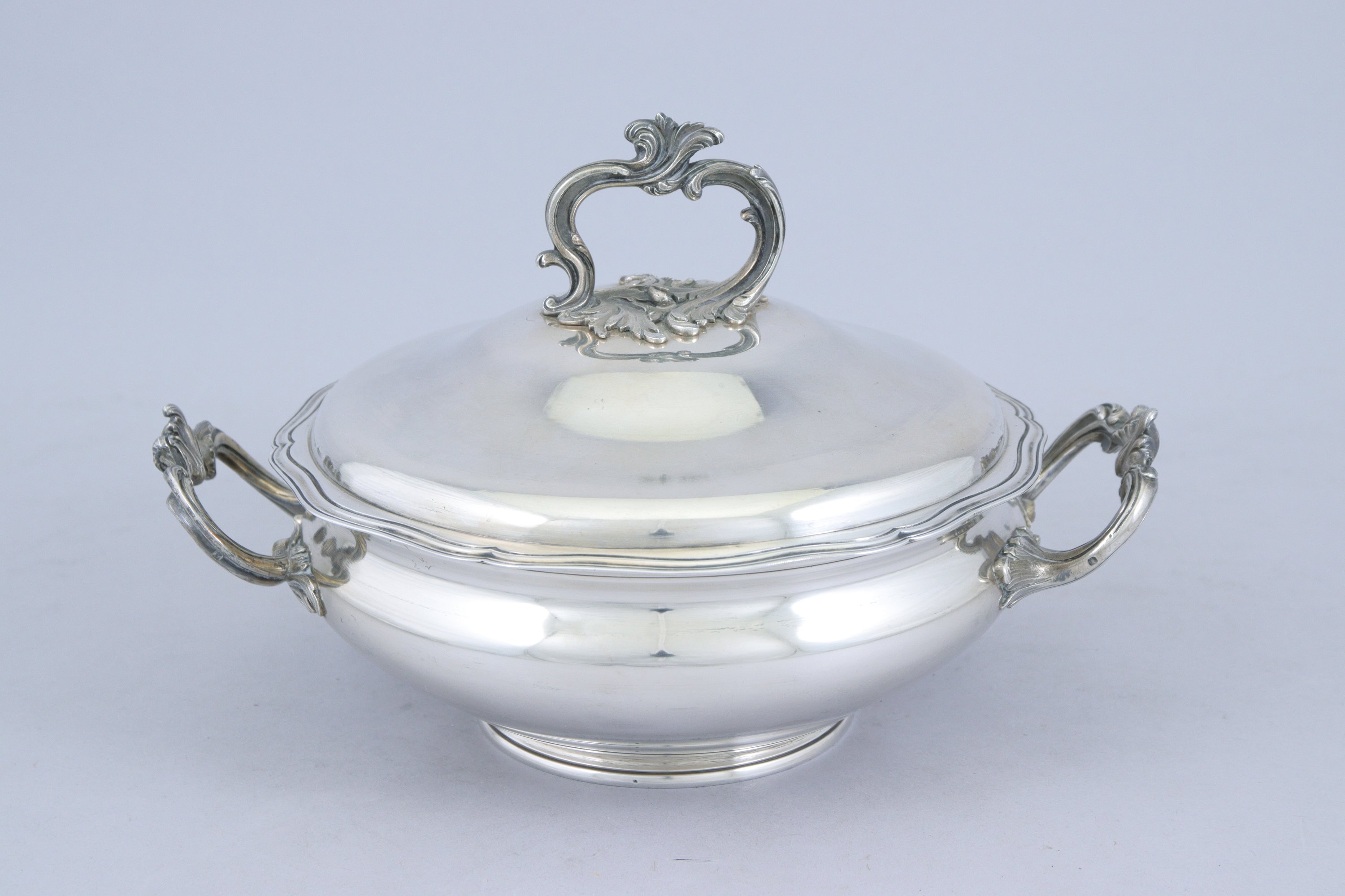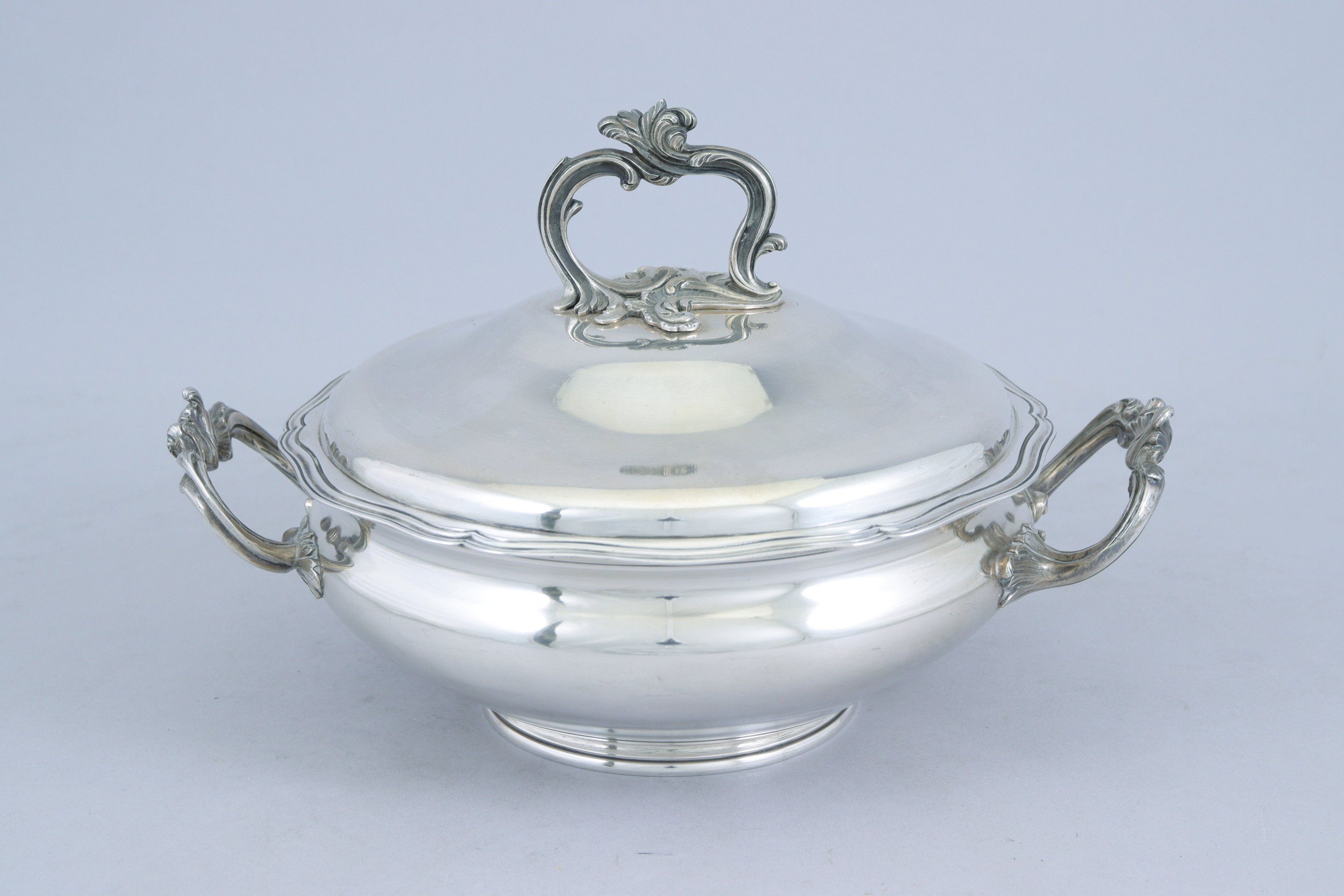 LÉGUMIER en argent, les anses et le fretel feuillagés de style rocaille.