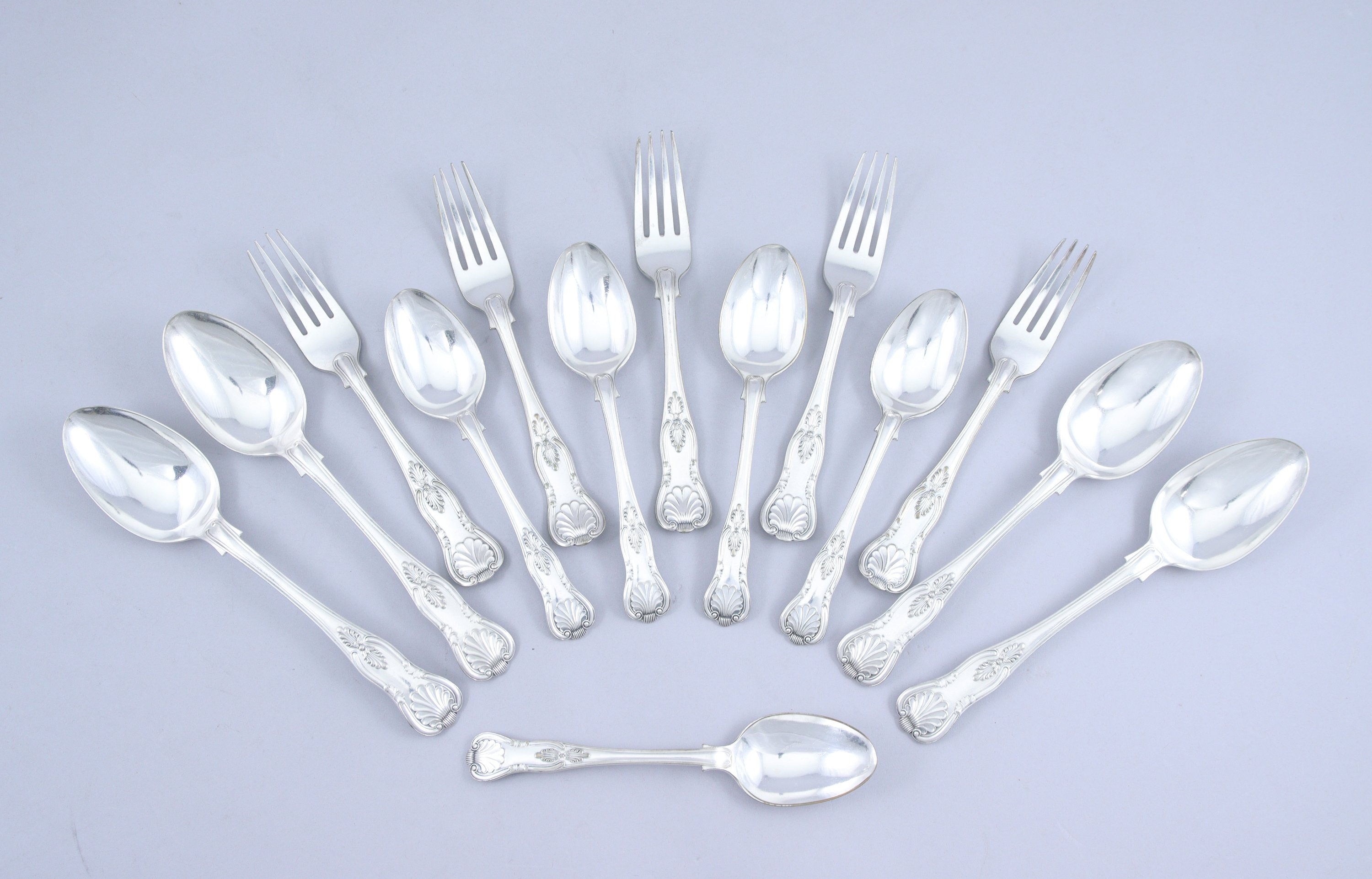 RÉUNION de COUVERTS en métal argenté comprenant cinq à entremets...