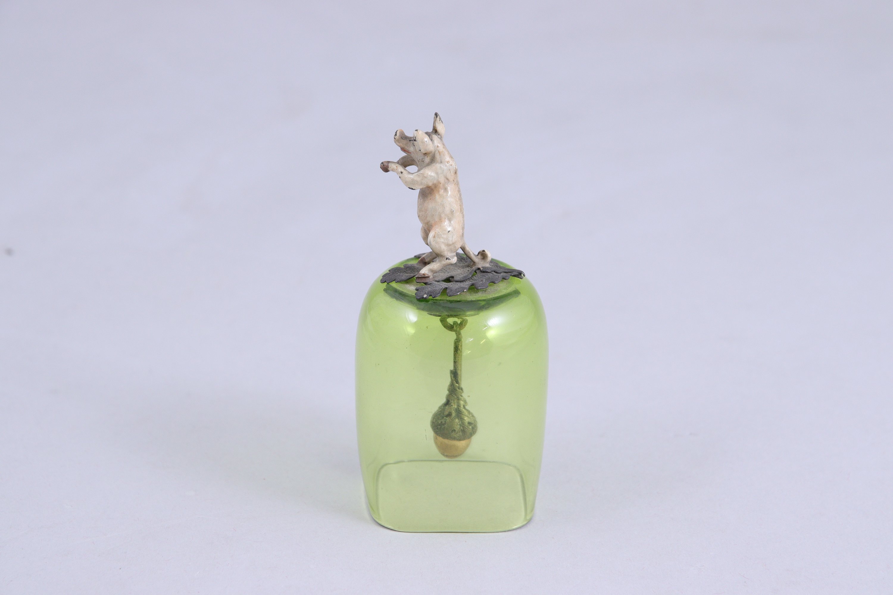 Bronze de Vienne (?) polychrome et cloche en verre.