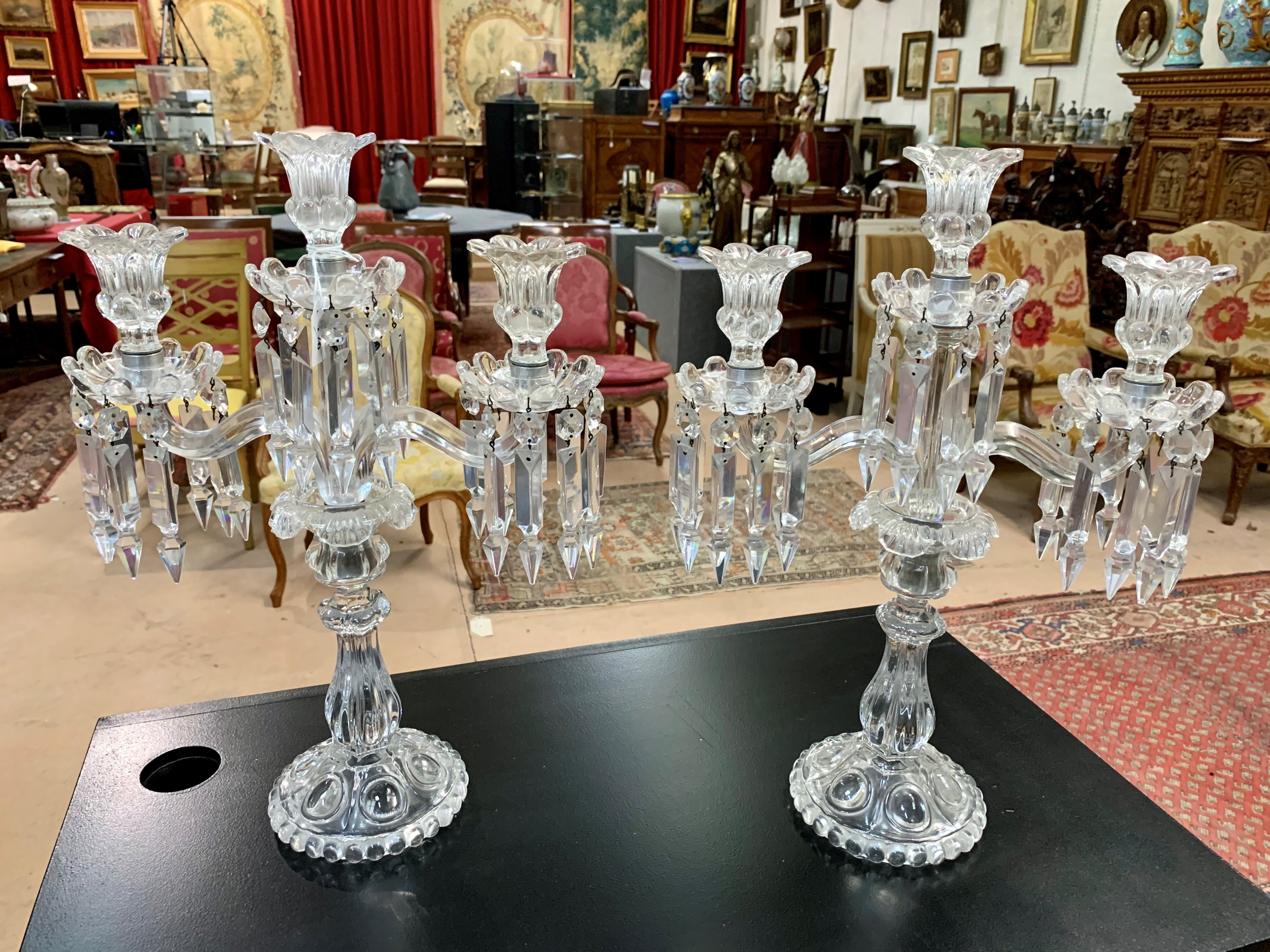 BACCARAT. Paire de GIRANDOLES à trois bras de lumière en cristal,