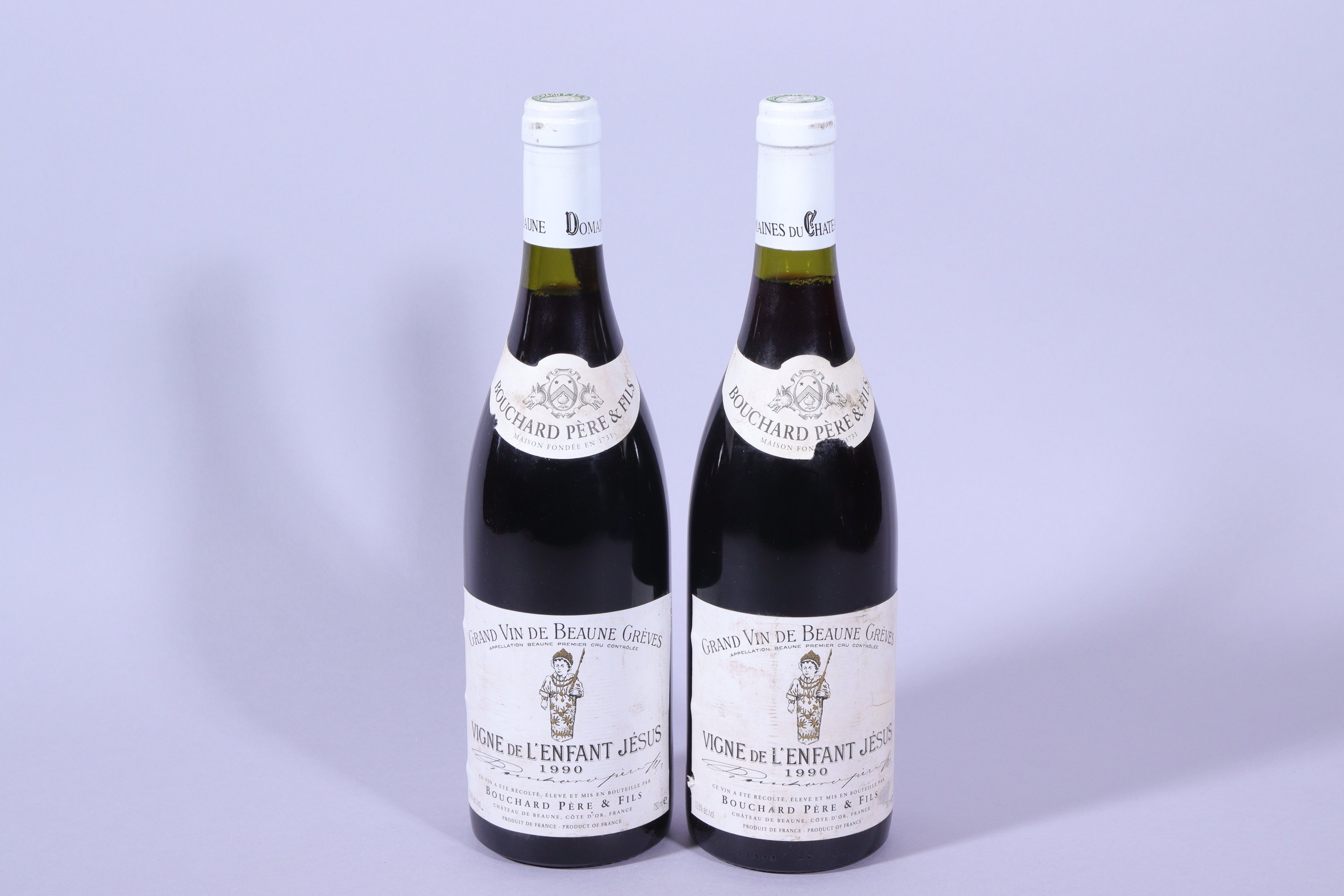 BEAUNE, Grèves, 1er Cru, Vigne de lEnfant Jésus, Bouchard Père & fils, 1990, deux bouteilles à 2 cm, une étiquette déchirée.