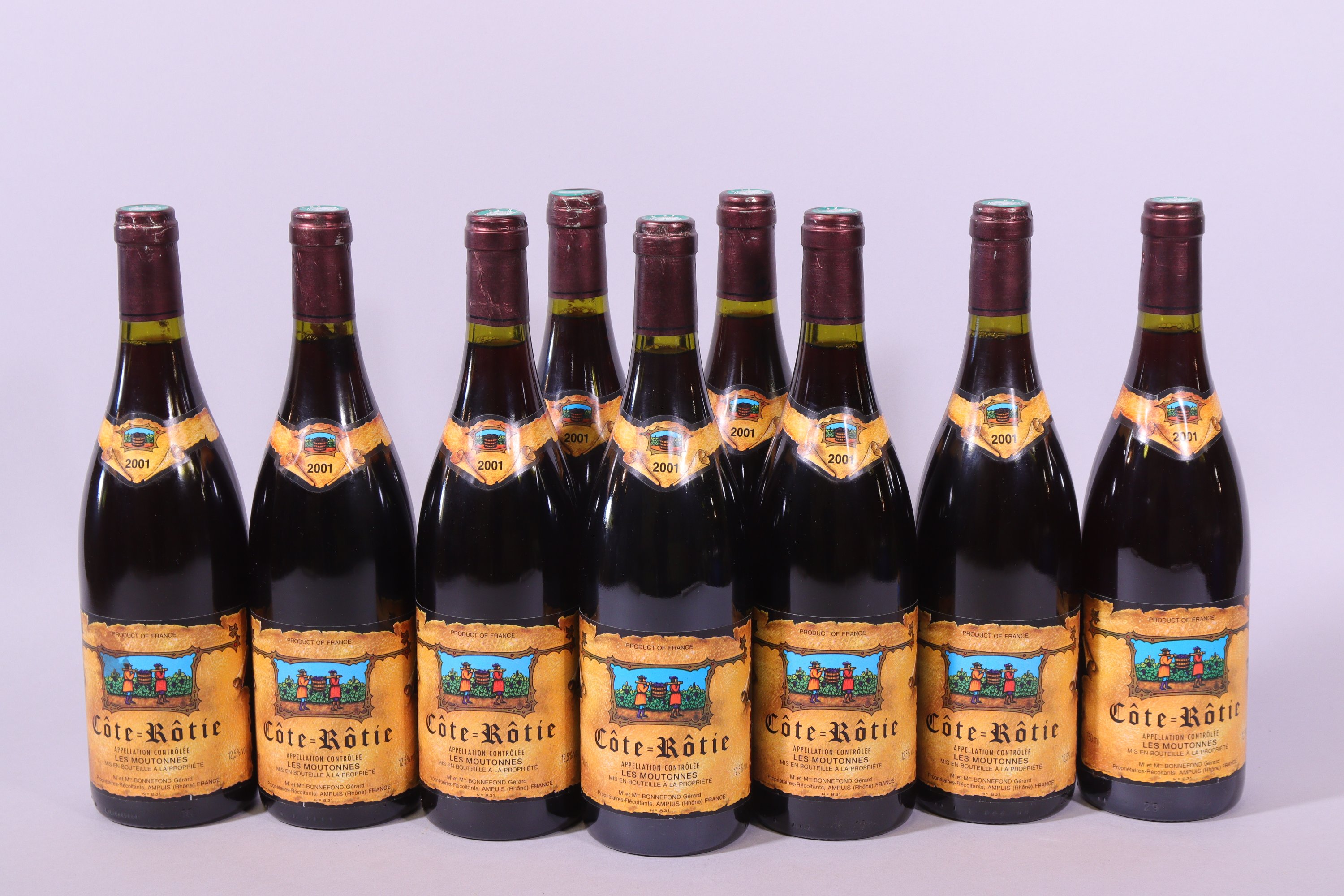 CÔTE-ROTIE, Les Moutonnes, Gérard Bonnefond, 2001, neuf bouteilles, env. 1,5 cm.