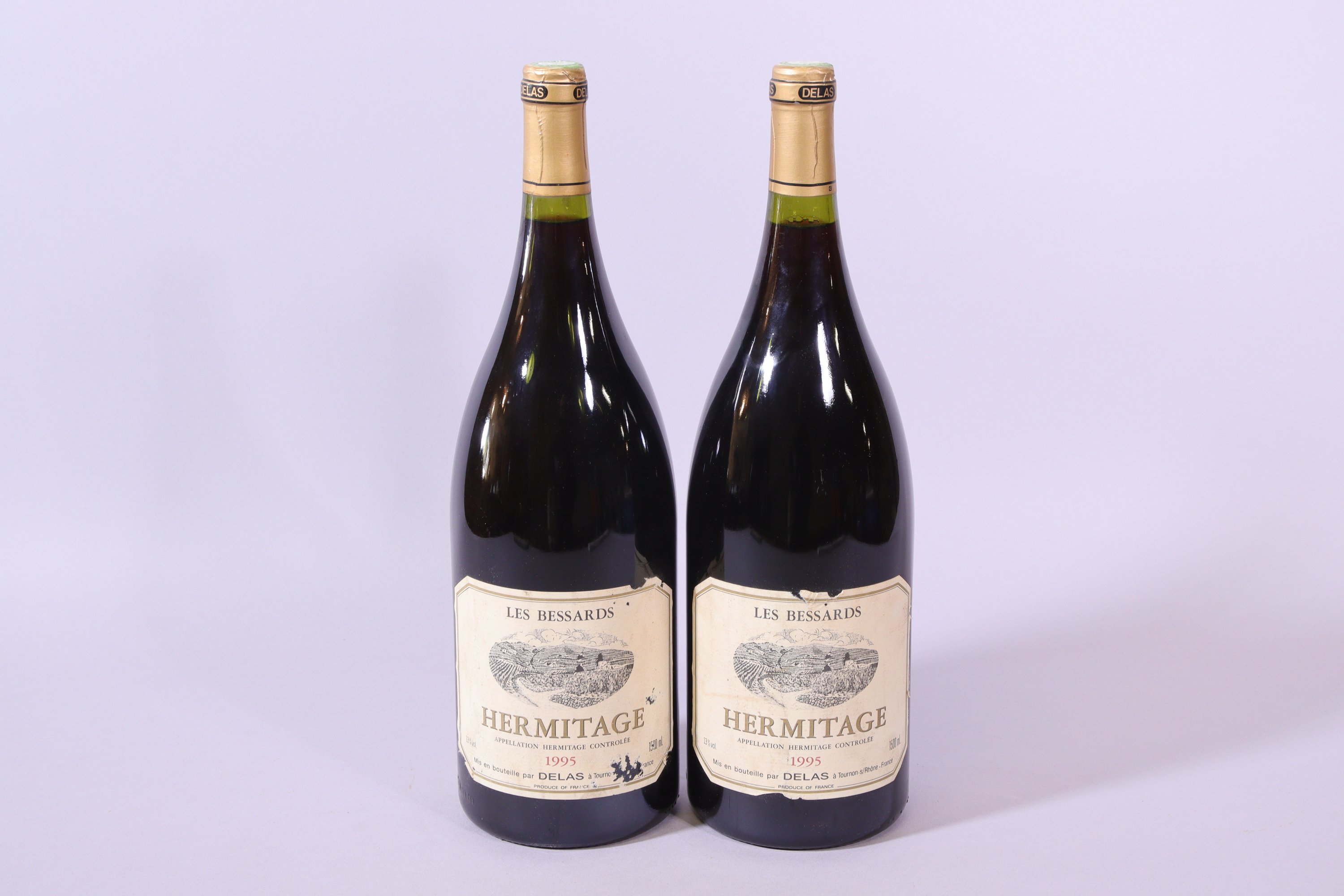 HERMITAGE, Les Bessards, Delas, 1995, deux bouteilles, 1,5 L, 1,5 à 2 cm, étiquettes abimées.