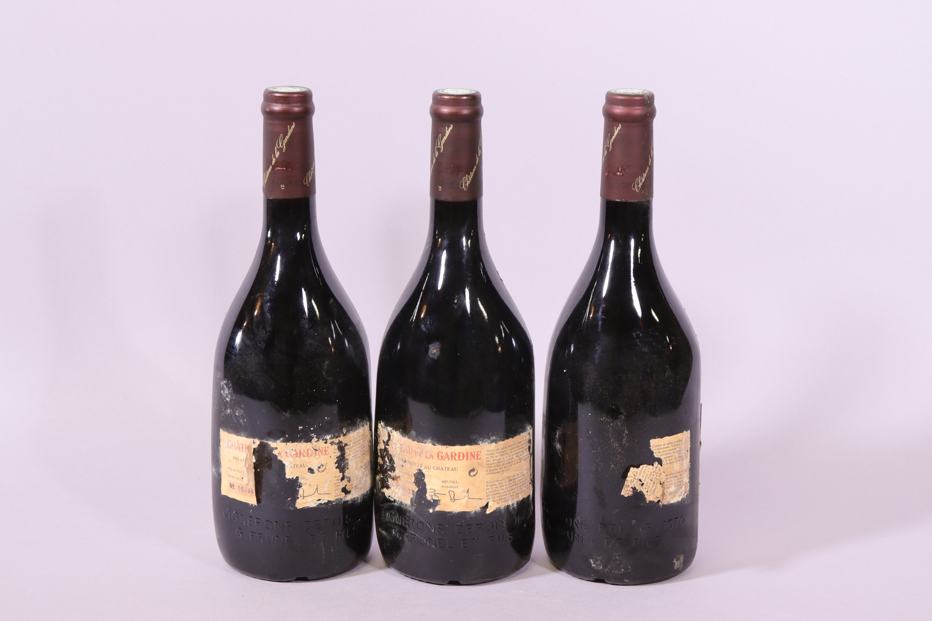 CHÂTEAU-NEUF-DU-PAPE, Château de la Gardine, Cuvée des Générations, Gaston Philippe, 1995, trois bouteilles, 1 cm, étiquettes déchirées.