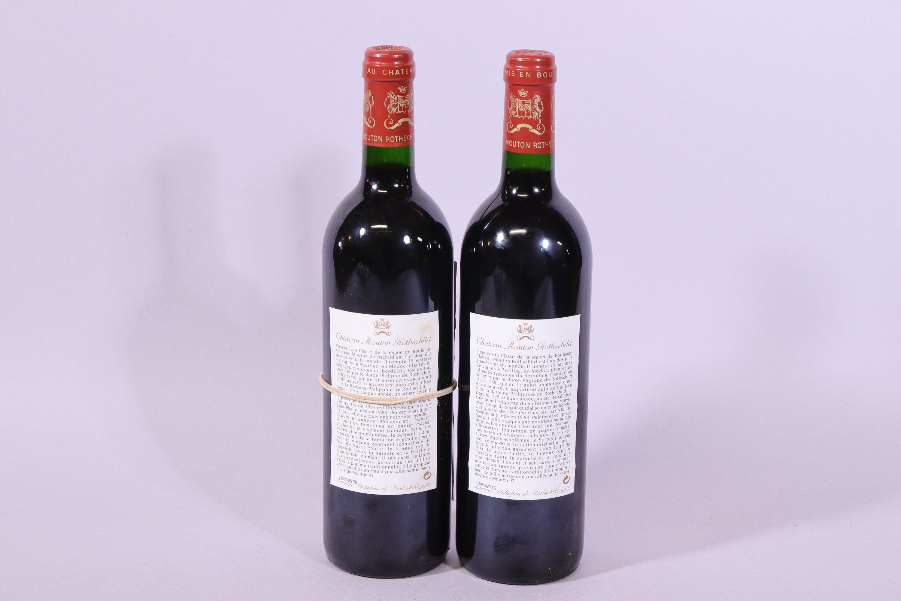 PAUILLAC, Château Mouton Rothschild, Baronne Philippine de Rothschild, 1997, deux bouteilles, étiquettes « Coucou Philippine » de Niki de Saint Phalle, TLB.
