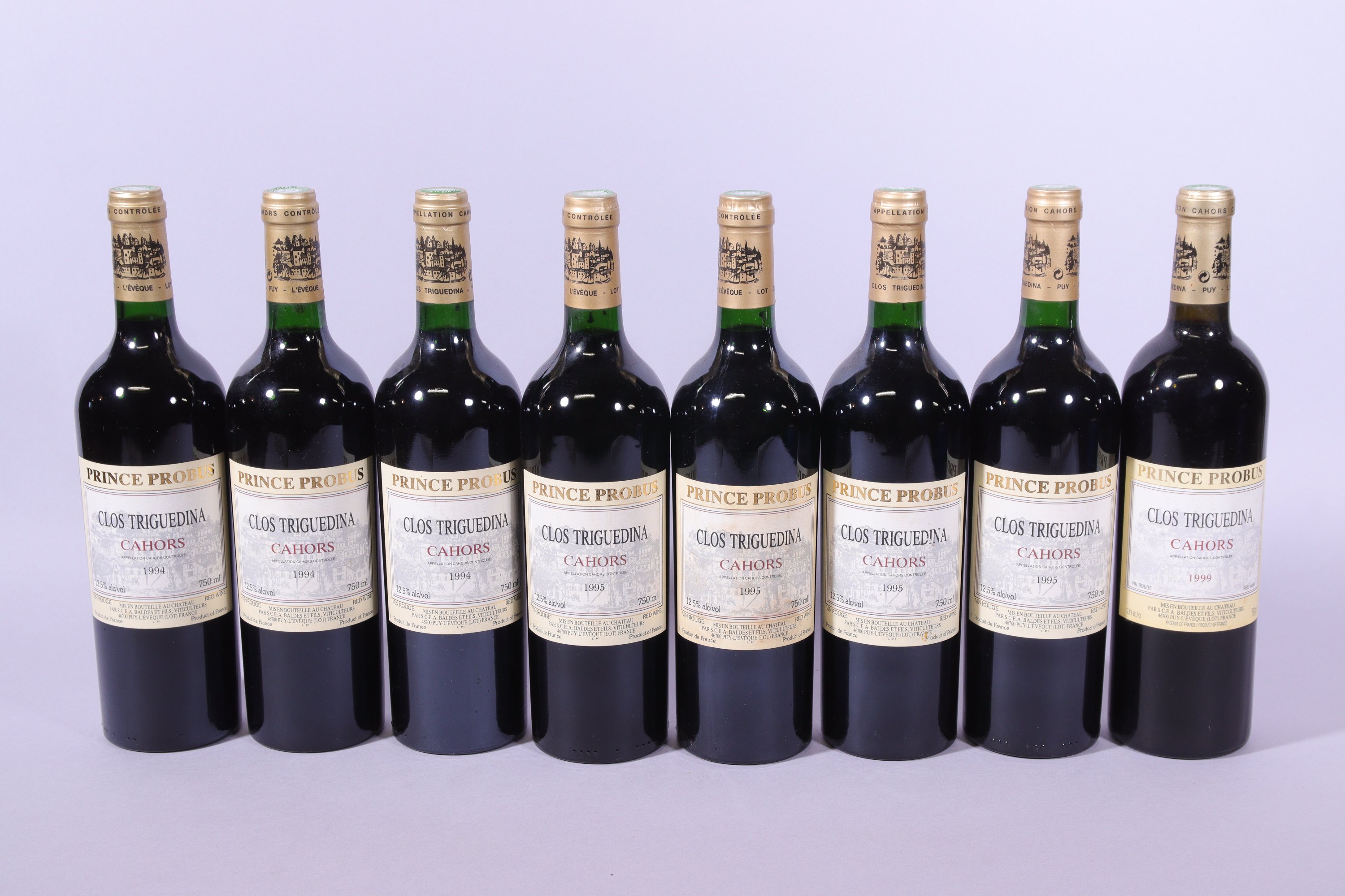 CAHORS, Clos Triguedina, Prince Probus, Baldes et Fils, trois bouteilles de 1994, quatre bouteilles de 1995, une bouteille de 1999.