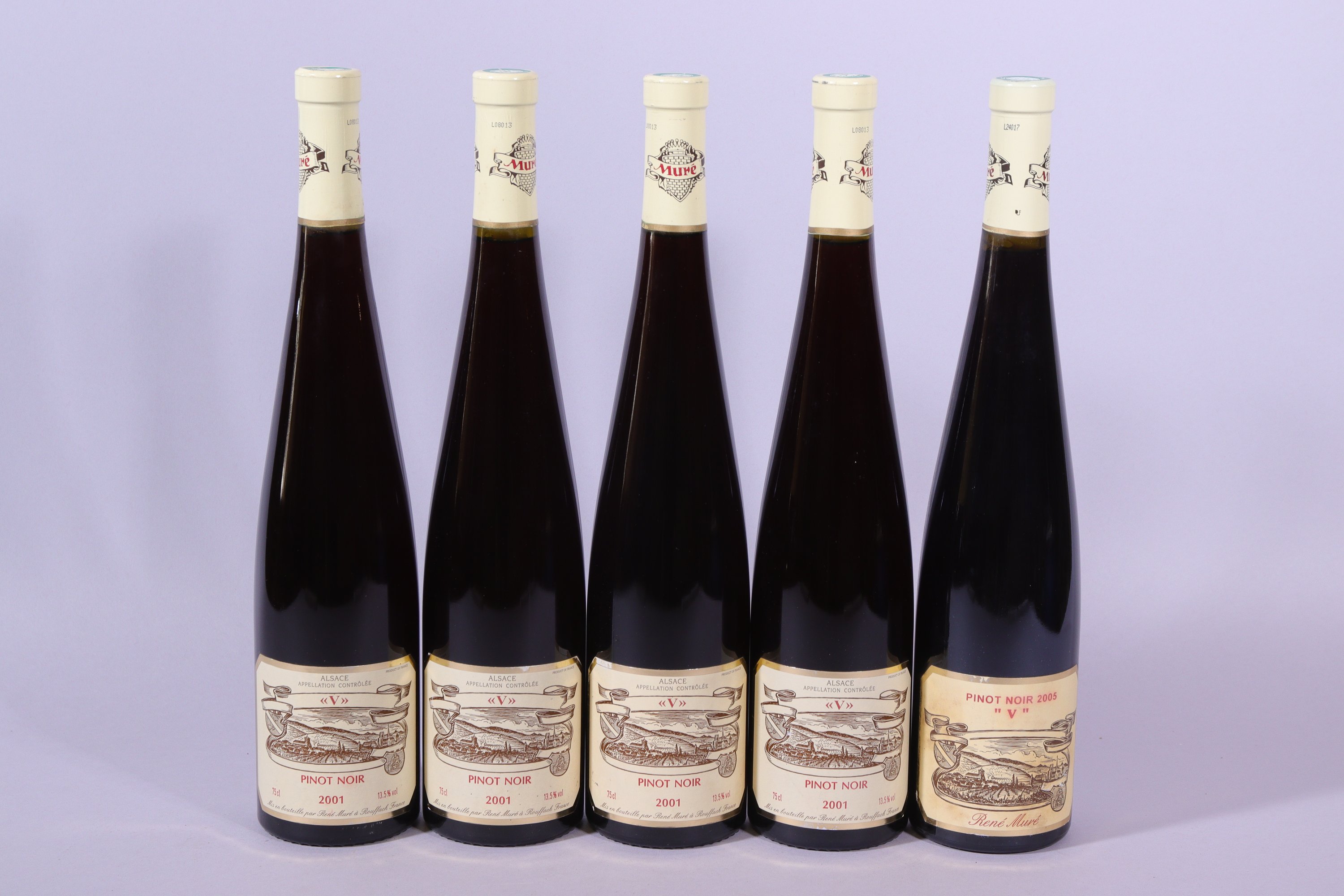 ALSACE, Pinot Noir, « V », René Muré, cinq bouteilles de 2001 et une de 2005.