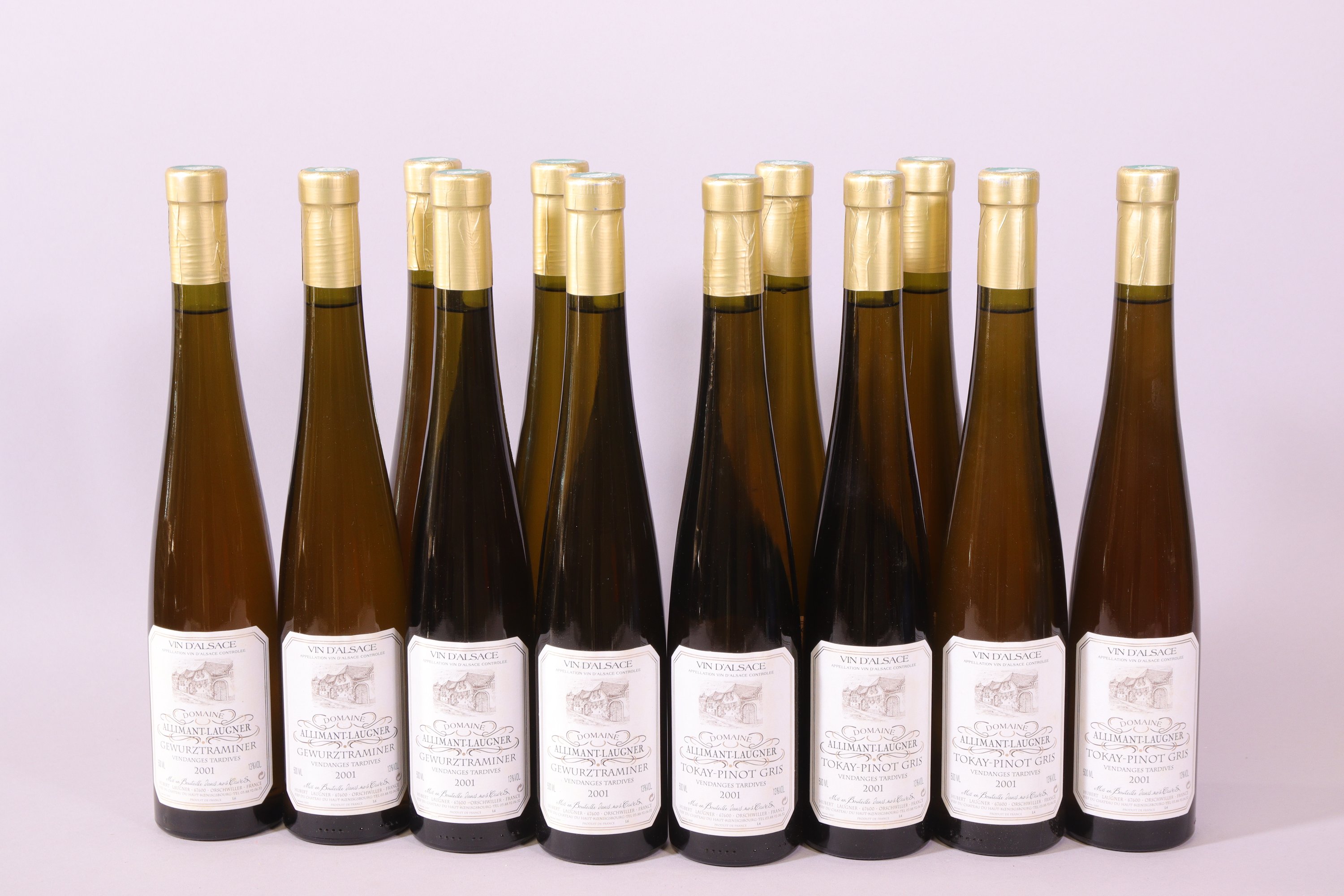 ALSACE, Tokay-Pinot Gris, Hubert Laugnier, 2001, douze bouteilles, 50 cl, 0,5 à 2 cm.