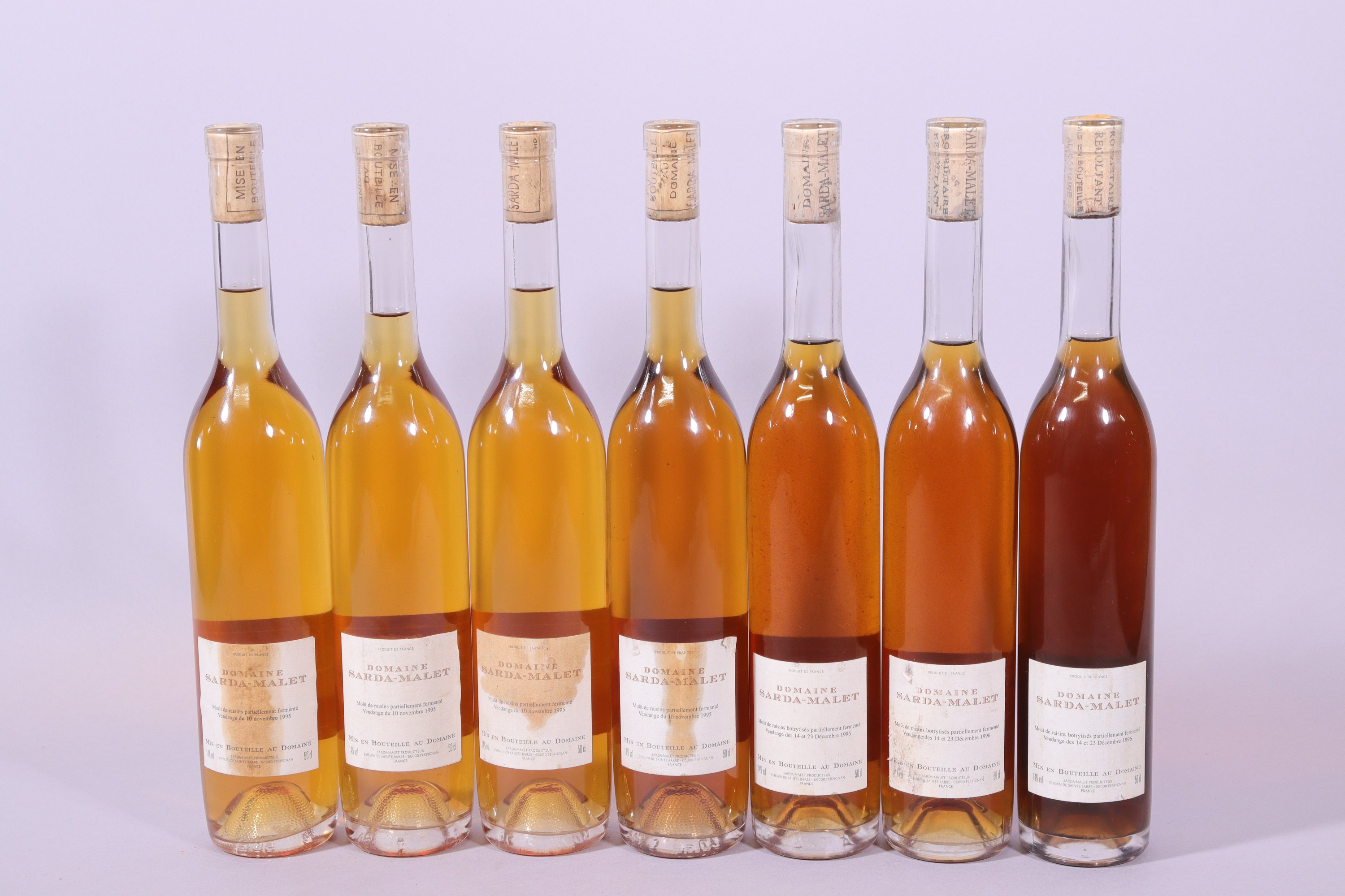 SEPT BOUTEILLES : Domaine Sarda-Malet, LAbandon, 1995, quatre bouteilles ; Domaine Sarda-Mallet, LExtrait, 1996, trois bouteilles.