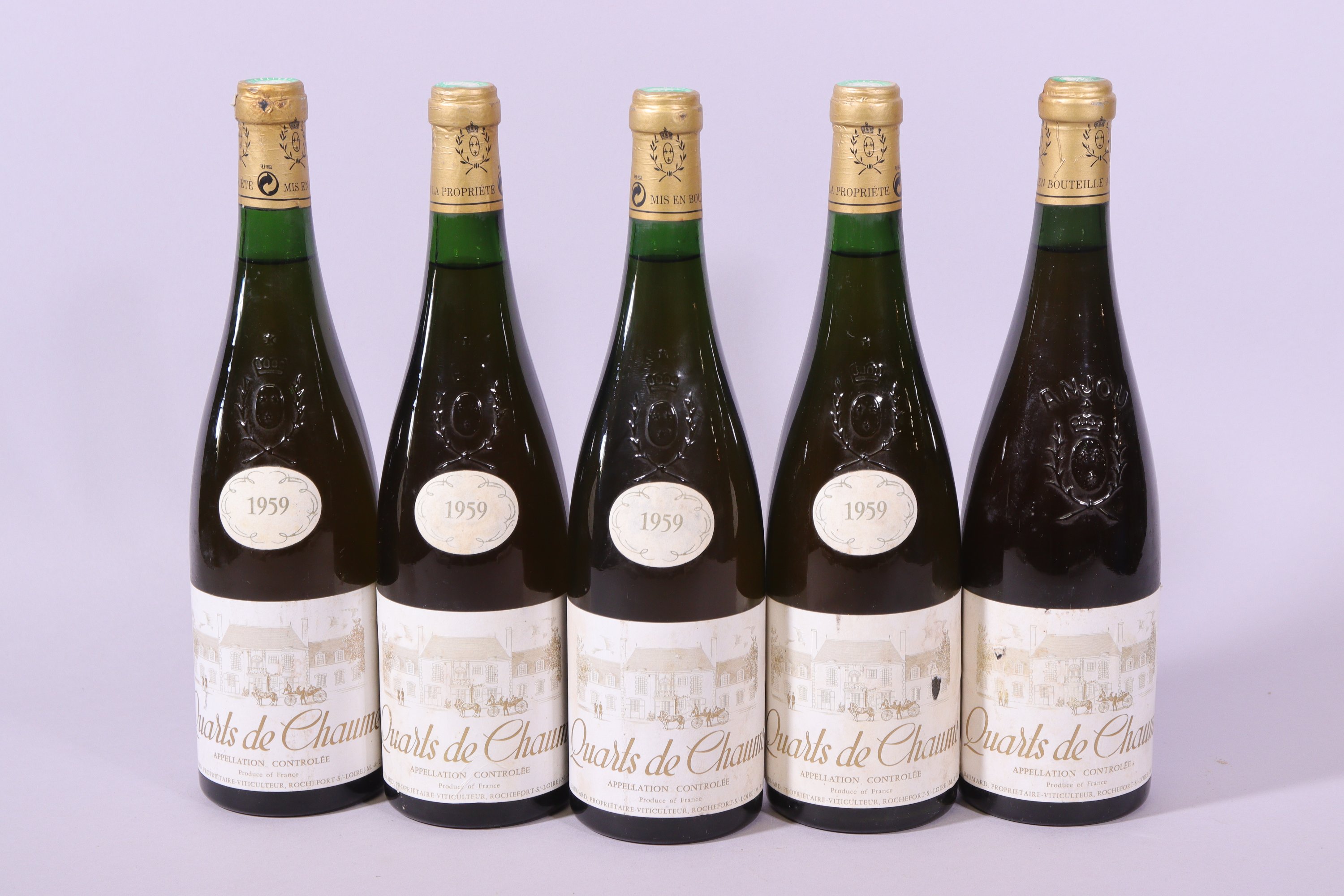 QUARTS de CHAUME, Baumard, 1959, cinq bouteilles, 2 à 2,5...