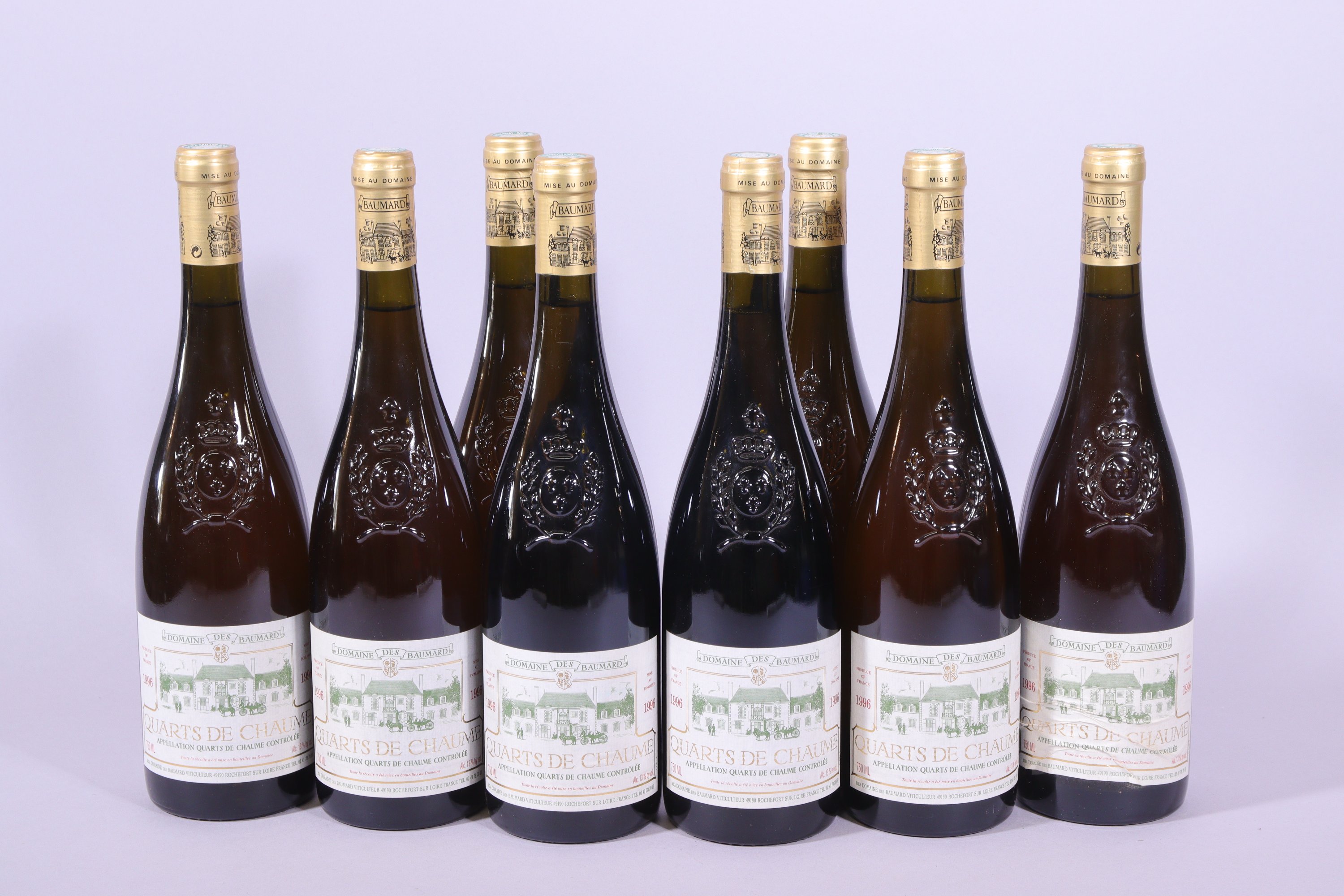 QUARTS de CHAUME, Domaine des Baumard, 1996, huit bouteilles, 1 à 2,5 cm, étiquettes abimées.