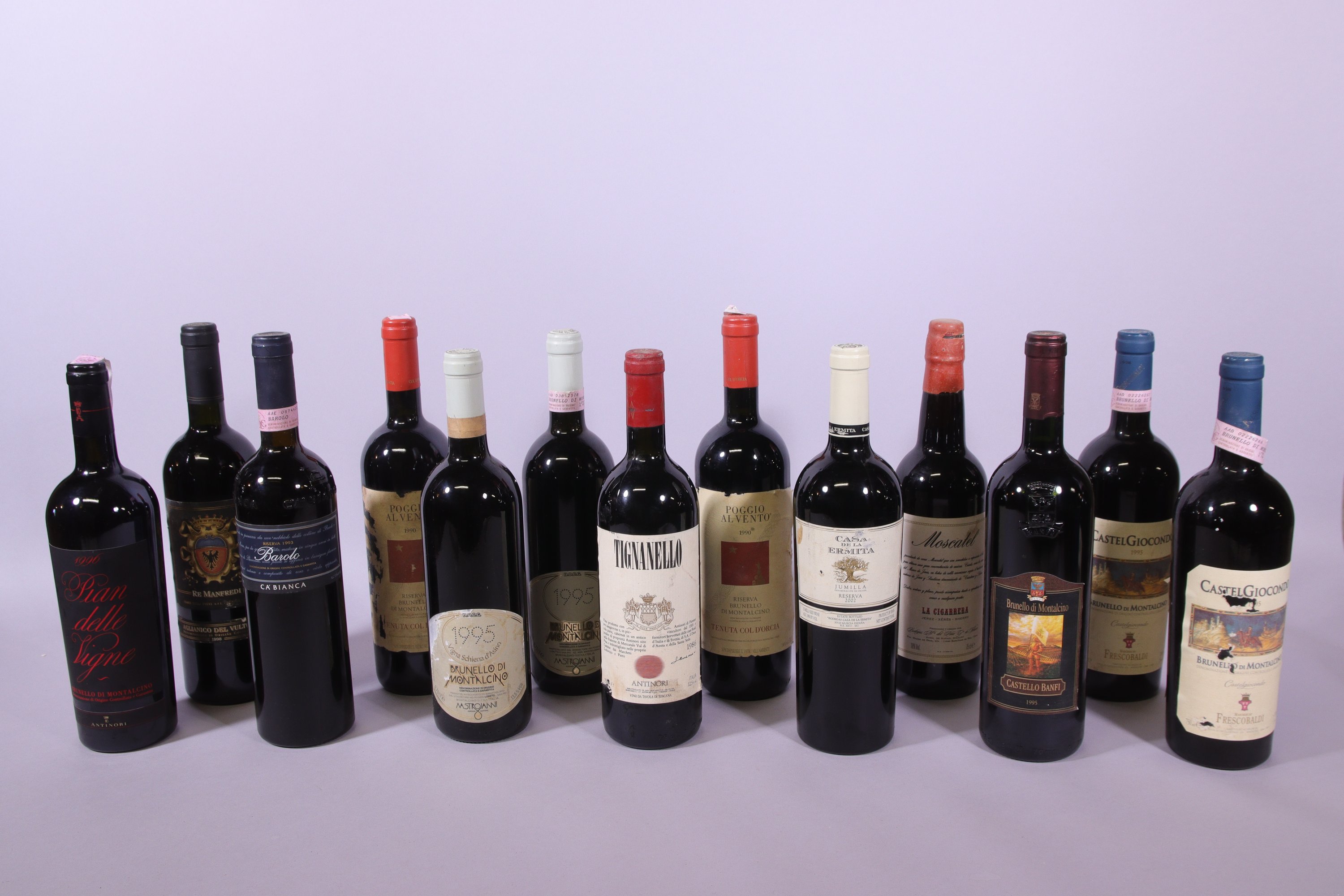TREIZE BOUTEILLES de VINS ROUGE « TOUR de lEUROPE », 1 à 3,5 cm, étiquettes abîmées.