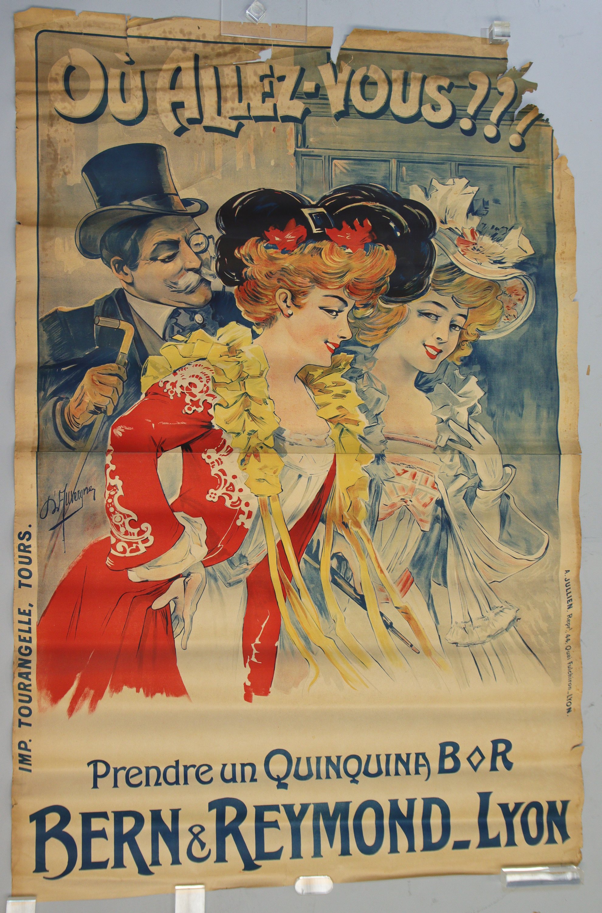 "Où ALLEZ-VOUS ??? / Prendre un QUINQUINA BOR / BERN & REYMOND - LYON". Signée. Vers 1900. Epreuves originales imprimées en couleurs. "Imp. Tourangelle, Tours"