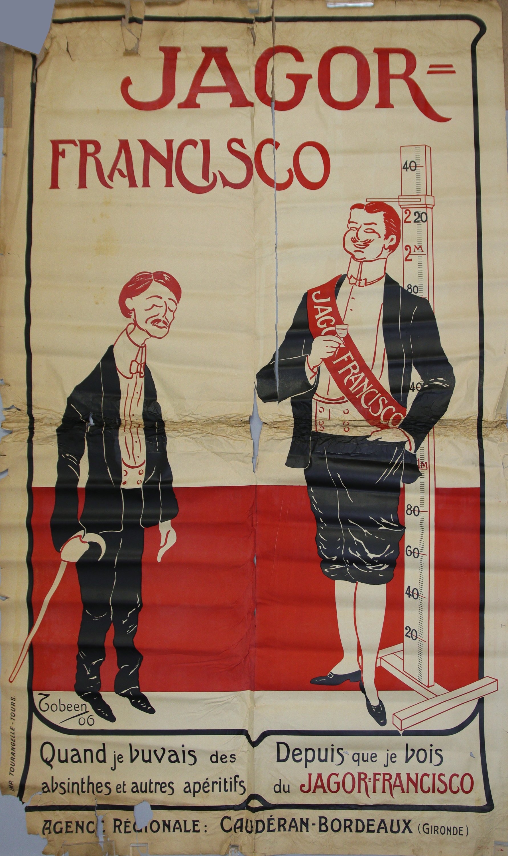 "JAGOR-FRANCISCO / Bordeaux". Signées et datées 1906. Epreuves originales imprimées en couleurs. "Imp. Tourangelle, Tours". Rarissimes et spectaculaires affiches.