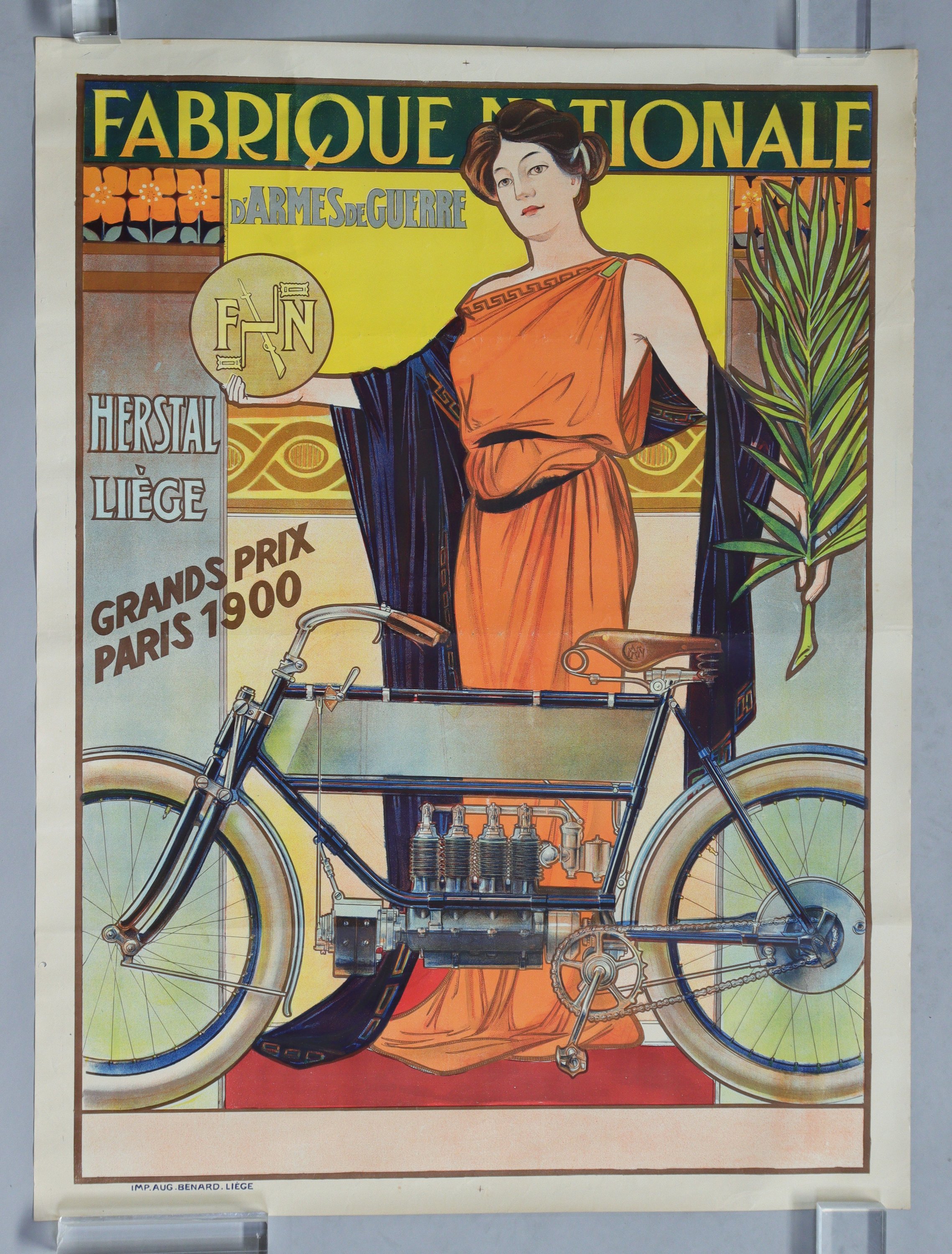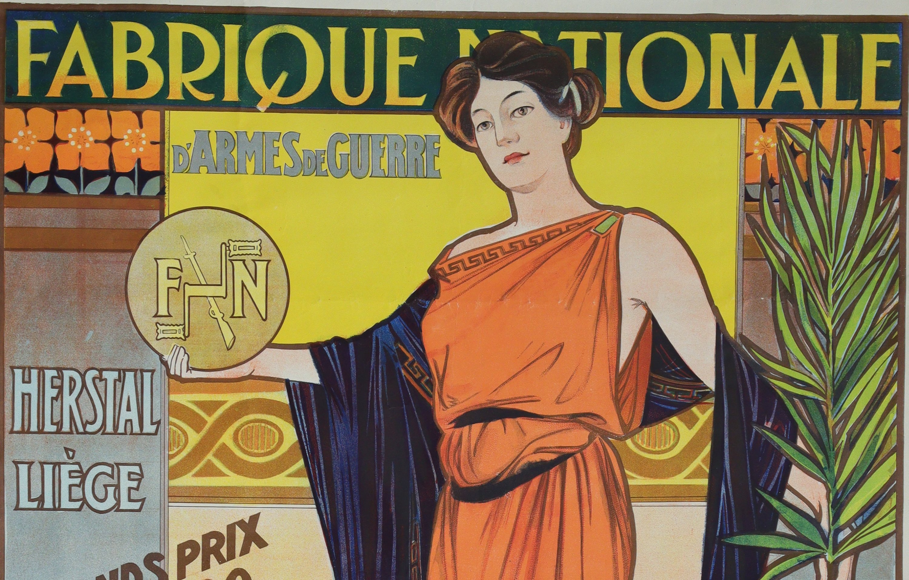 "Fabrique Nationale, FN, Herstal, Liège, Grands Prix de Paris, 1900." Epreuves originales imprimés en couleurs "Imp. Aug. Bénard, Liège"