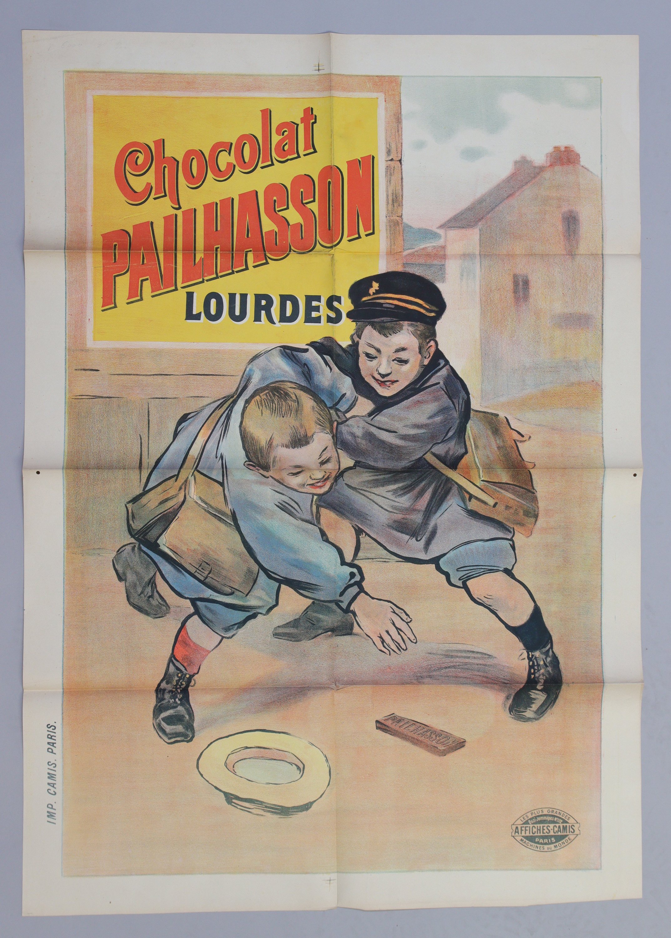 « CHOCOLAT PAILHASSON Lourdes ». Vers 1896. Env. 115 x 80 cm (plis) ;