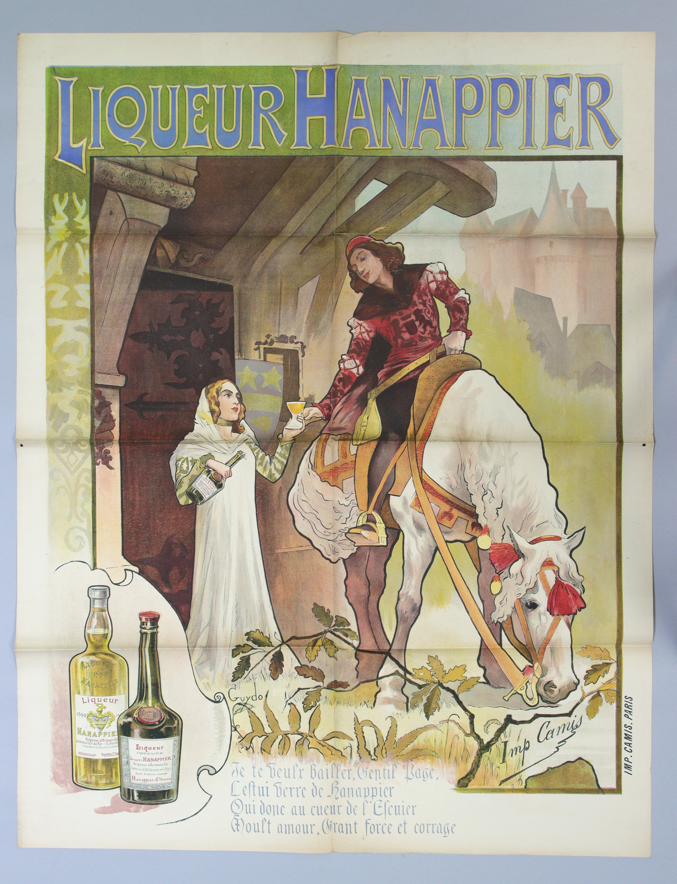 « LIQUEUR HANAPPIER ». Signées. Vers 1895. 2 exemplaires. Env. 130 x 100 cm (plis, rousseurs/salissures). Bel exemplaire.