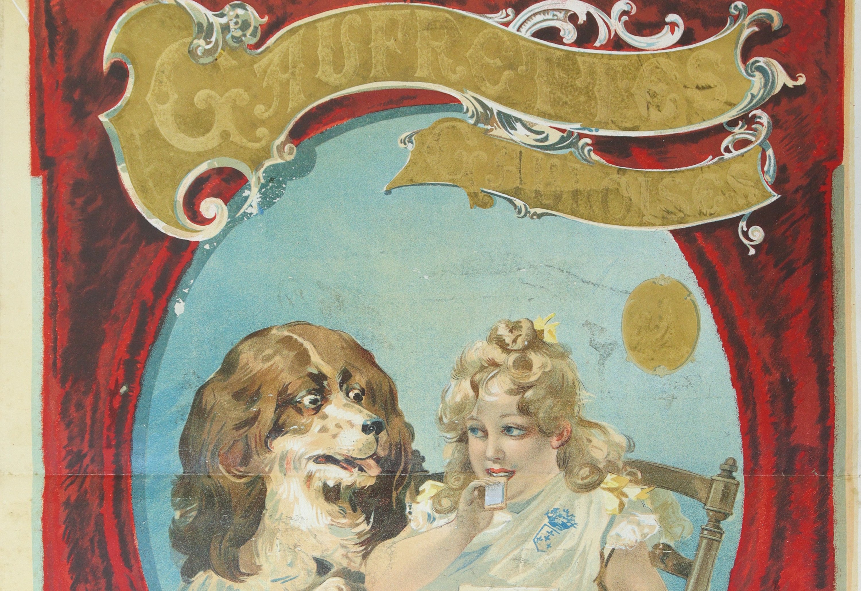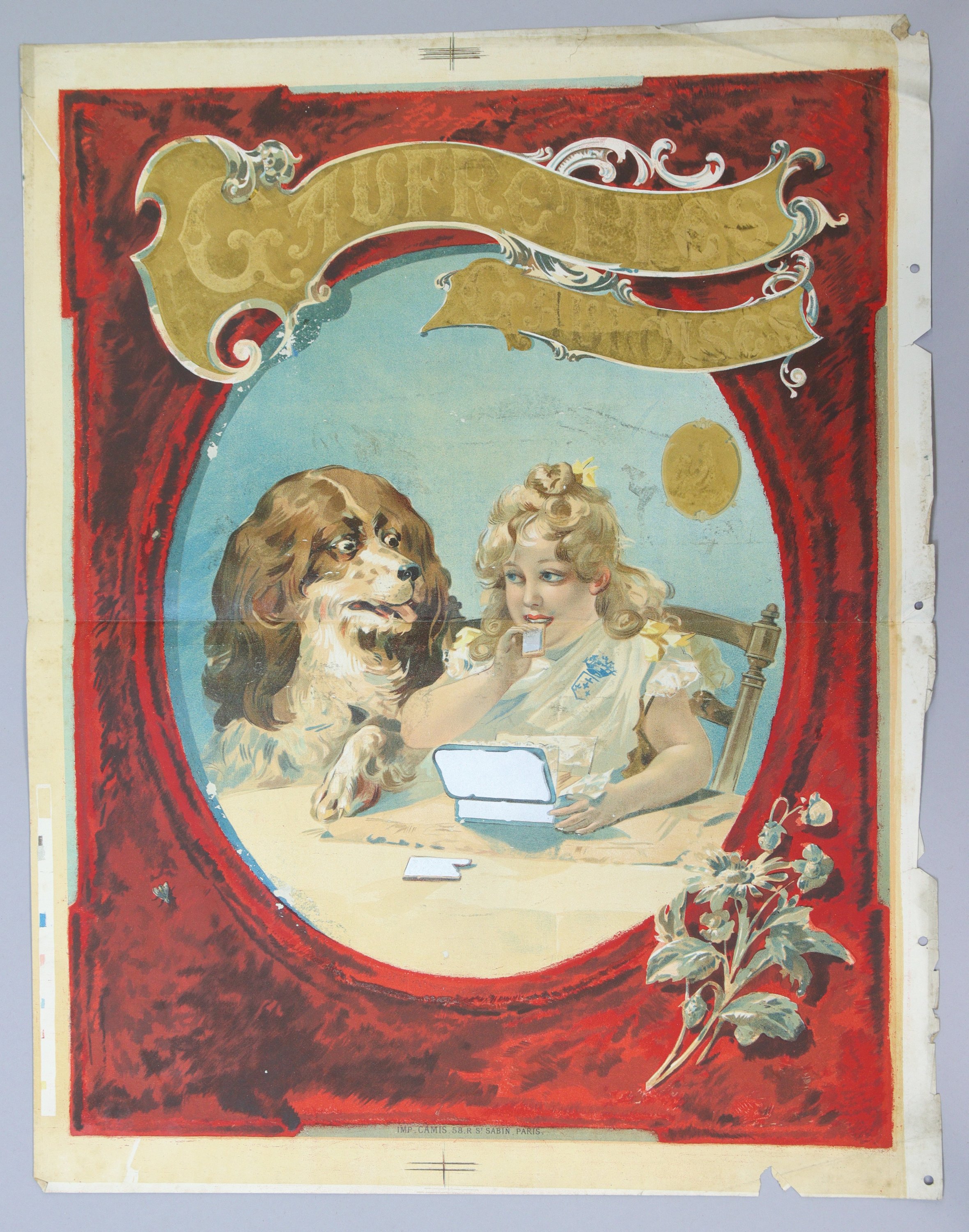 [GAUFRETTES GAULOISES]. Affiche avant la lettre. Vers 1893 [Imp. Camis, 58 rue St Sabin]. Env. 65 x 50,5 cm (plis, petites déchirures, rousseurs/salissures) ;