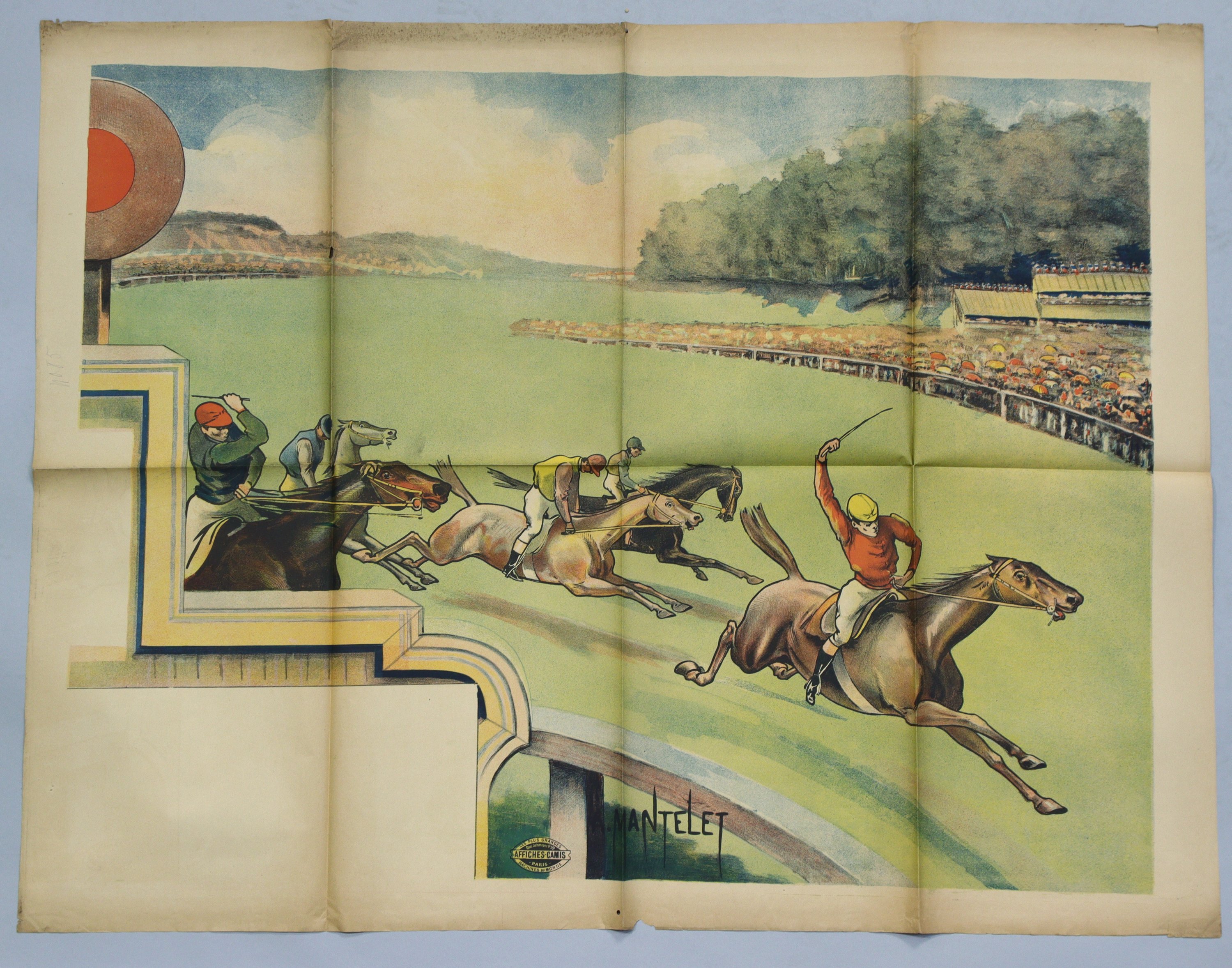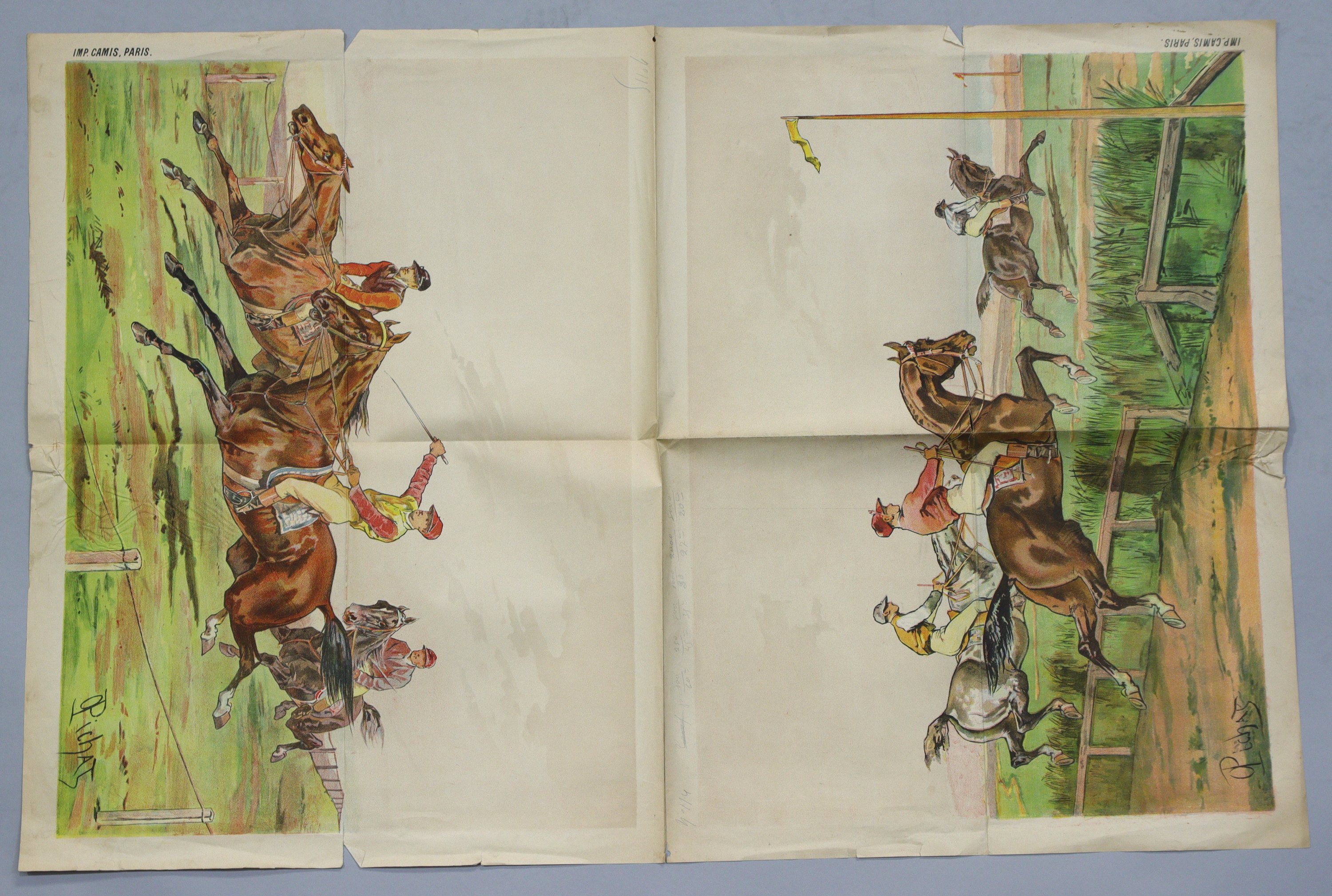 Courses hippiques. Signée. Vers 1898. Env. 130 x 100 cm (plis, petites déchirures, rousseurs/salissures) ;