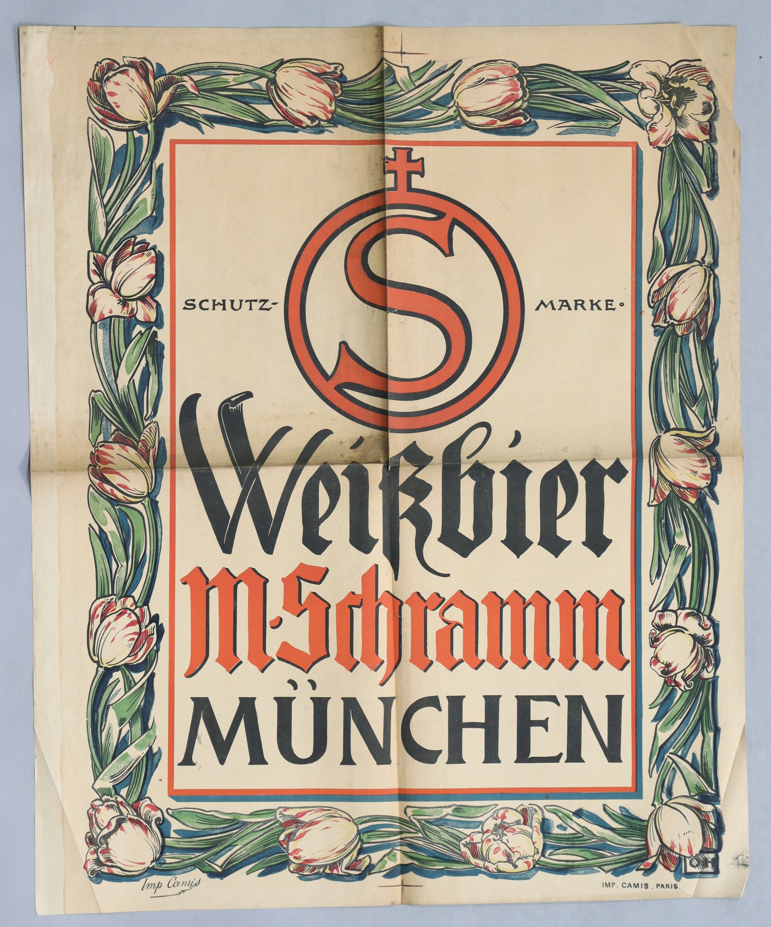 « Weissbier / M. Schramm / München ». Vers 1898. Env. 80 x 65 cm (plis, rousseurs/salissures) ;