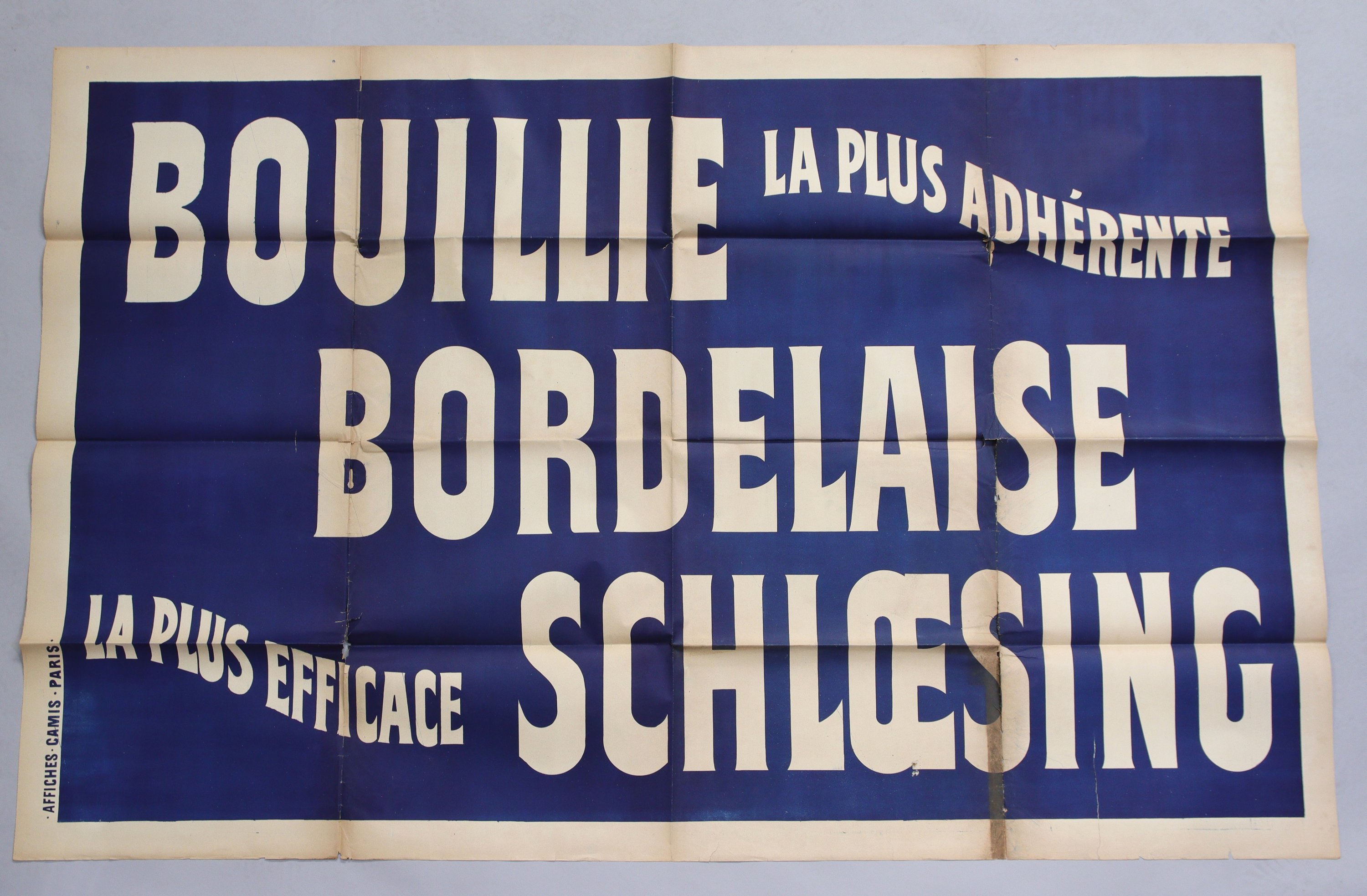 « BOUILLIE BORDELAISE SCHLOESING la plus efficace ». Vers 1898. Env. 127 x 200 cm (plis, déchirures, rousseurs/salissures).