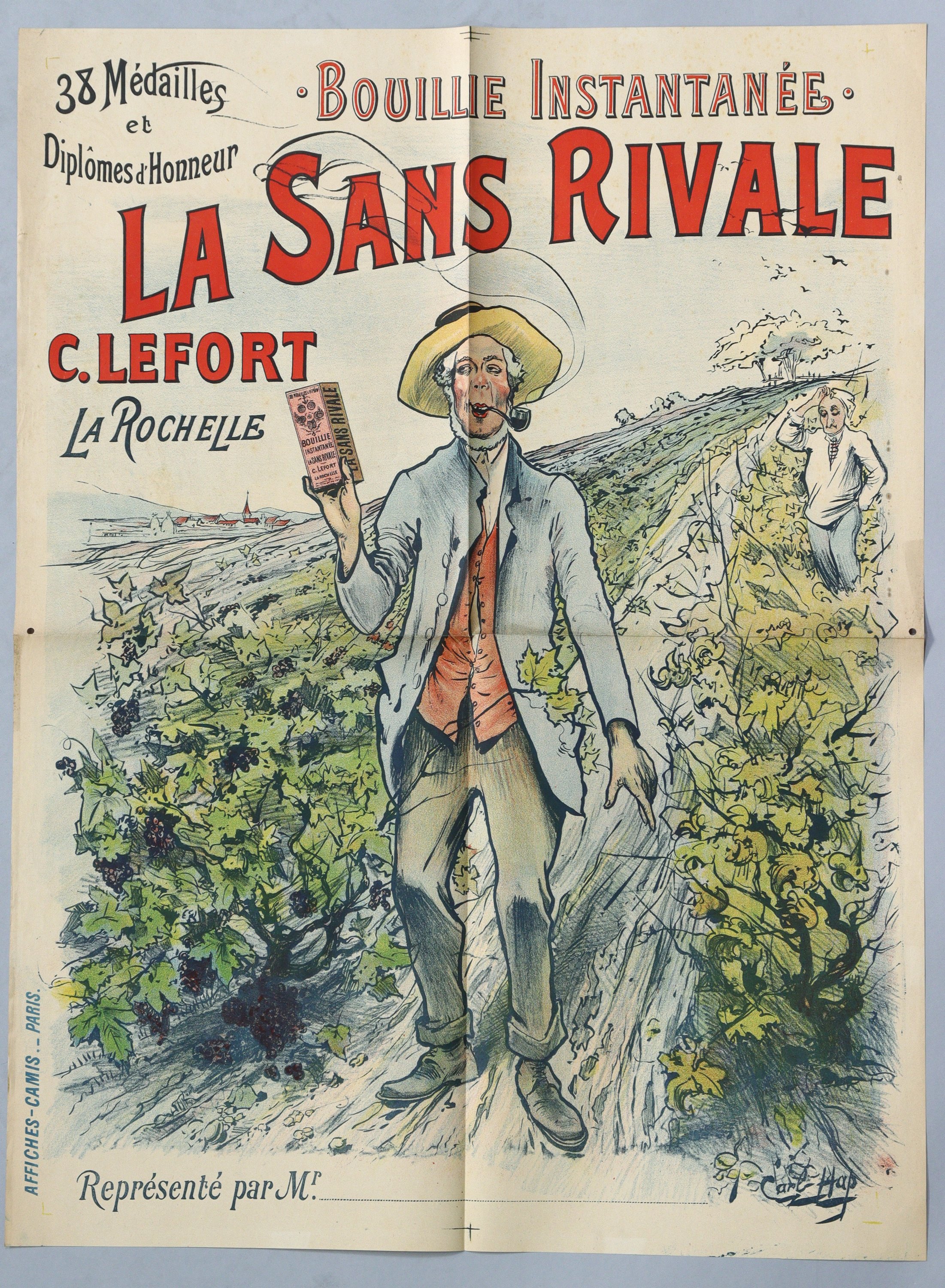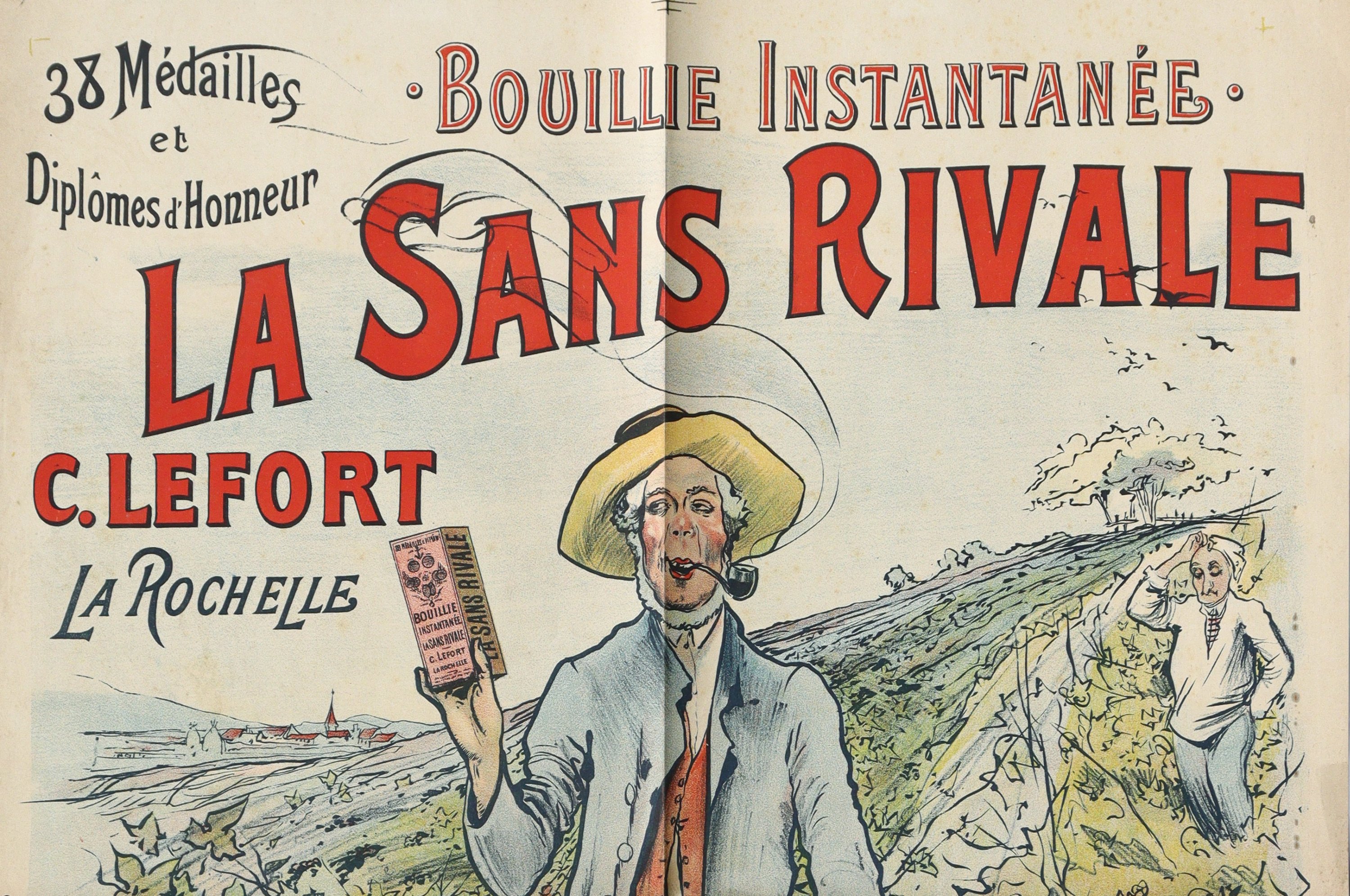 « Bouillie instantanée / LA SANS RIVALE / C. Lefort La Rochelle ». Signée. Vers 1898. Env. 80 x 60 cm (plis, rousseurs/salissures) ;