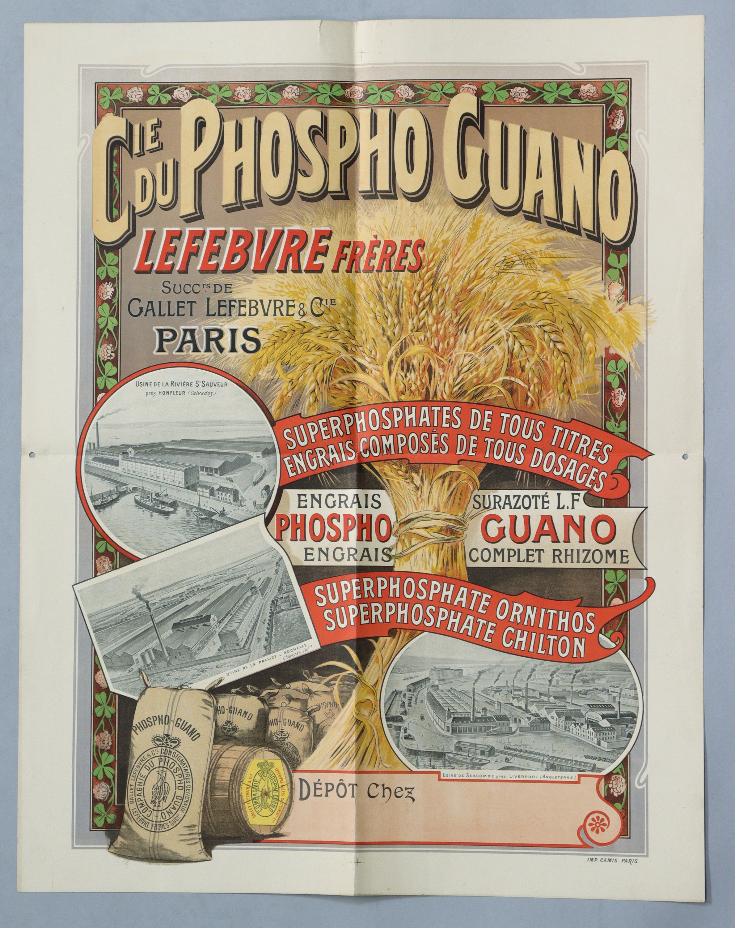« Cie du PHOSPHO GUANO / Lefebvre frères ». Vers 1898. Env. 75 x 59 cm (plis, petite déchirure en marge) ;