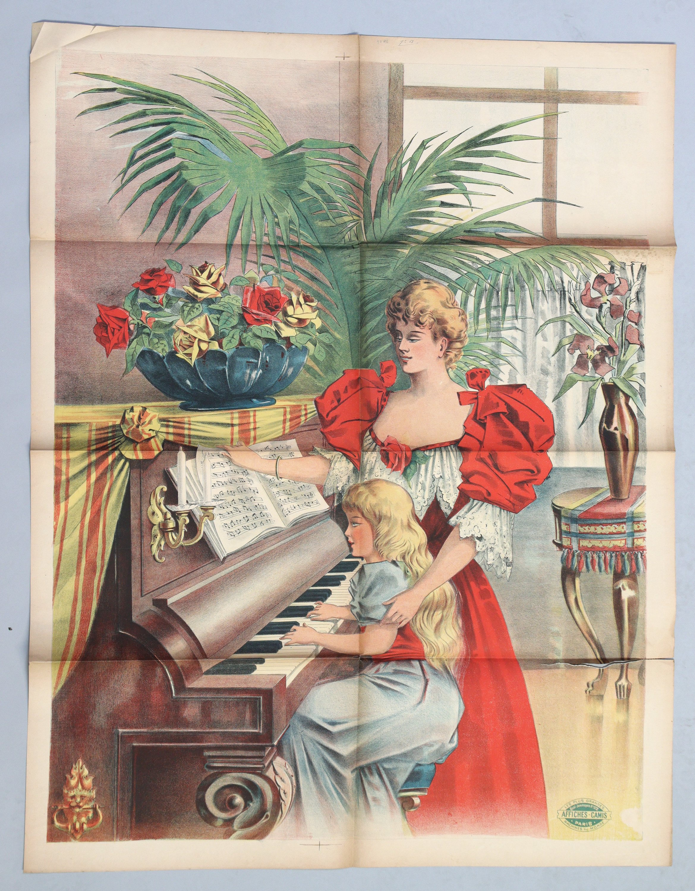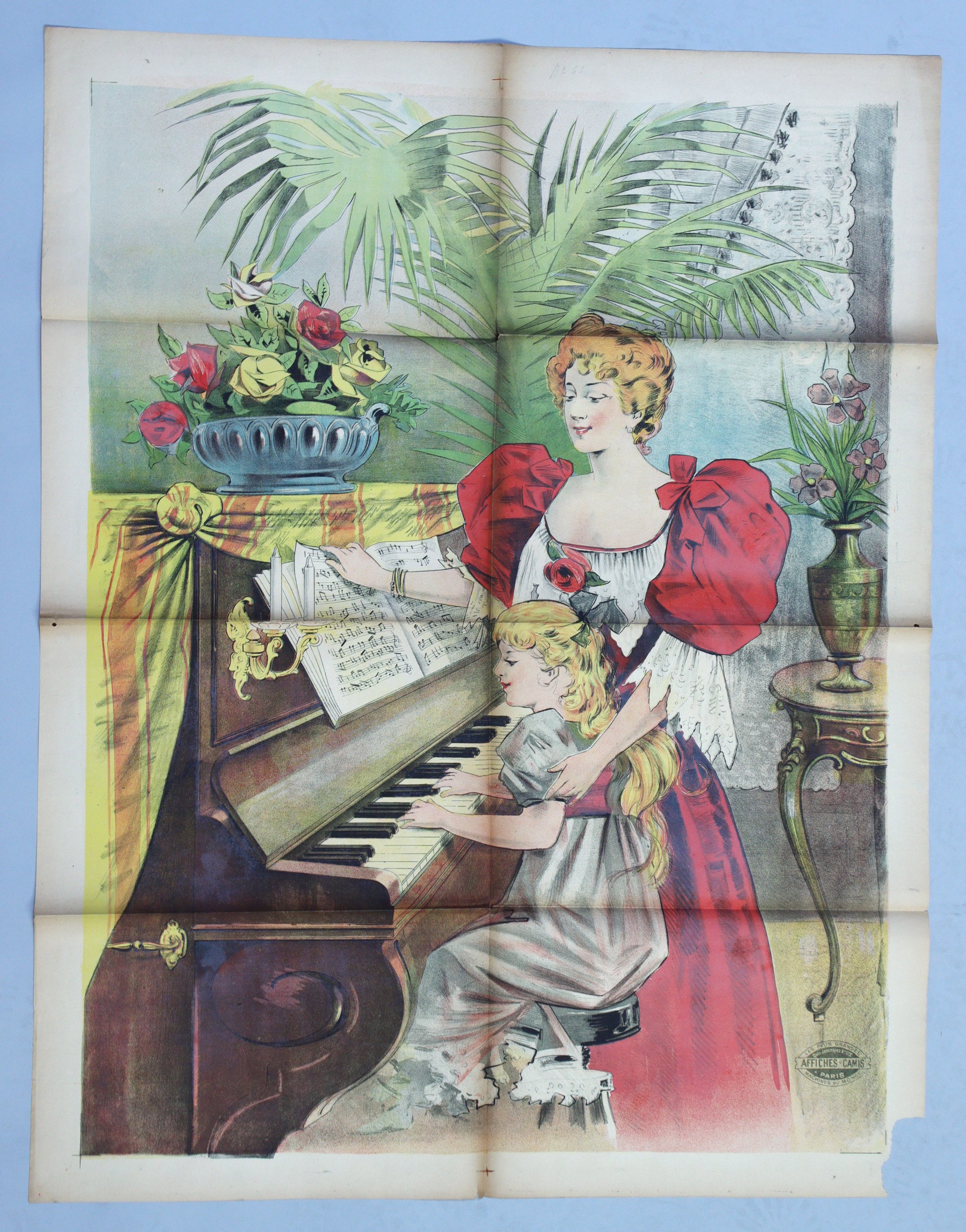 La leçon de piano. 3 exemplaires (plis, déchirures, manques, rousseurs/salissures) ;