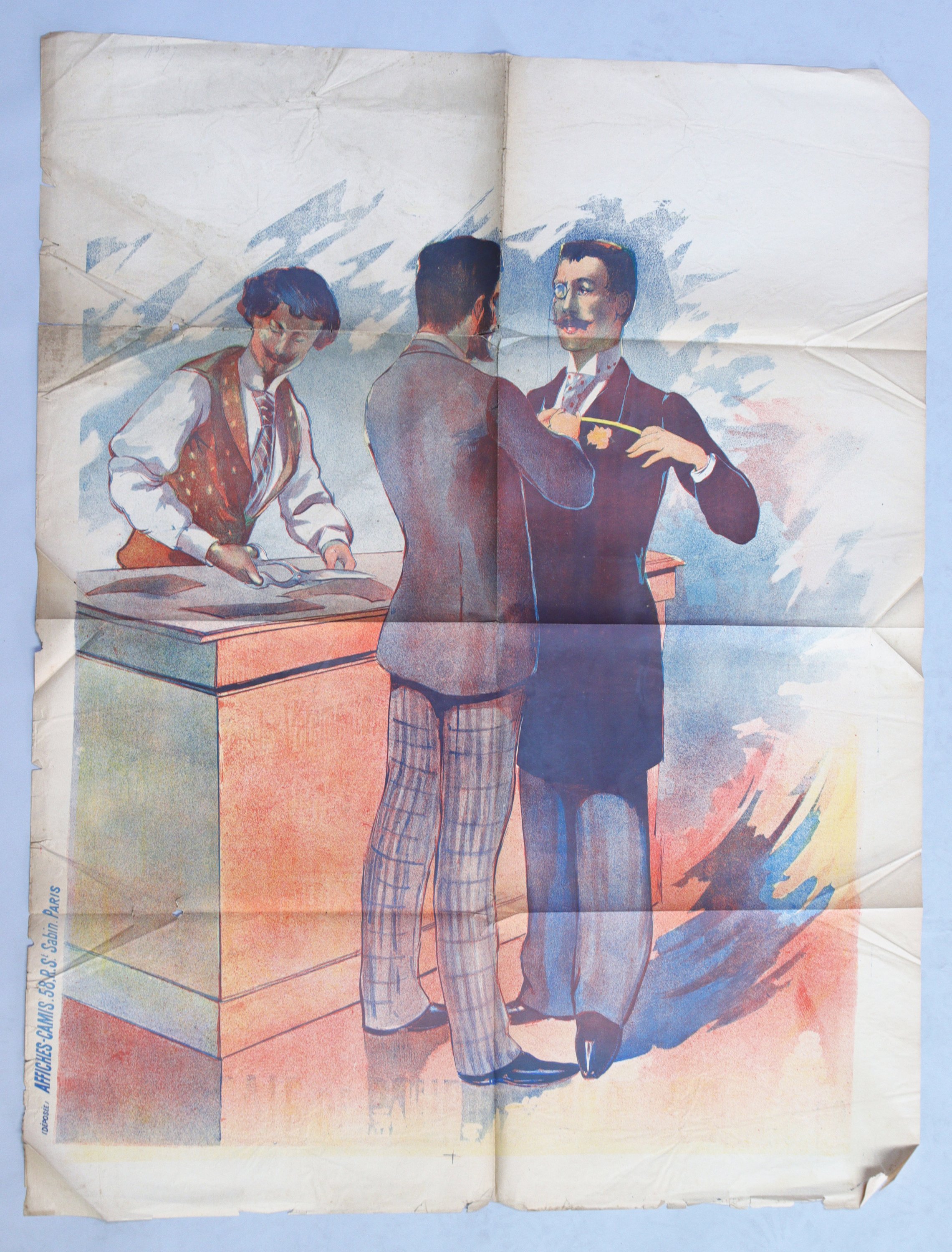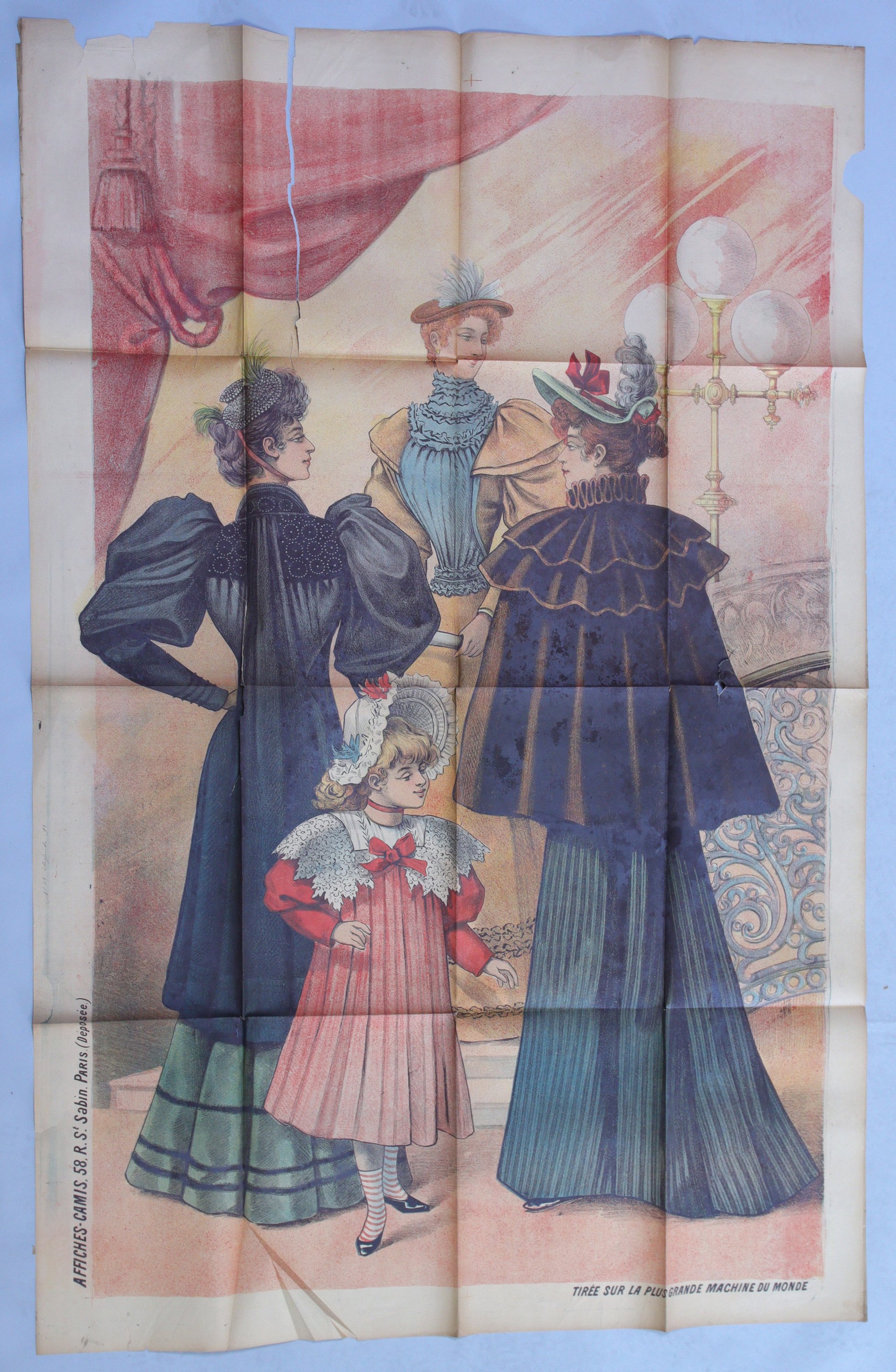 Affiches passe-partout sur le thème de la confection et modes (plis, déchirures, rousseurs/salissures) :