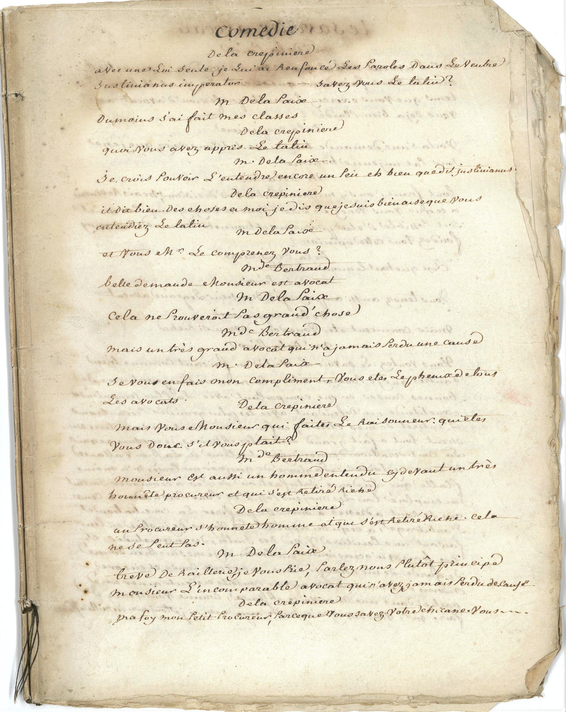 Joint : Manuscrit anonyme incomplet d’une comédie titrée Le Savetier avocat, 29 pp. in-4, 18e siècle ?
