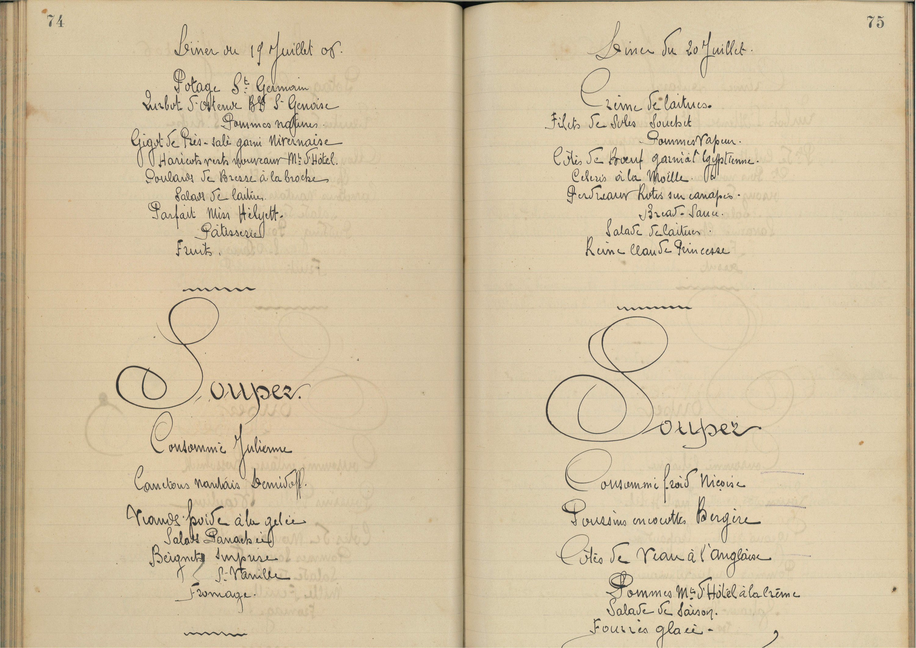 livre des menus manuscrit, du 18 mai 1906 au 9 mai 1907, 192 pages grand in-4 ;