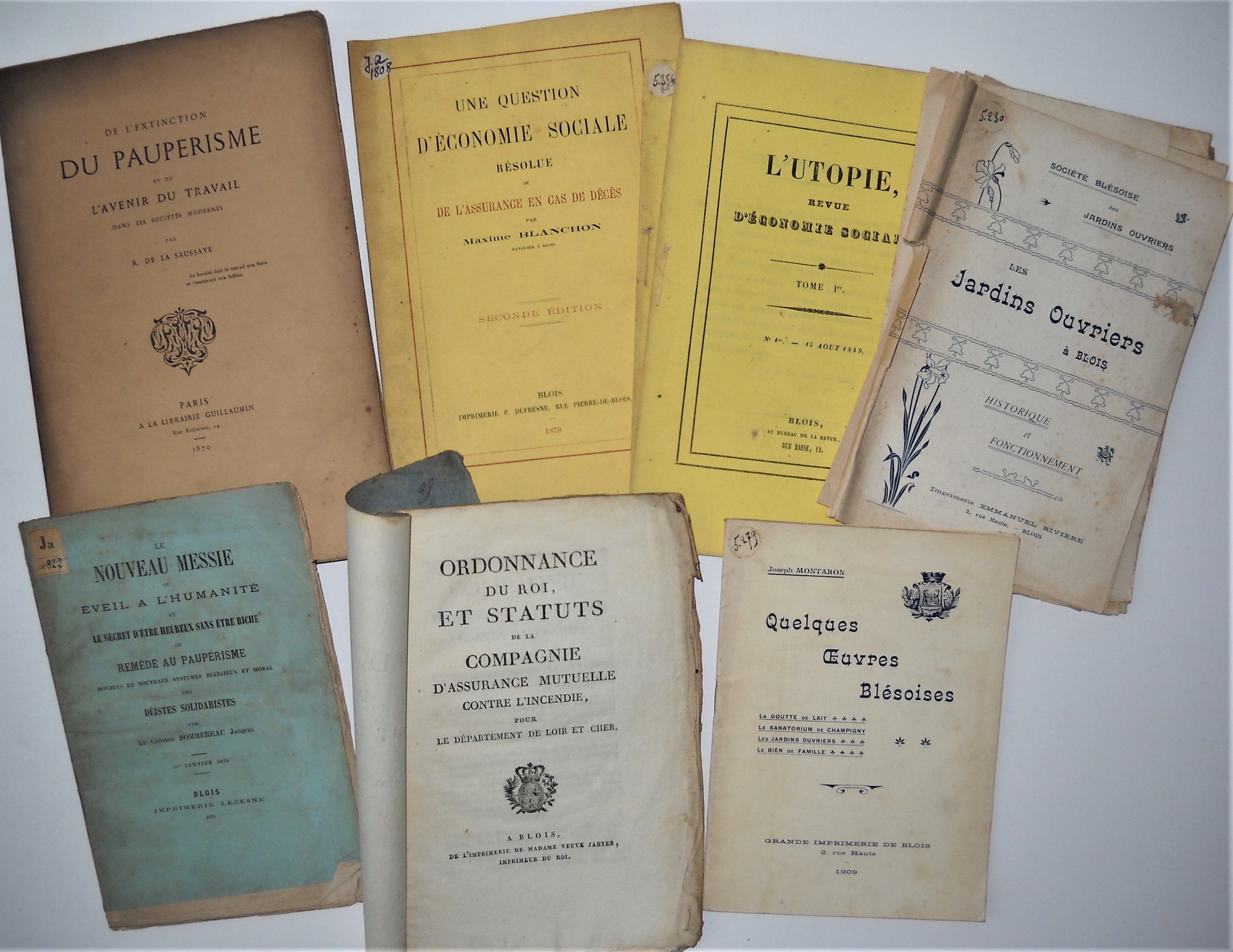Jacques Sommereau : Le nouveau messie ou éveil à lhumanité et le secret dêtre heureux sans être riche ou remède au paupérisme, Blois, Lecesne, 1870, 51 pp. (double exemplaire) ; Le Bien-être universel ou moyen facile et simple de détruire complètement et généralement la misère, Blois, Lecesne, 1872, 22 pp. + 2 tracts ;