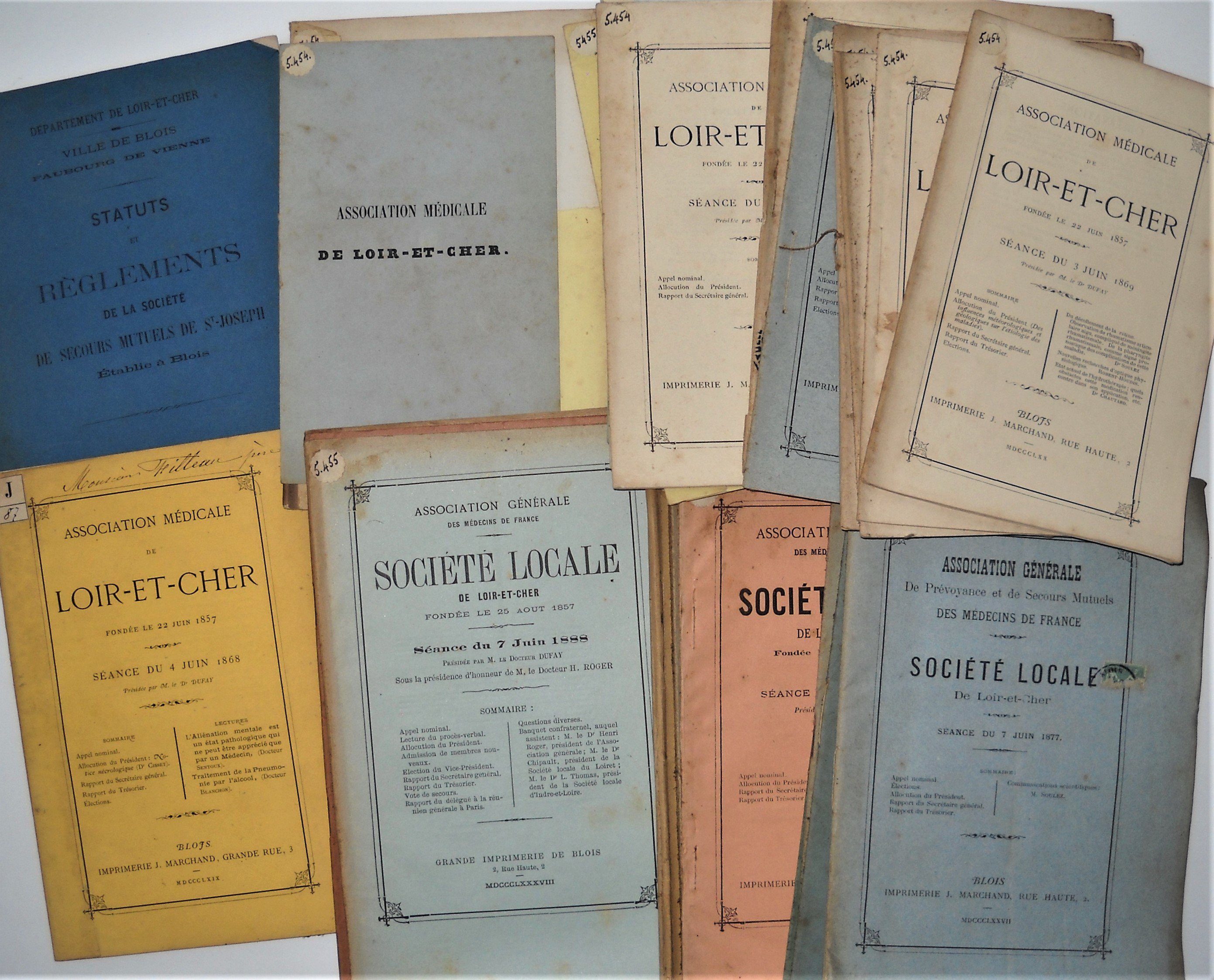 Association médicale de Loir-et-Cher, 1864-1875, 12 plaquettes in-8, statuts et séances des assemblées générales ;