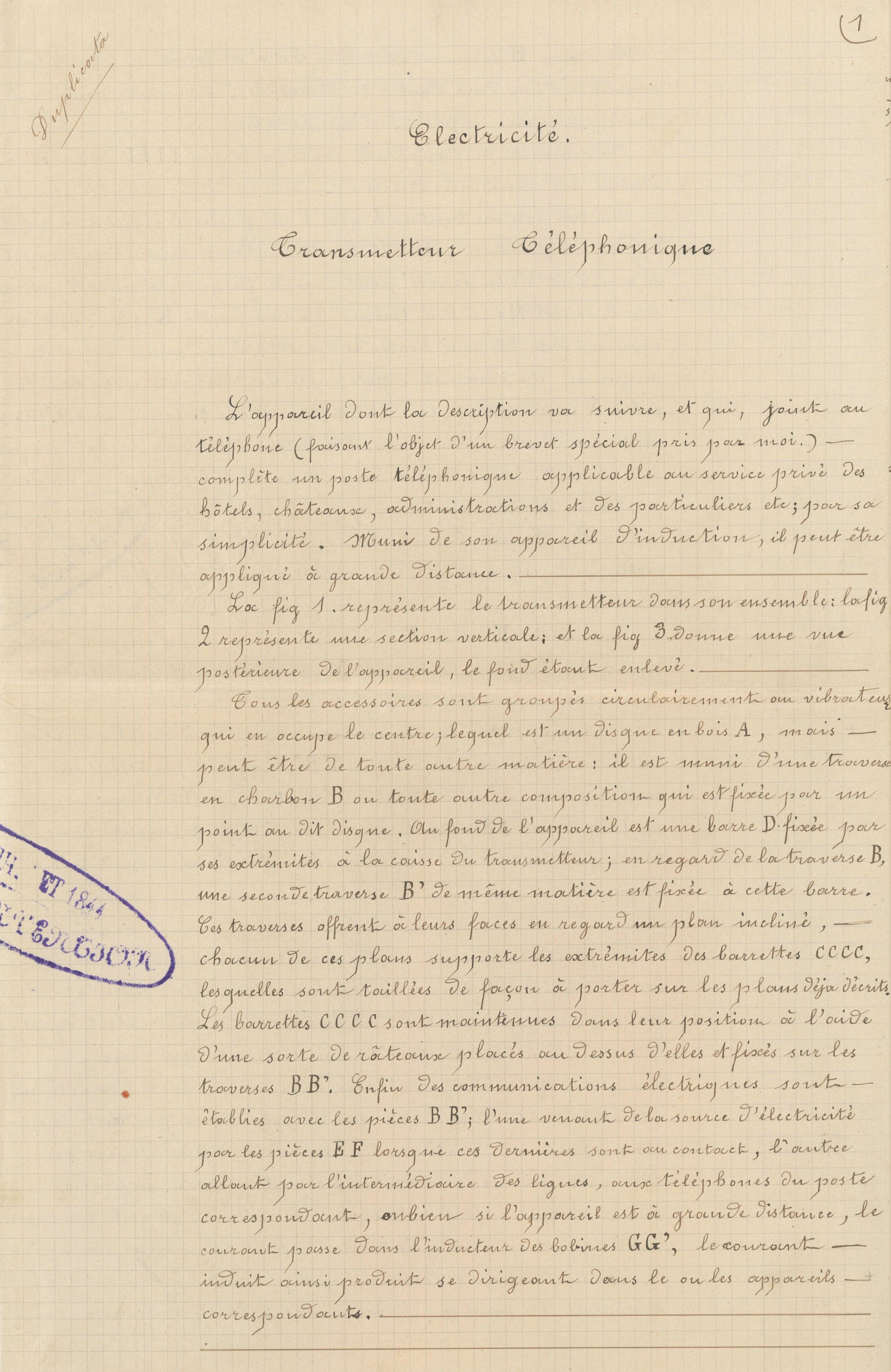 [Inventions - Téléphone - Indre-et-Loire] INVENTION D’UN TRANSMETTEUR TÉLÉPHONIQUE PAR...
