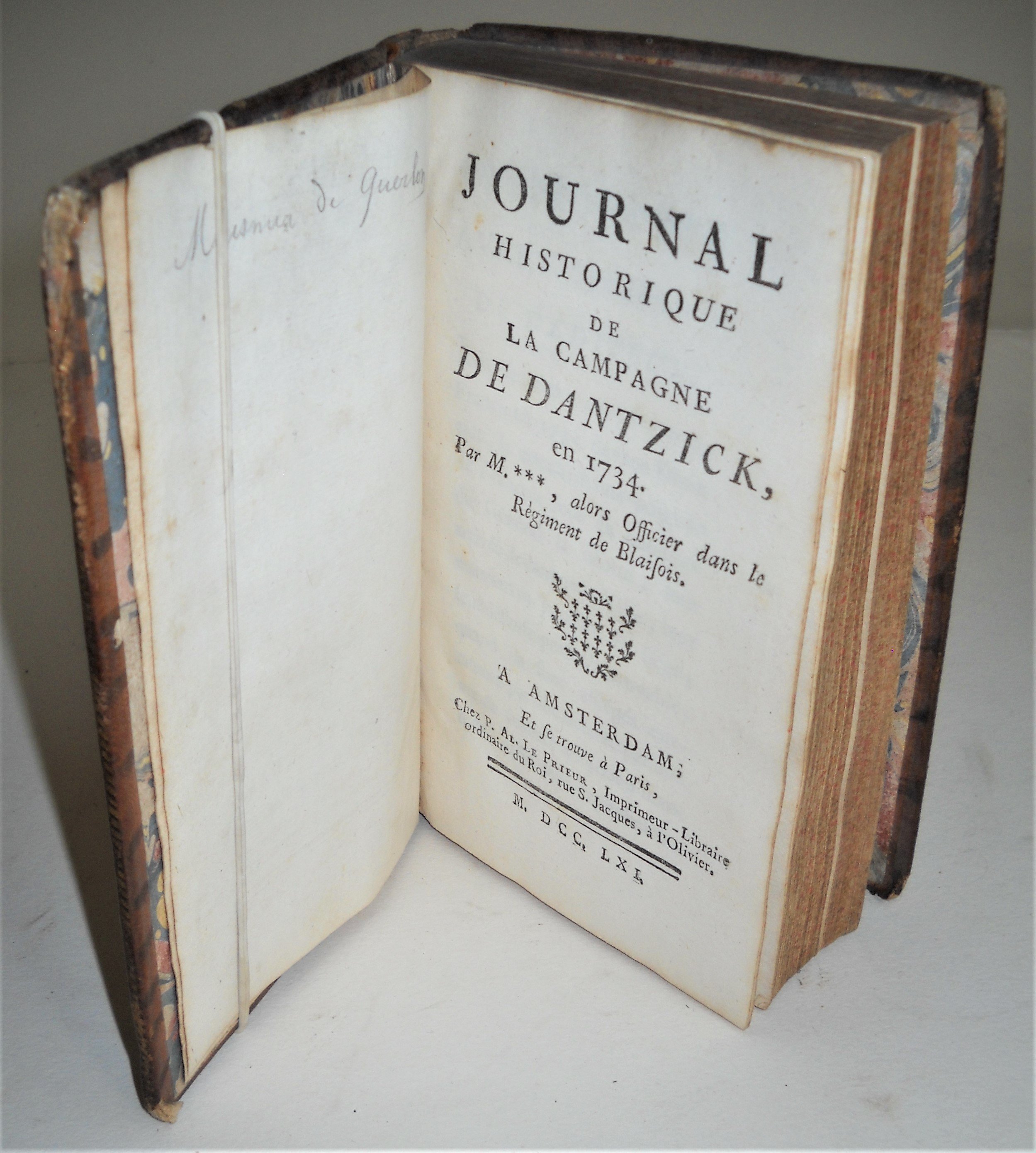 Recueil factice comprenant : Meusnier de Querlon, Journal historique de la campagne de Dantzick, en 1734, par un officier dans le régiment de Blaisois, Le Prieur, Amsterdam et Paris, 1761, rel. plein veau dépoque in-8, 283 pp. ; suivi de Lettre du roi de Pologne, Stanislas I, La Haye, 1758, xx-109 pp. ;